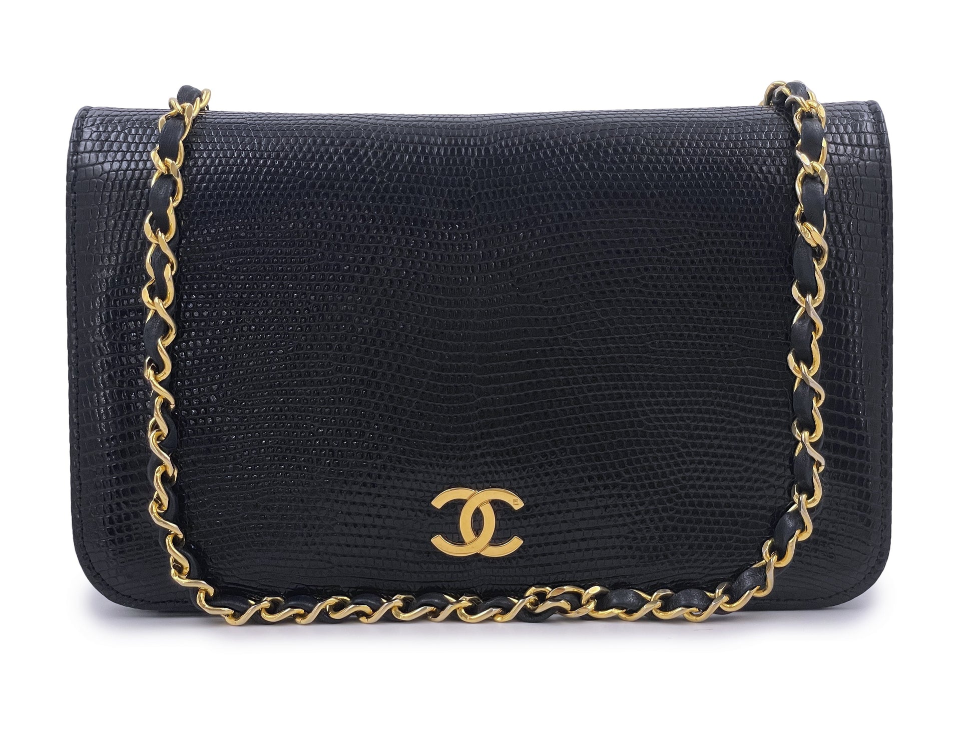 Pristine Chanel 1989 Vintage Black Lizard Full Flap Bag 24k GHW