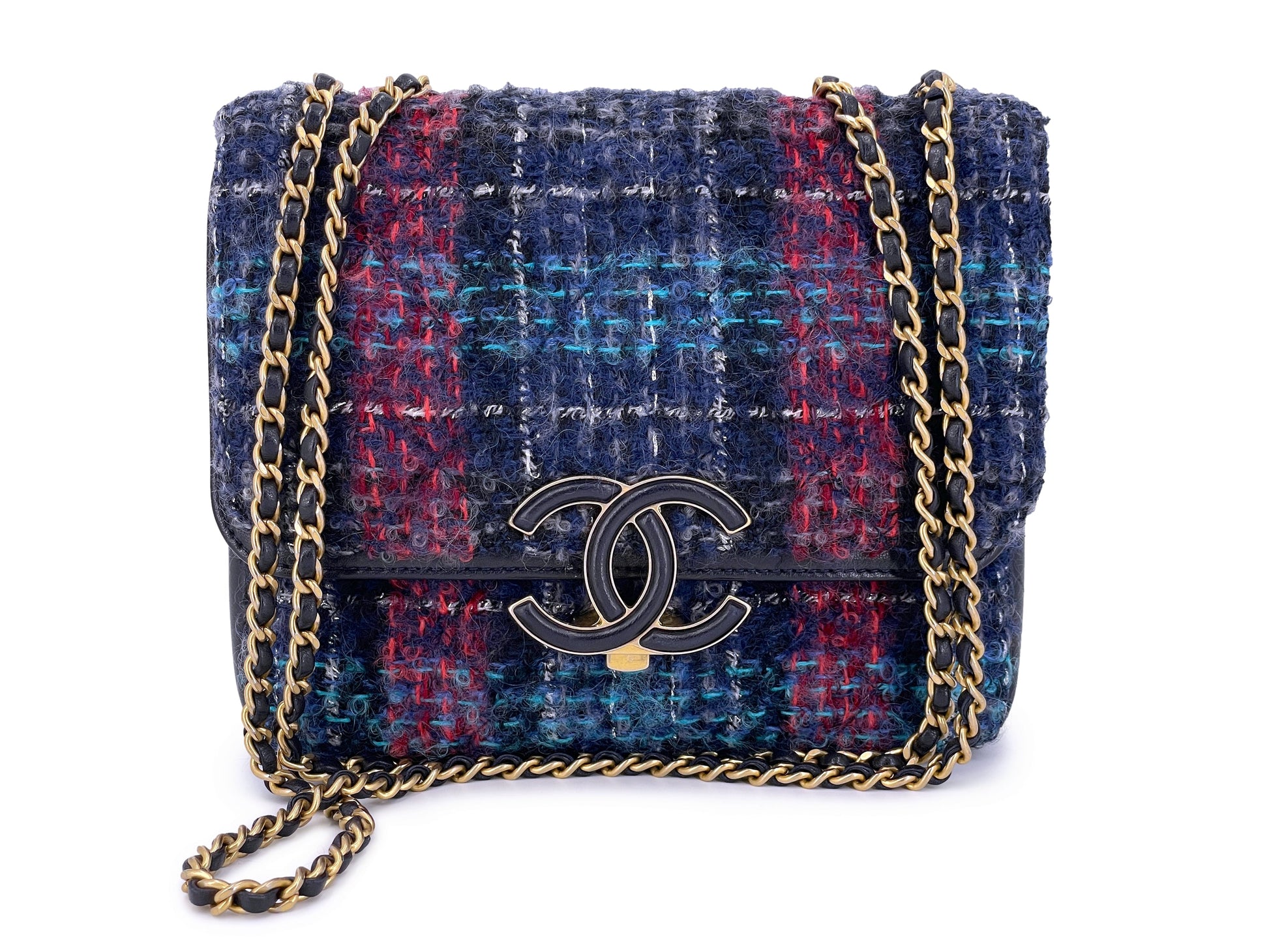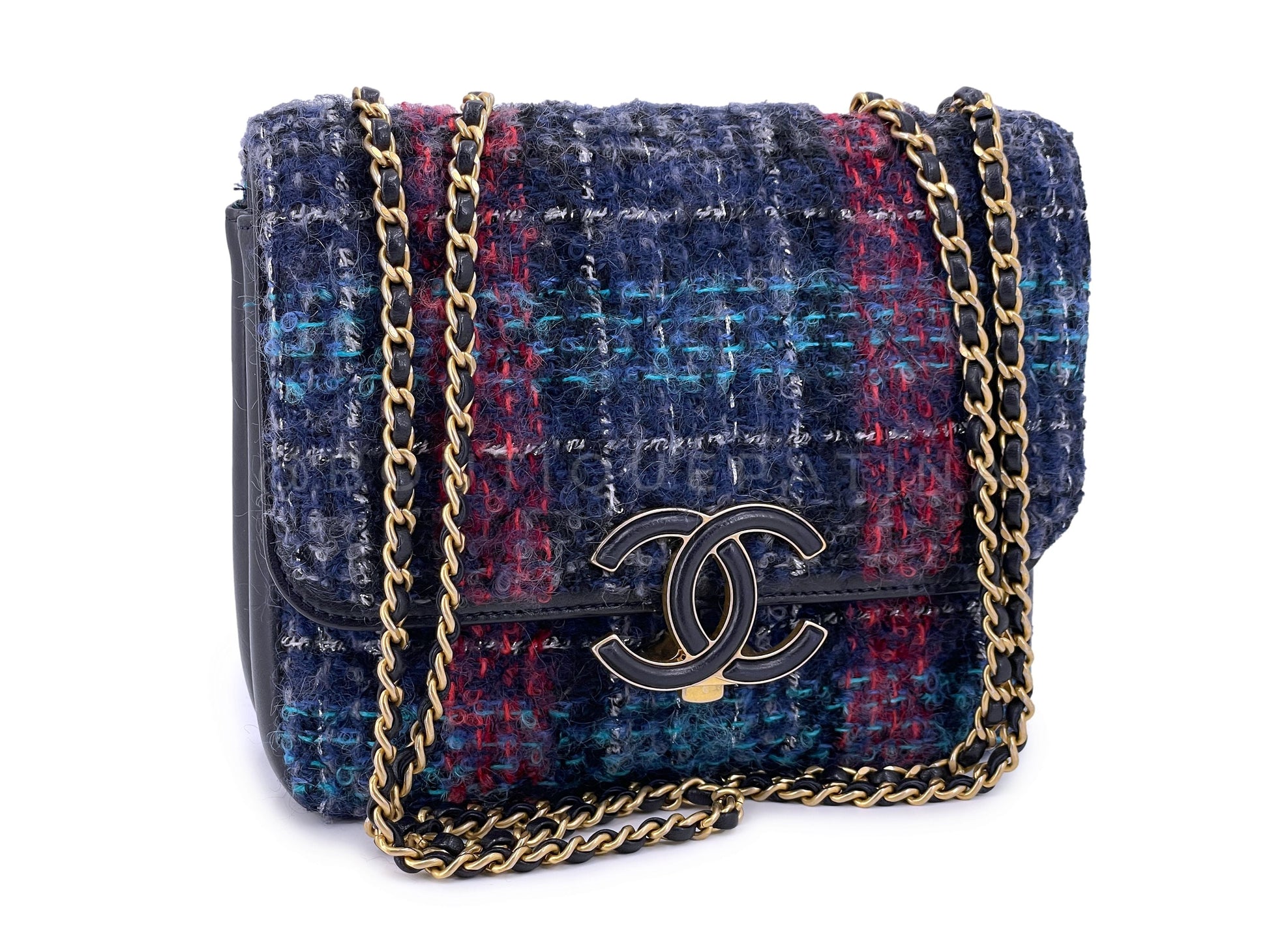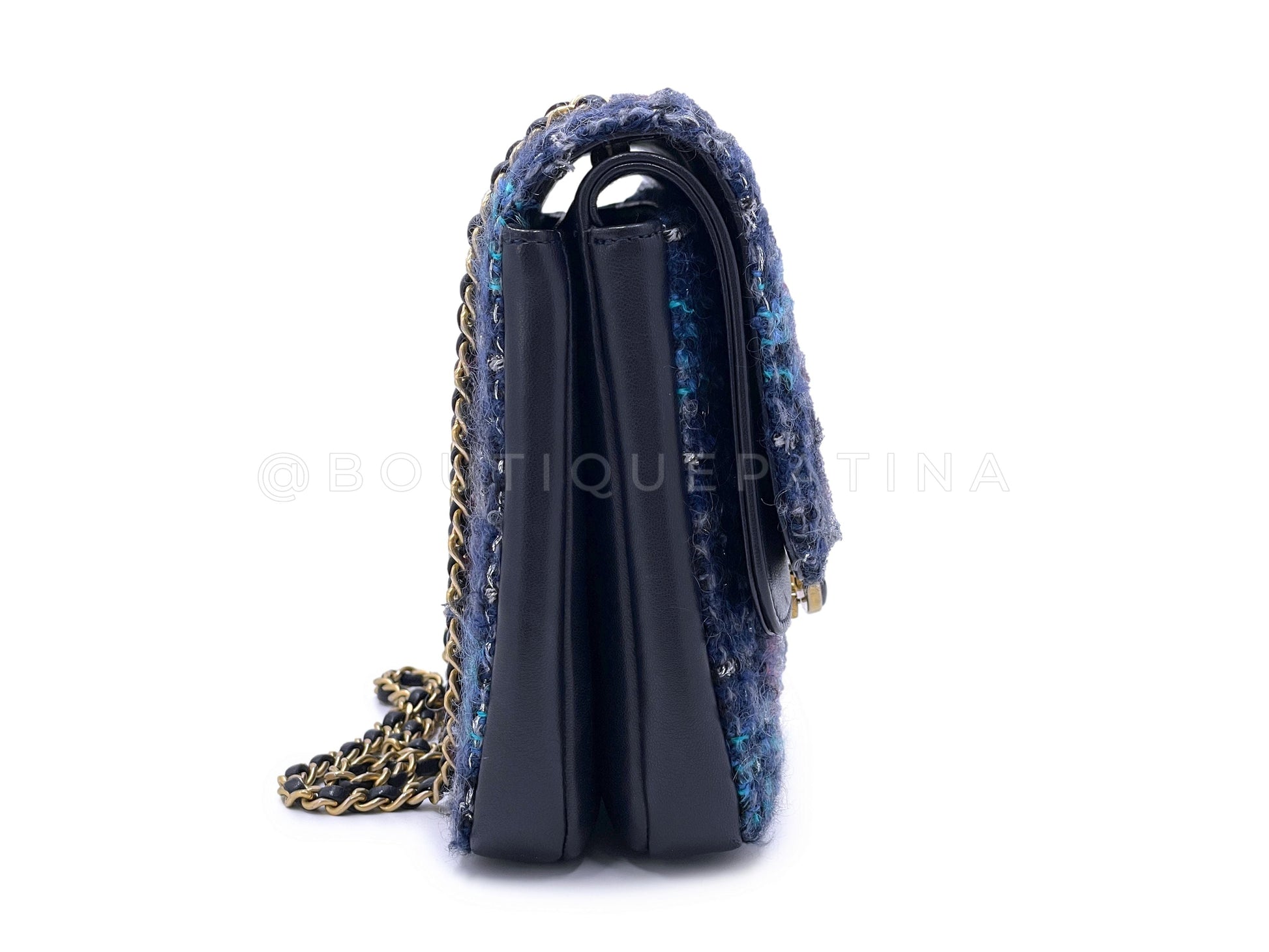Chanel Purple Tweed Tall Mini Crossbody Two Flap Bag GHW