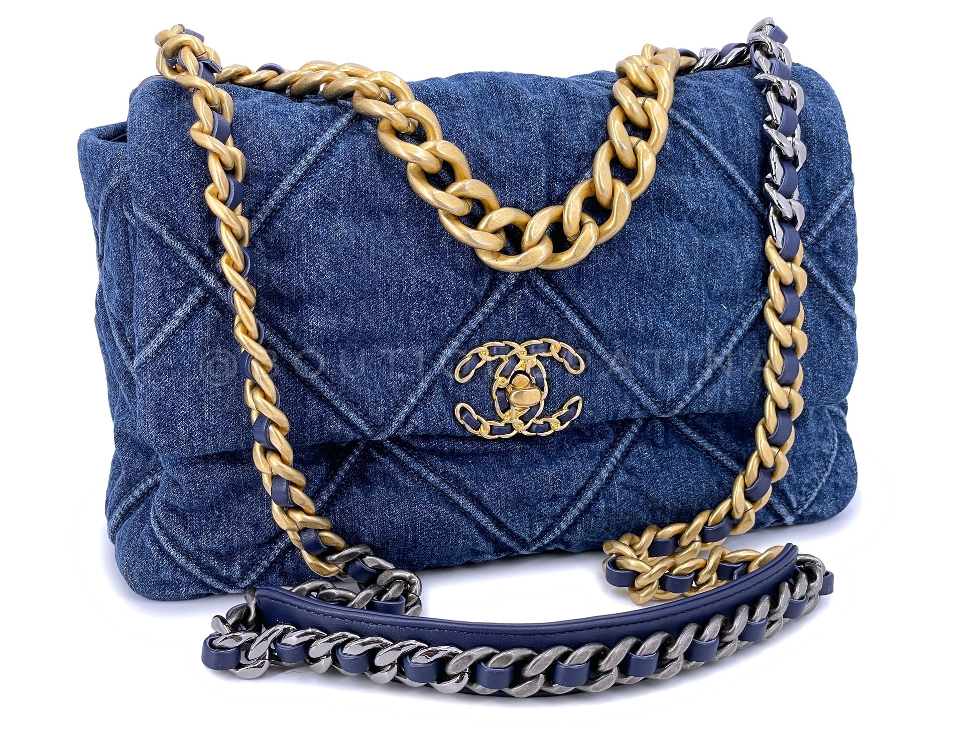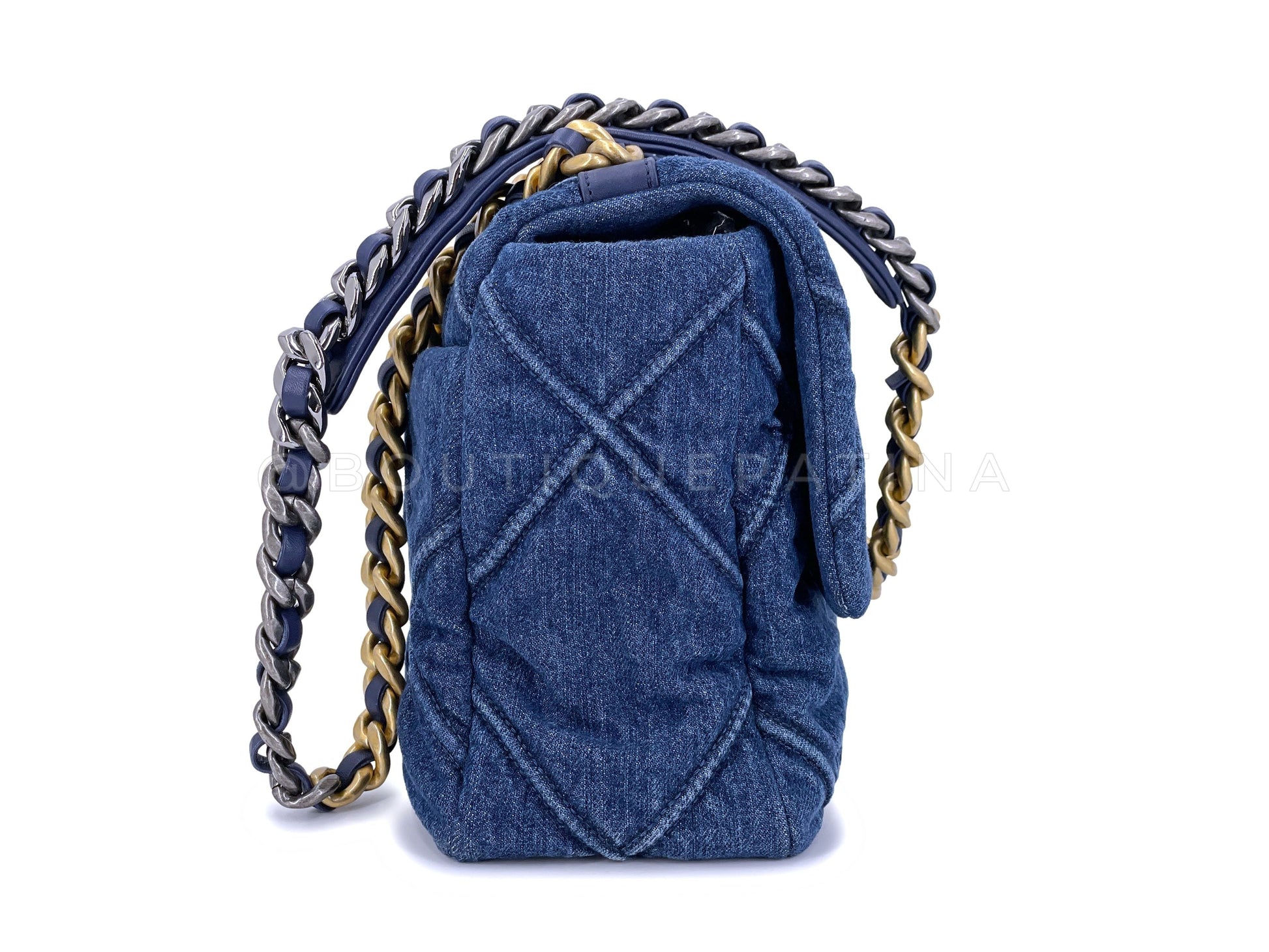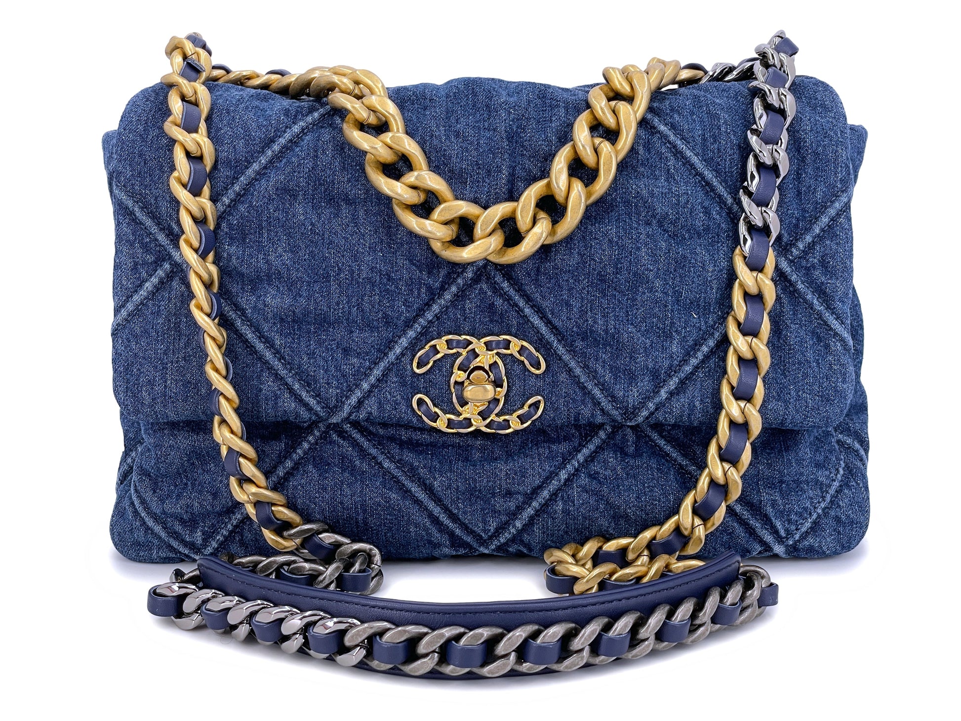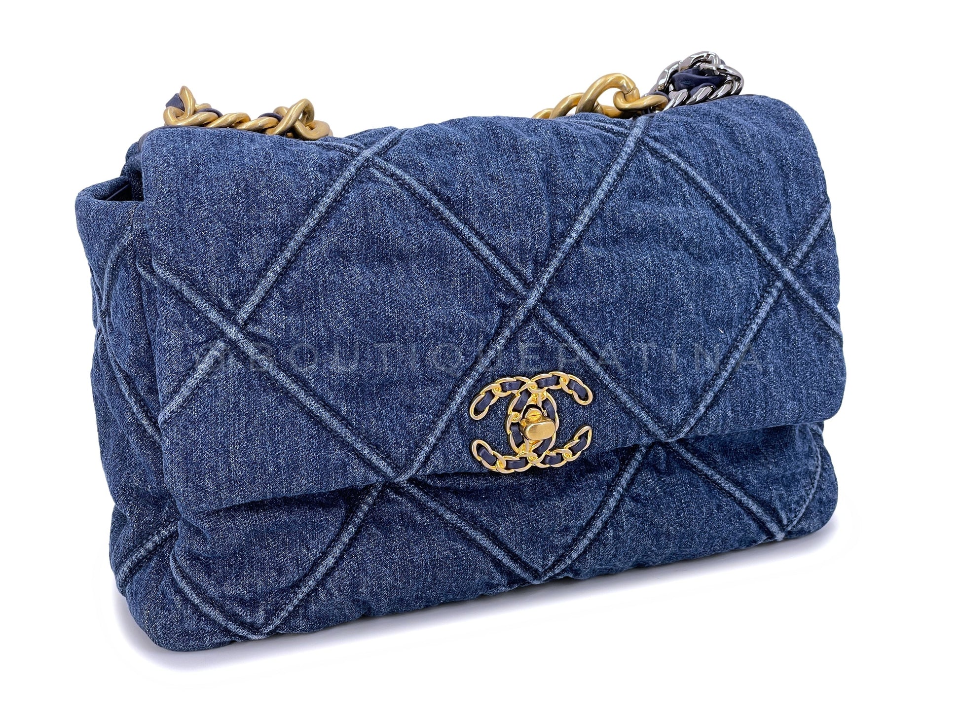Chanel 19 Washed Blue Denim Large Flap Bag GHW