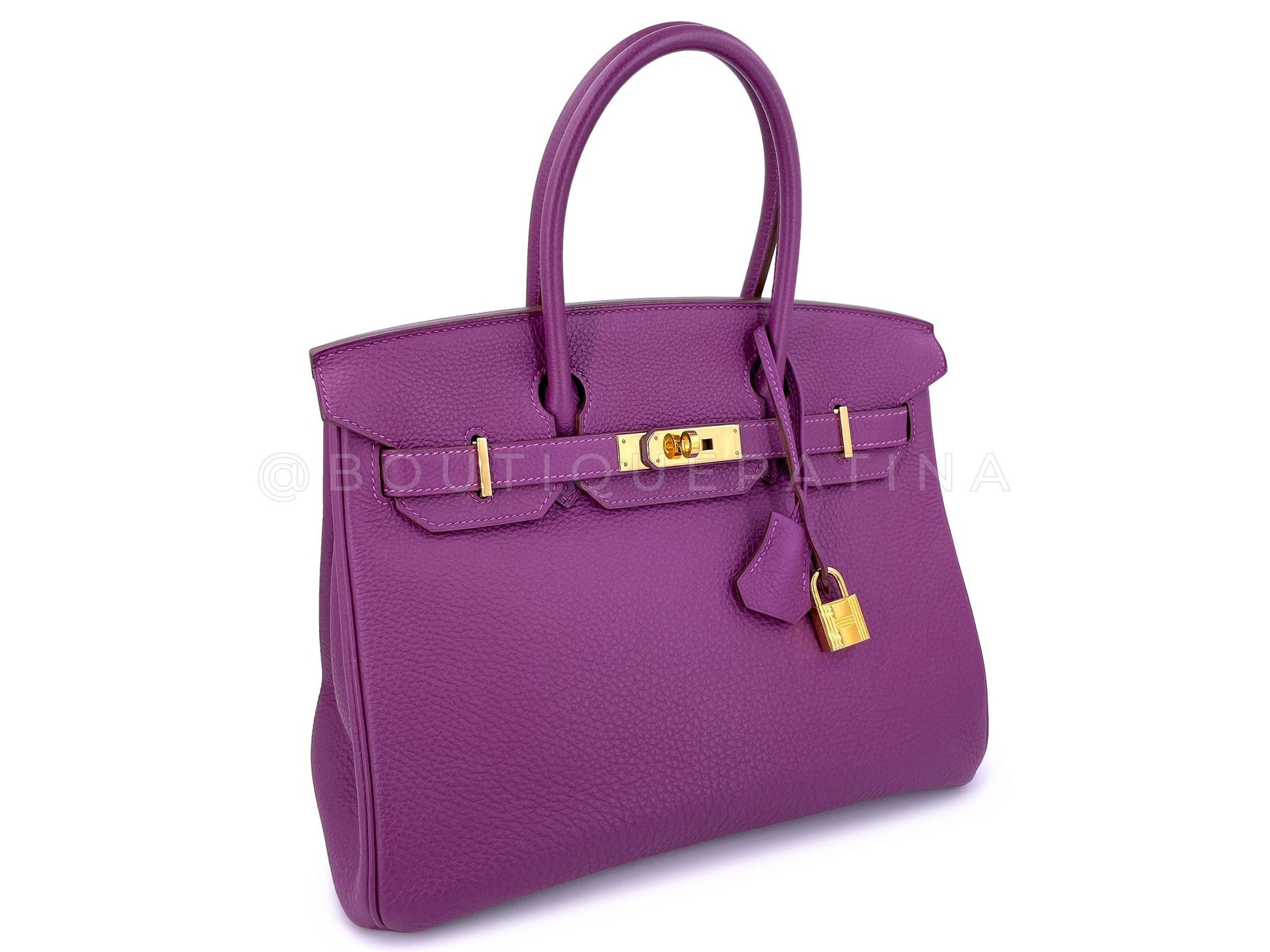 Hermes 30cm Anemone Purple Togo Birkin Tote Bag 24k GHW