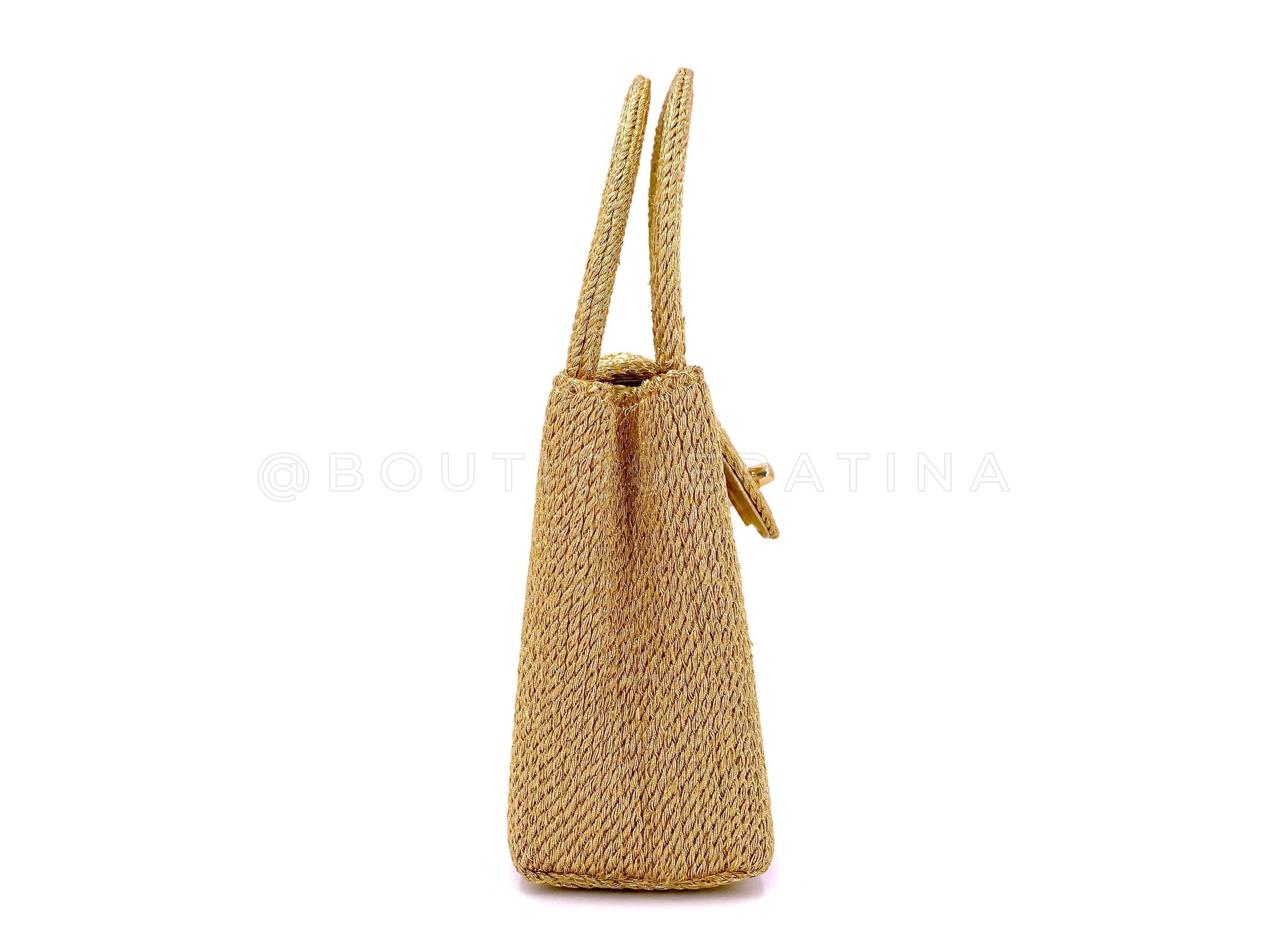 Chanel 1997 Vintage Gold Spun Raffia Micro Mini Kelly Evening Bag 24k GHW XRU