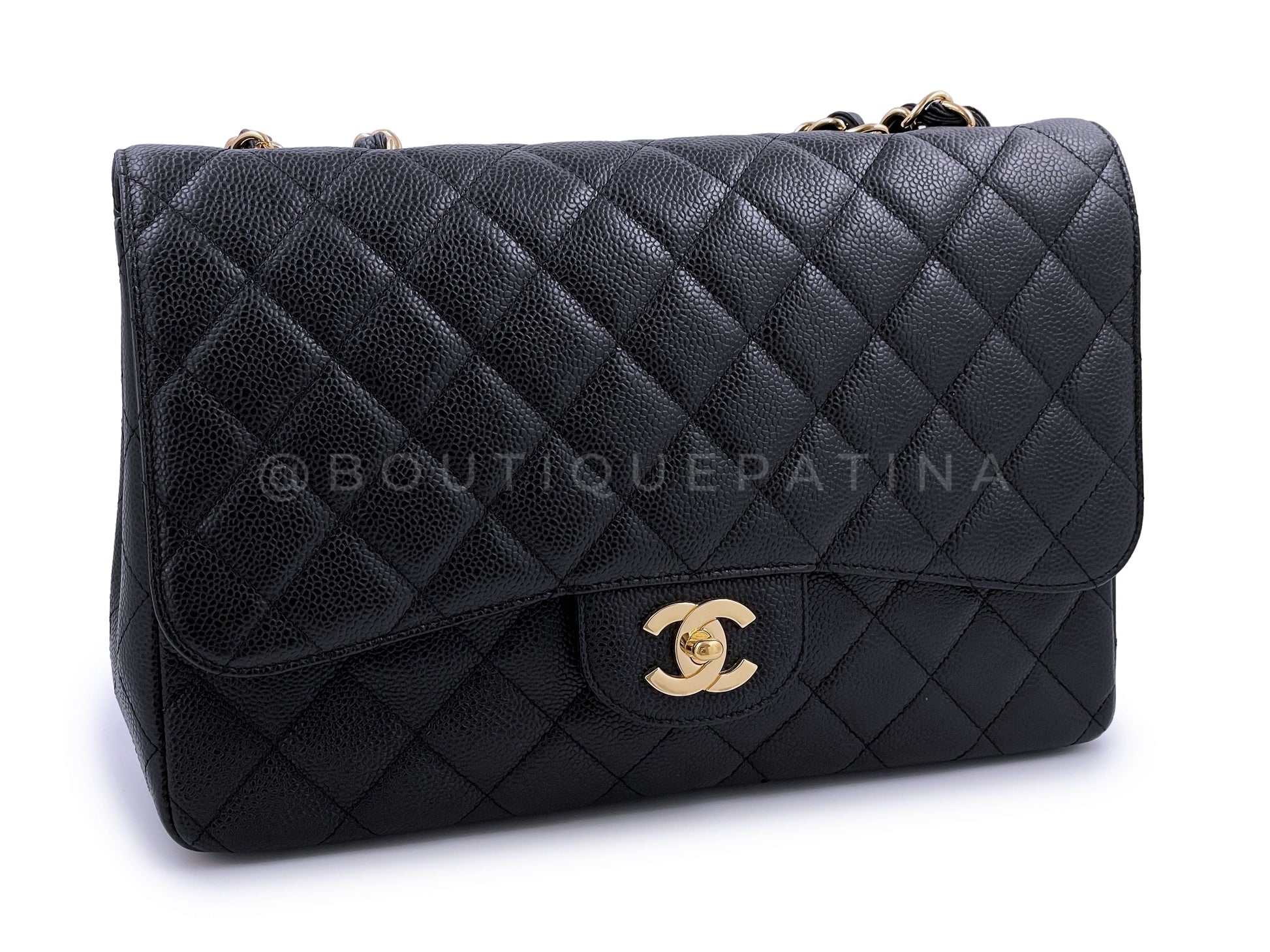 Chanel 2009 Black Caviar Jumbo Classic Single Flap Bag GHW