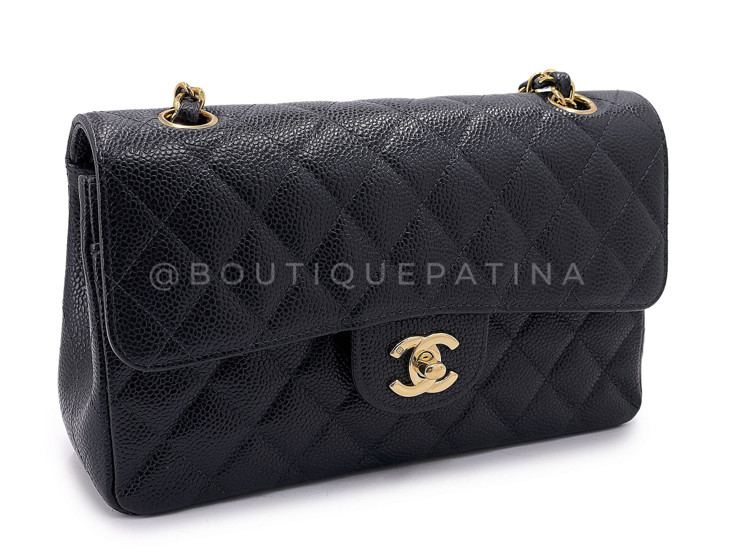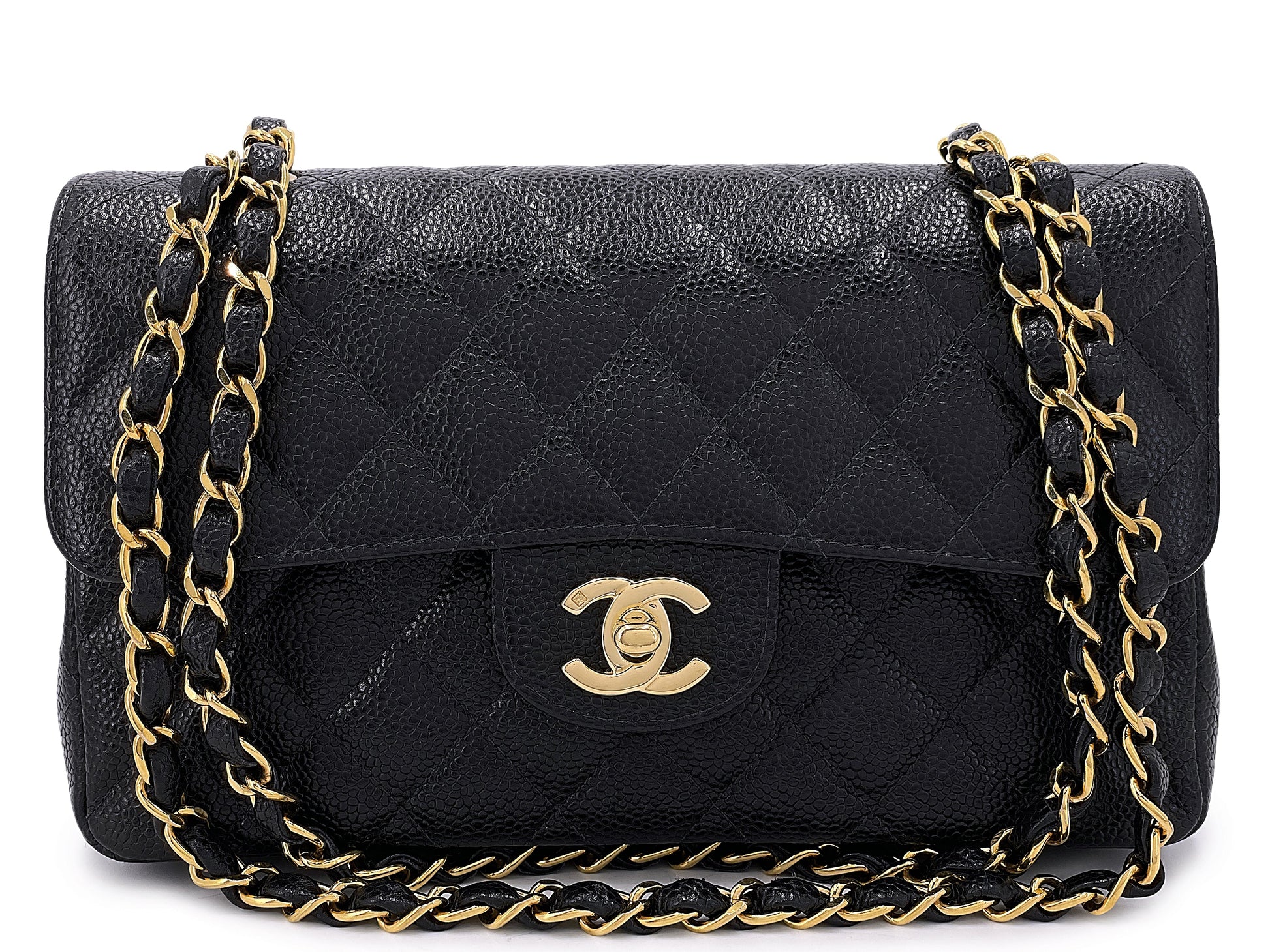 Chanel Vintage Small Caviar Classic Flap Bag 2004 Black Double 24k GHW 9TI