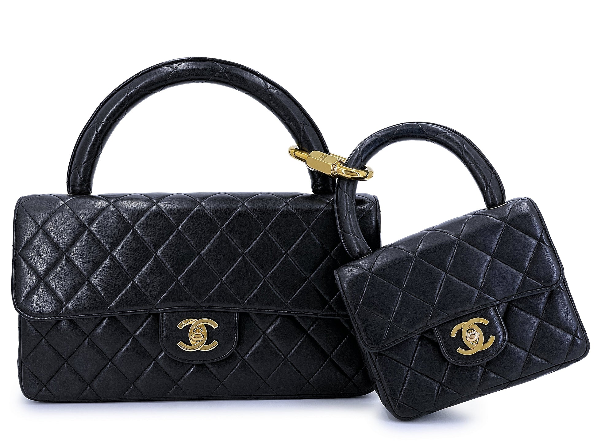 Chanel Vintage Kelly Set Parent Child Bag 1994 Black Flap 24k GHW