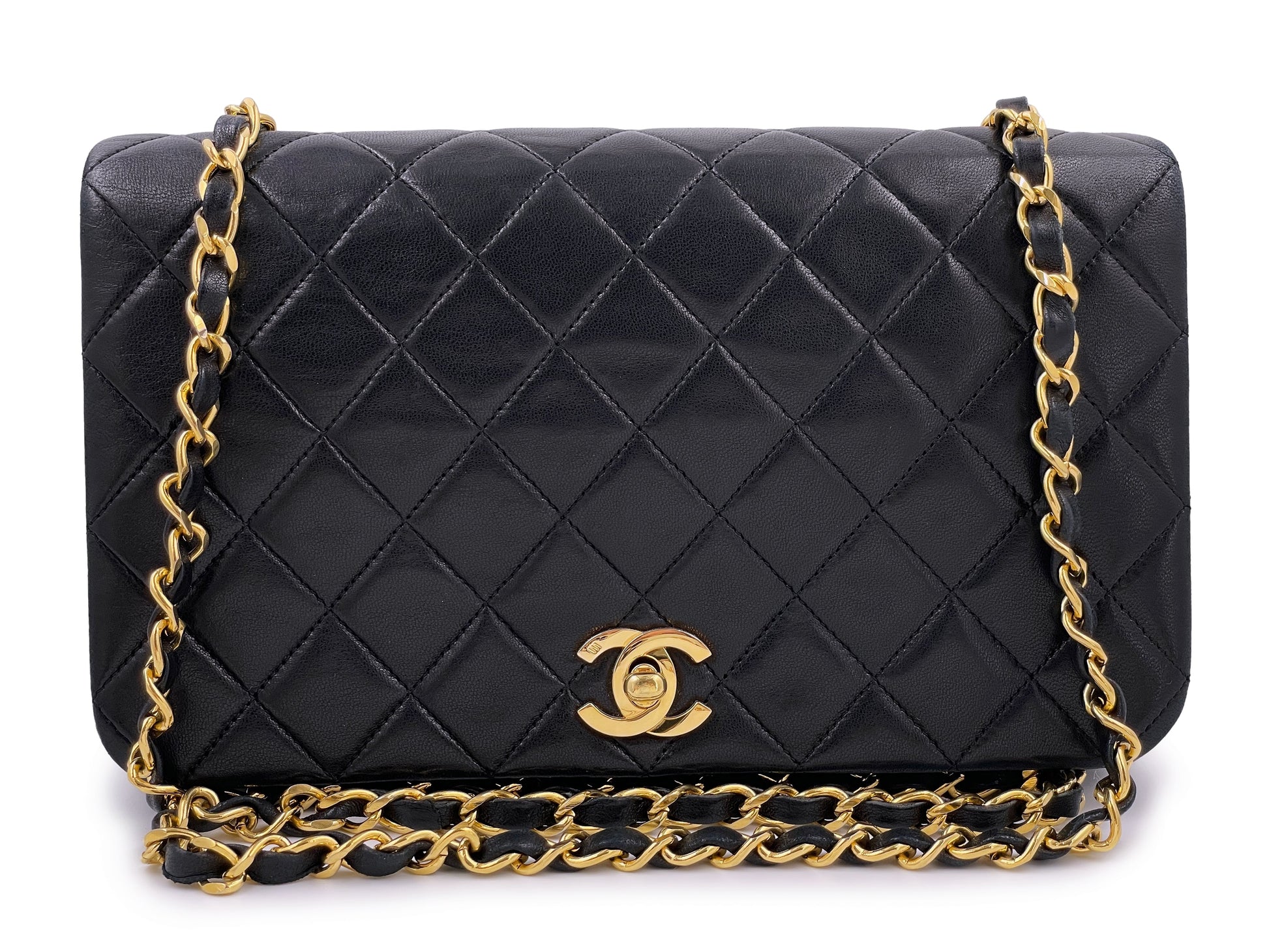 Chanel 1991 Vintage Black Medium Full Flap Bag 24k GHW Lambskin