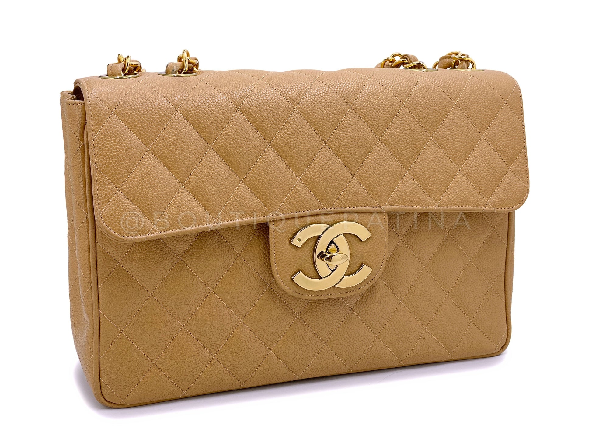 Chanel 1994 Vintage Caramel Beige Caviar Jumbo Flap Bag 24k GHW