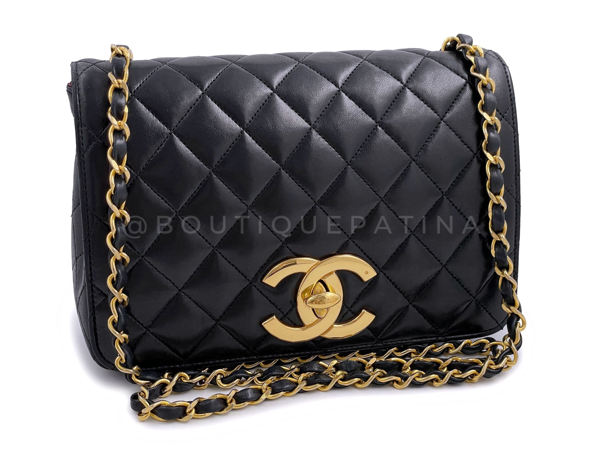 Rare Chanel 1987 Vintage Black Oversized CC Small Full Flap Bag 24k GHW