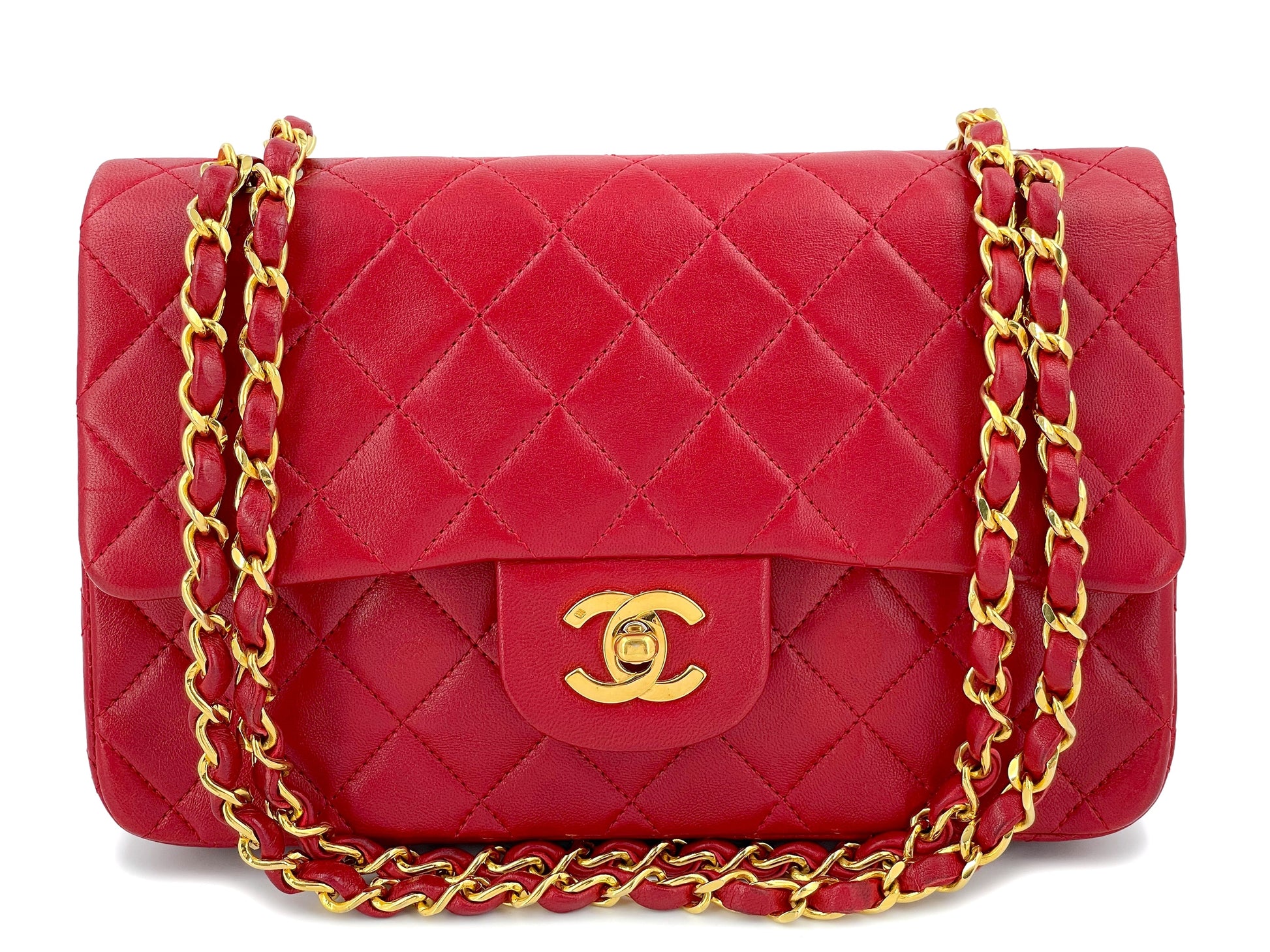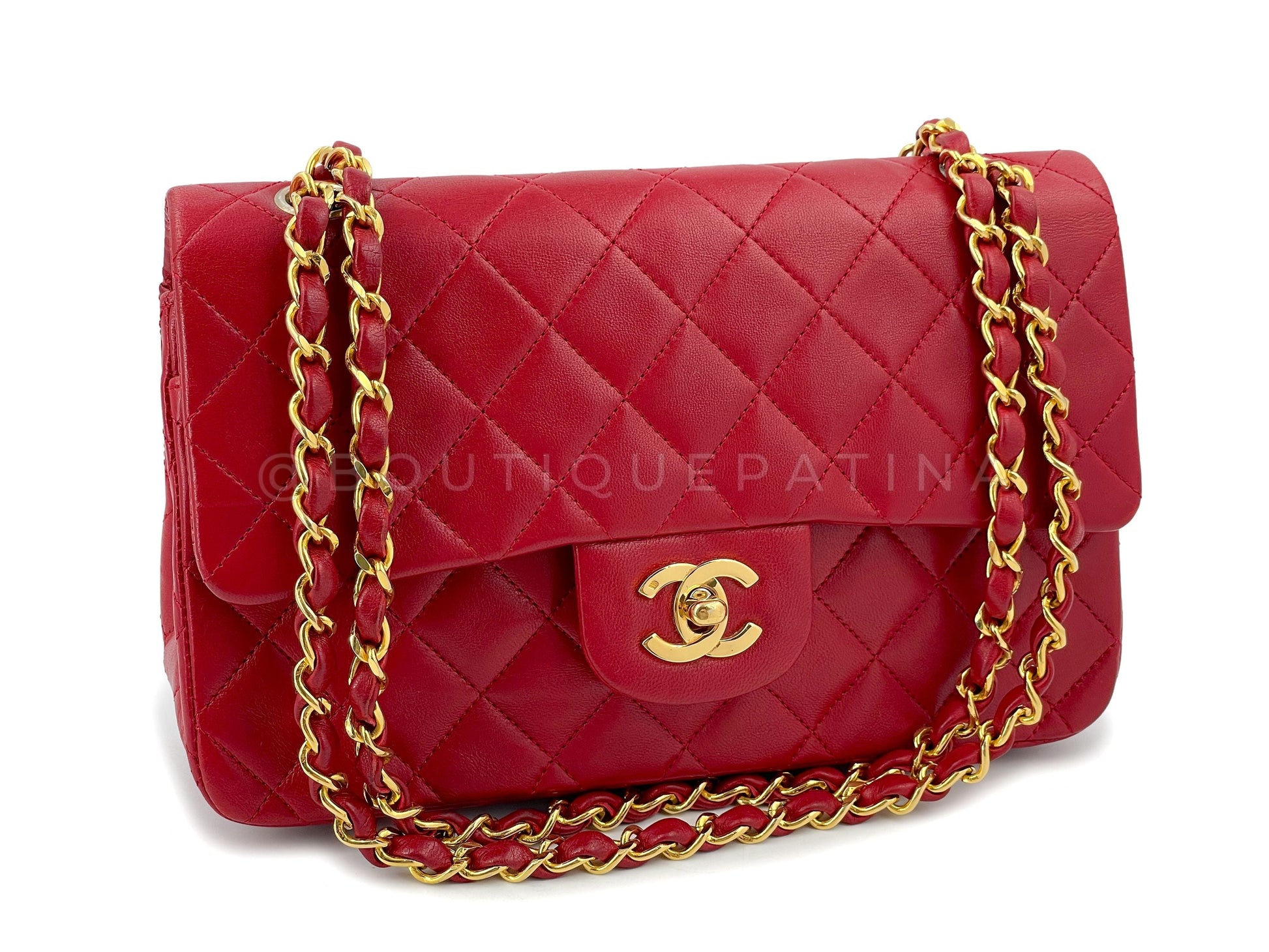 Chanel 1989 Vintage Red Small Classic Double Flap Bag 24k GHW Lambskin