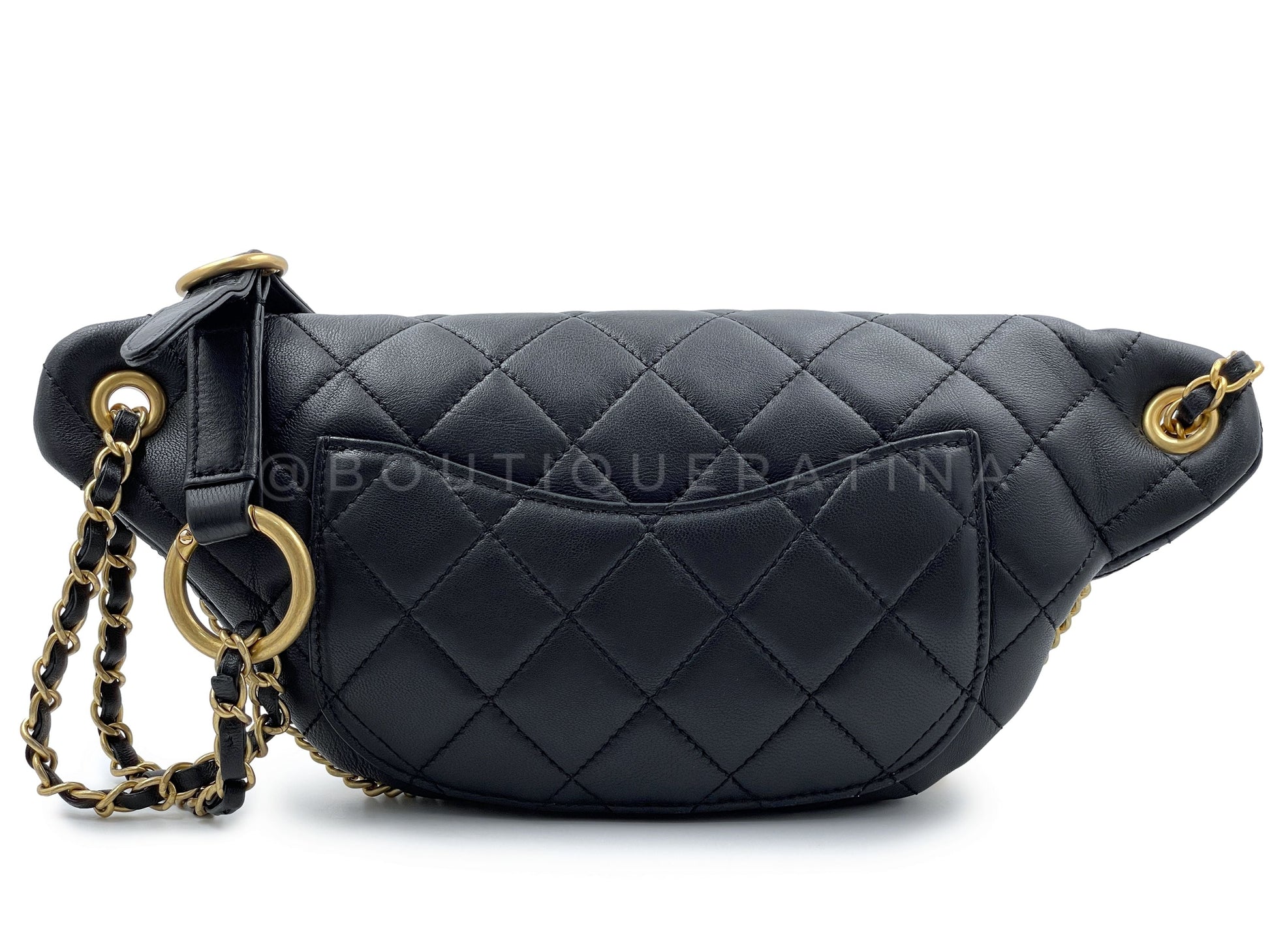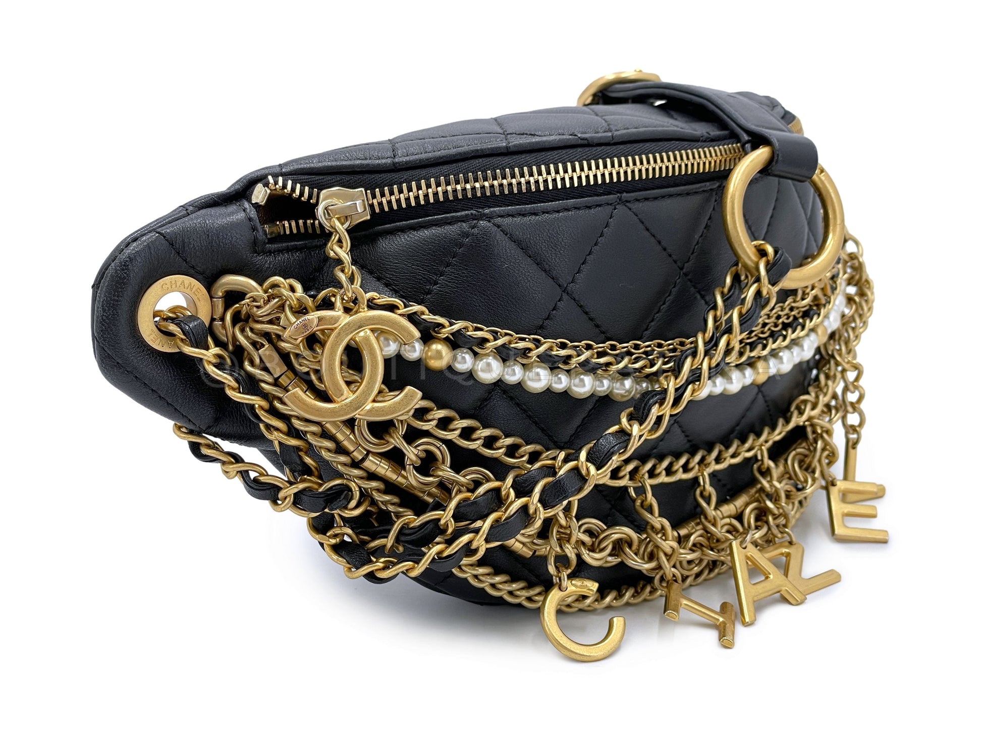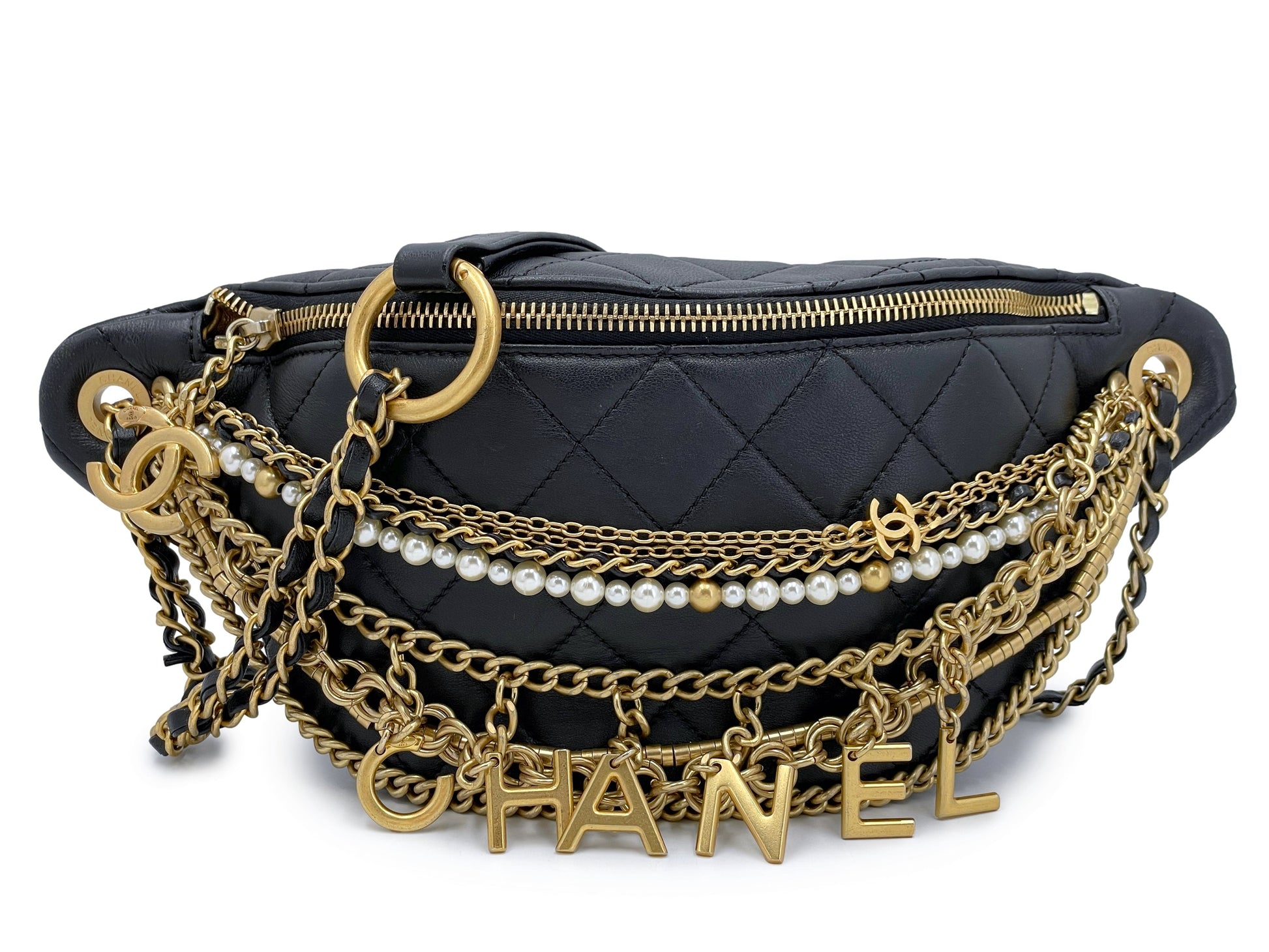 Chanel 19A Black All About Chains Fanny Pack Belt Bag