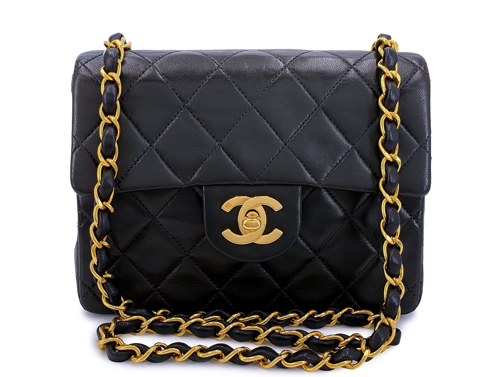 Chanel Vintage Square Mini Flap Bag Black 24k GHW Lambskin Y3G