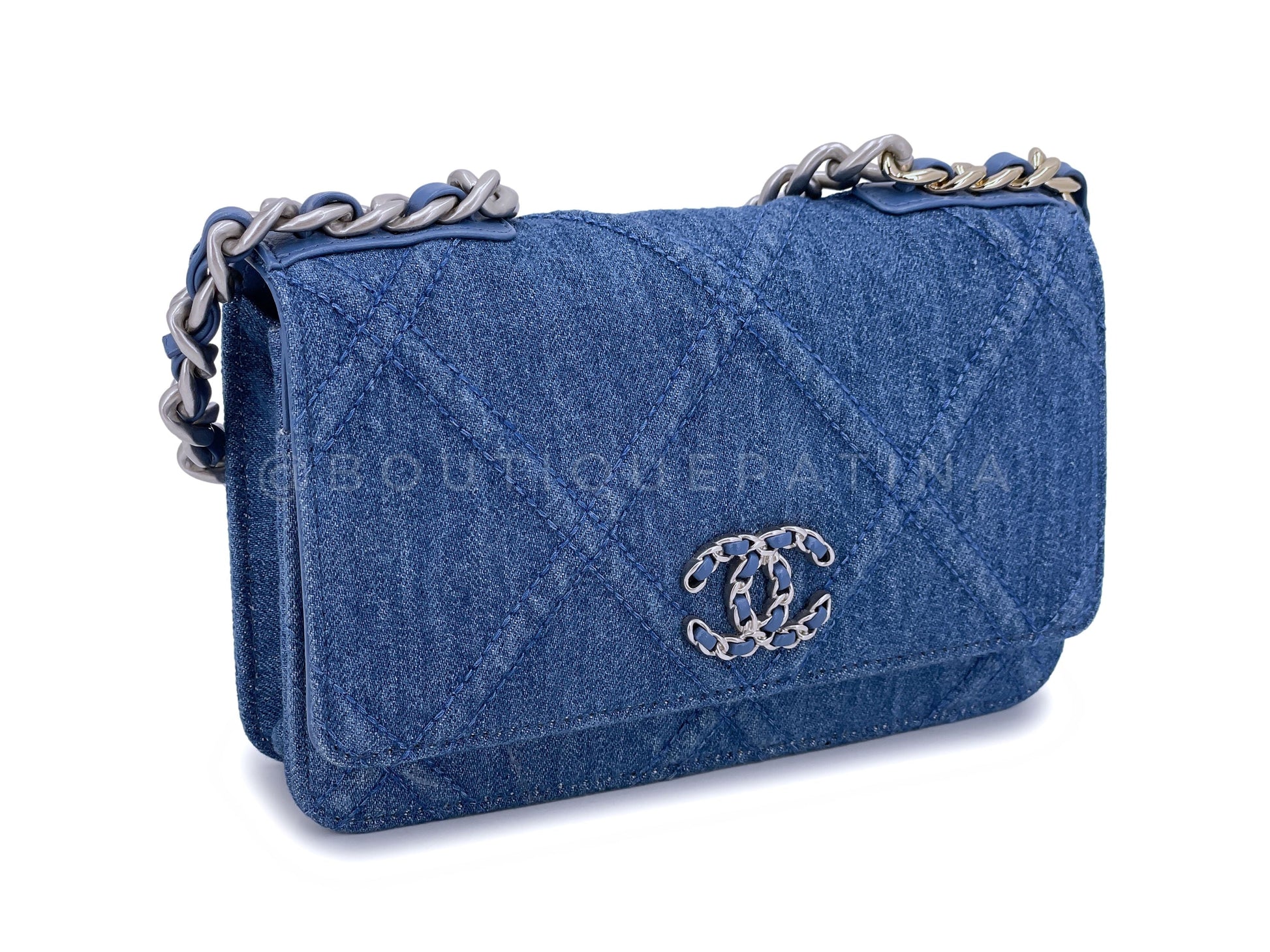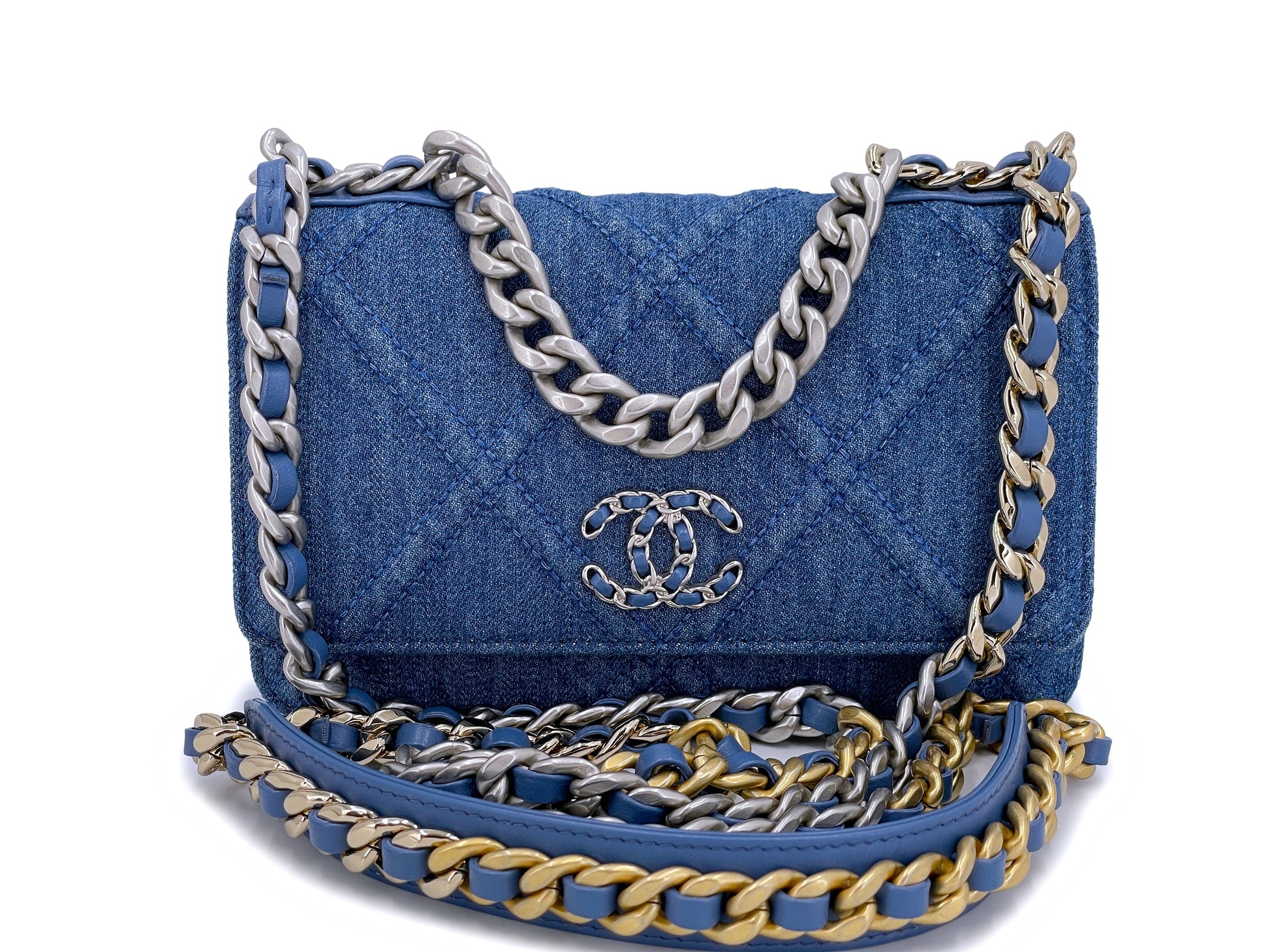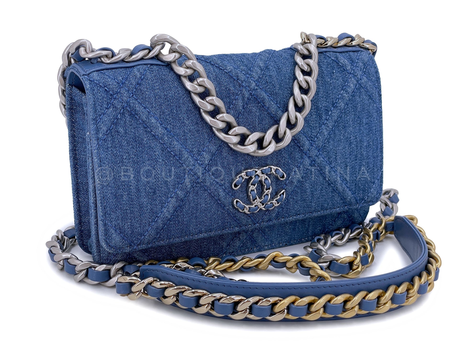 Chanel 19 Denim Wallet on Chain WOC Flap Shoulder Bag