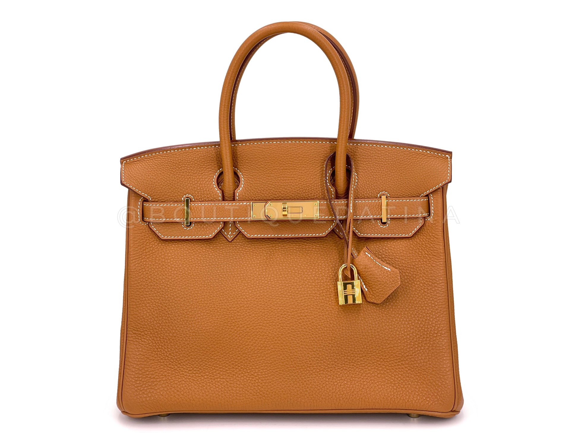 Pristine Hermes 30cm Birkin Caramel Gold Togo GHW Tote Bag