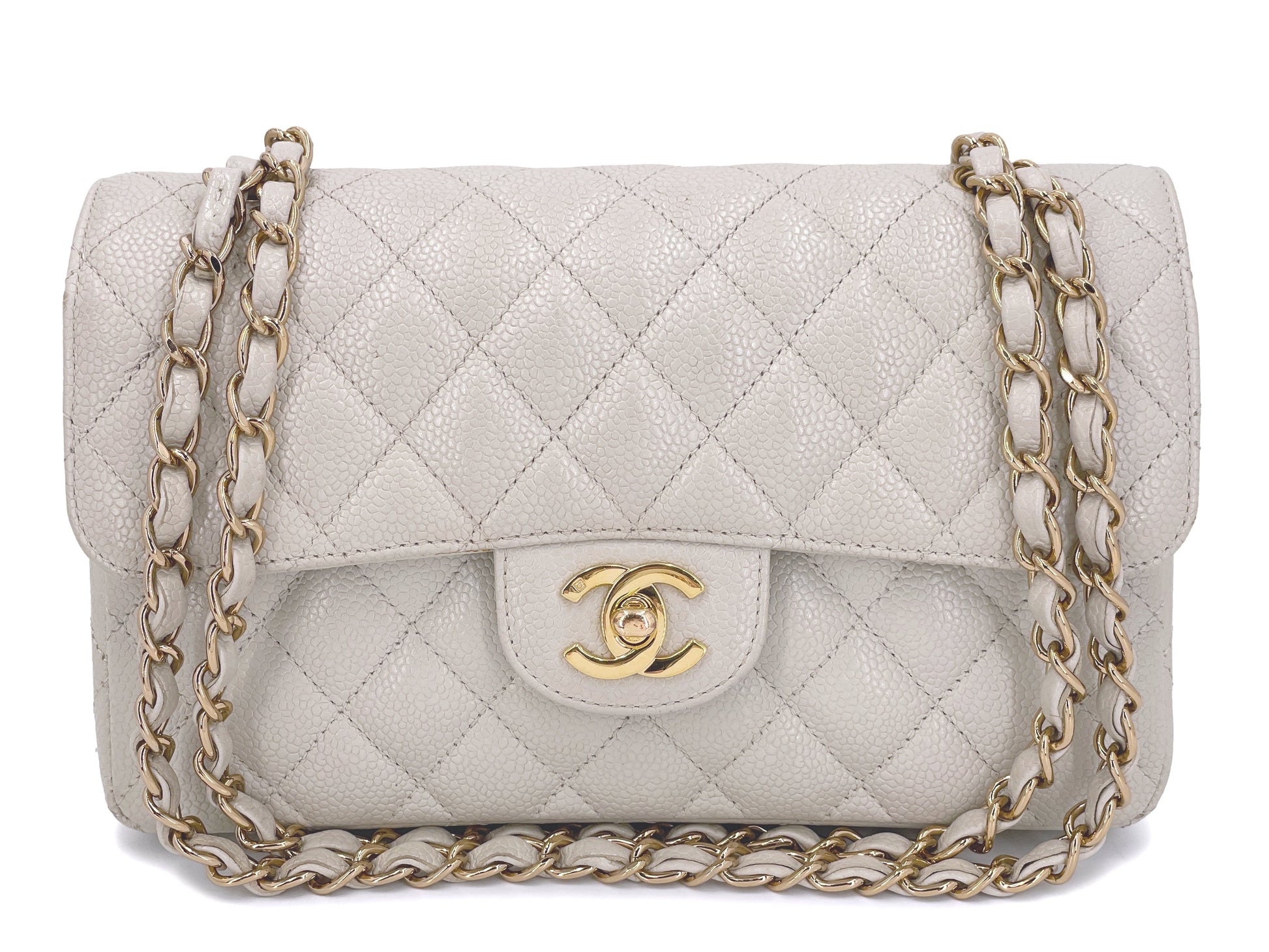 Chanel 2005 Light Gray-Beige Caviar Small Classic Double Flap Bag 24k GHW