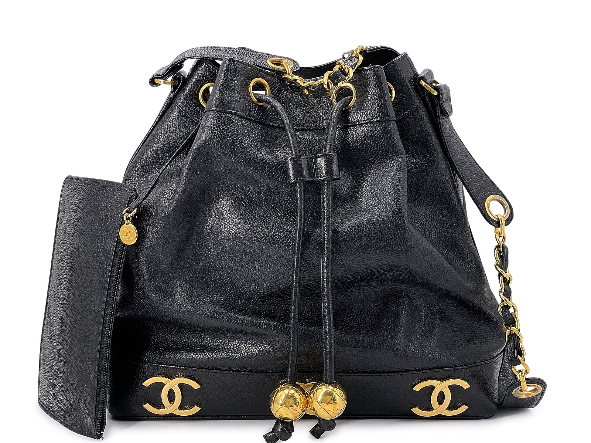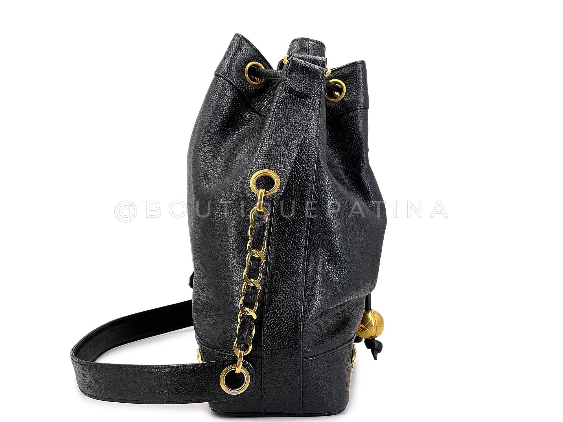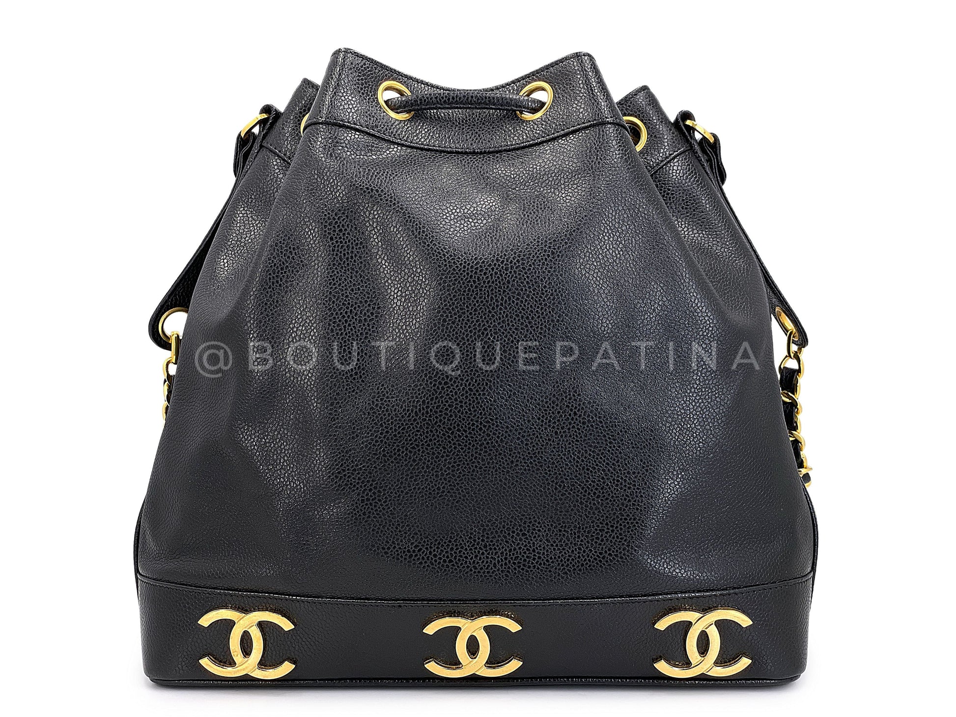 Chanel 1994 Vintage Black Caviar 6-CC Drawstring Bucket Bag 24k GHW