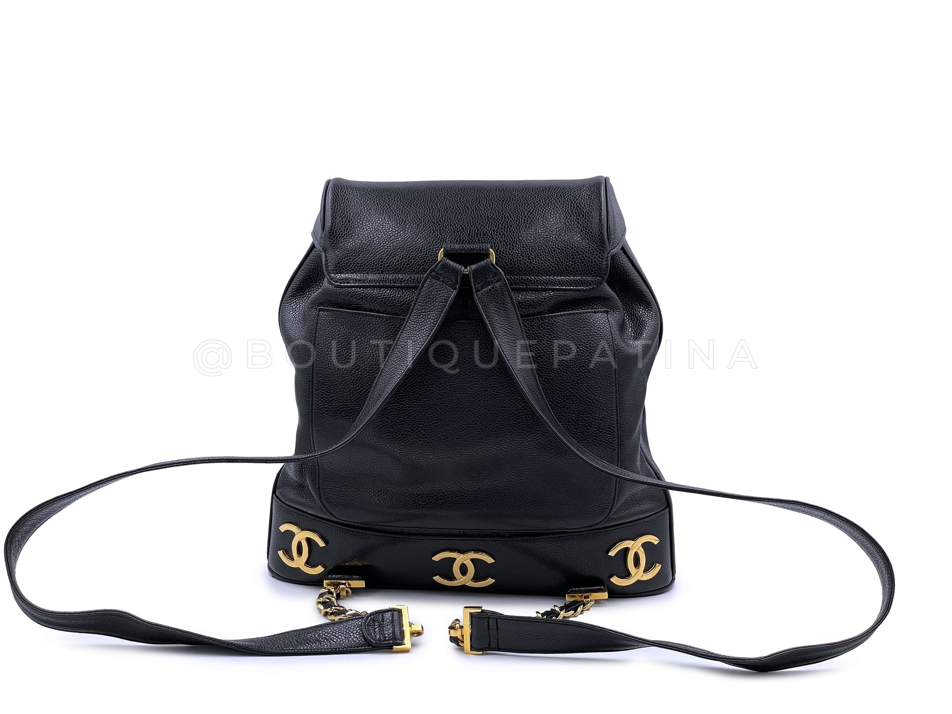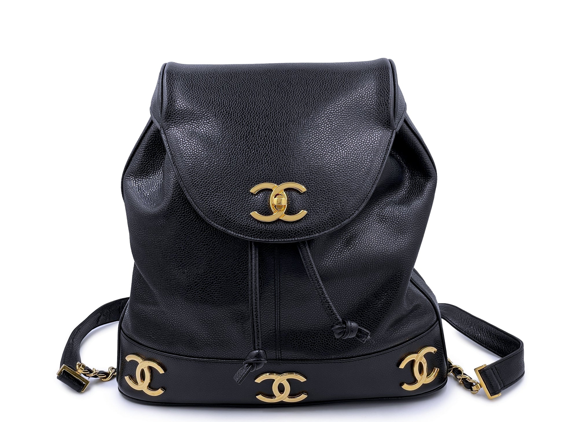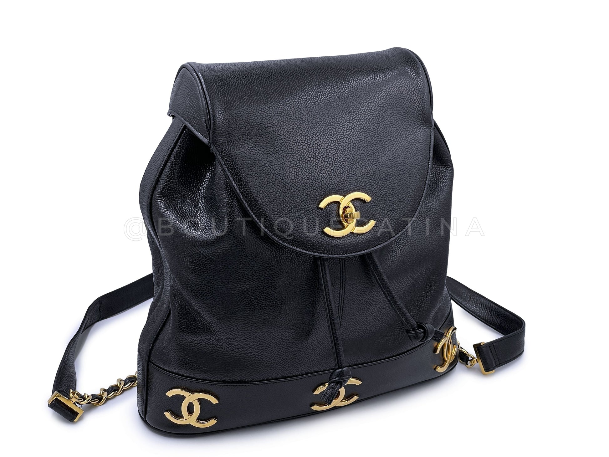 Chanel 1994 Vintage Black Caviar Classic Gold CC Backpack Bag 24k GHW