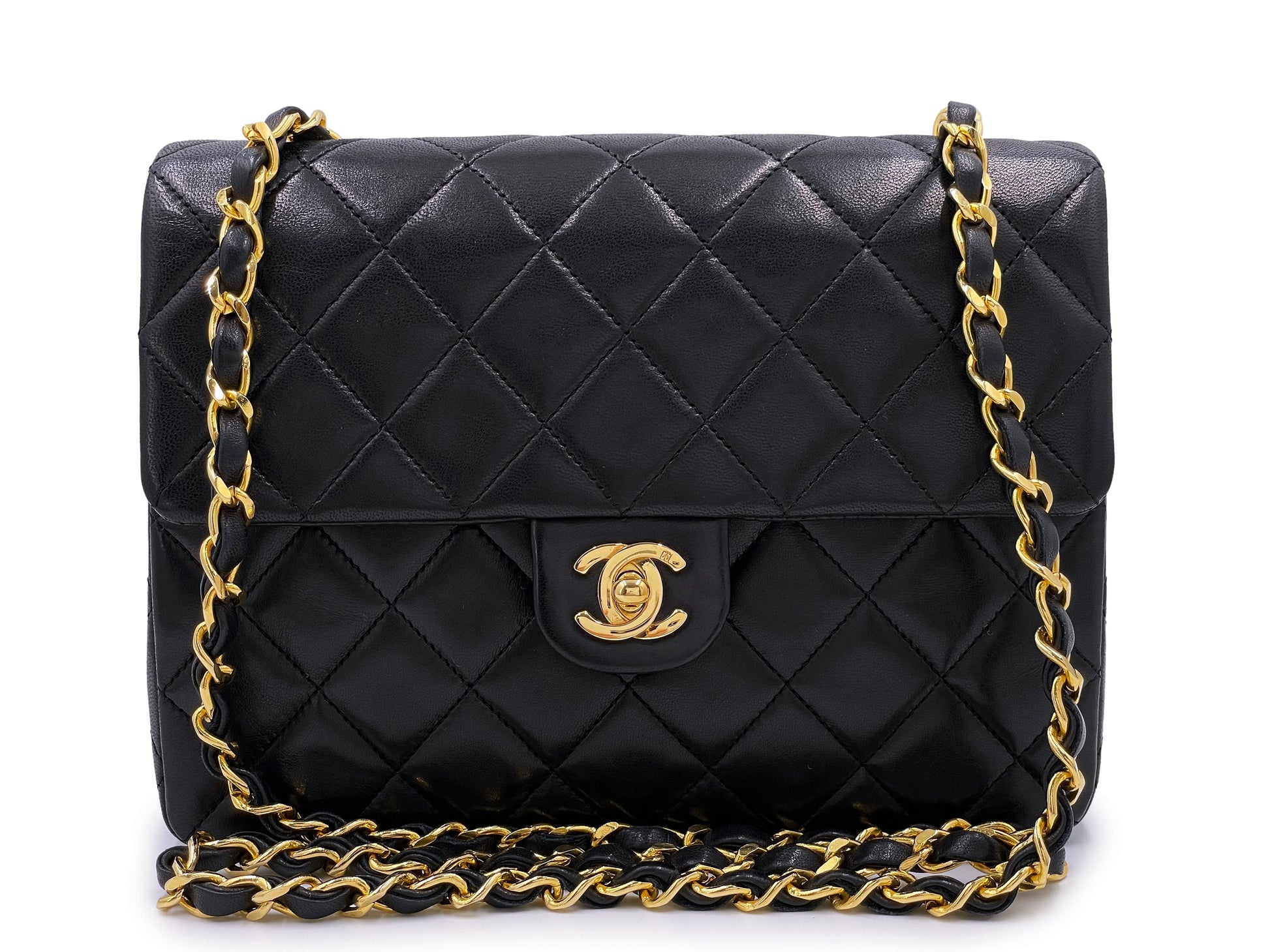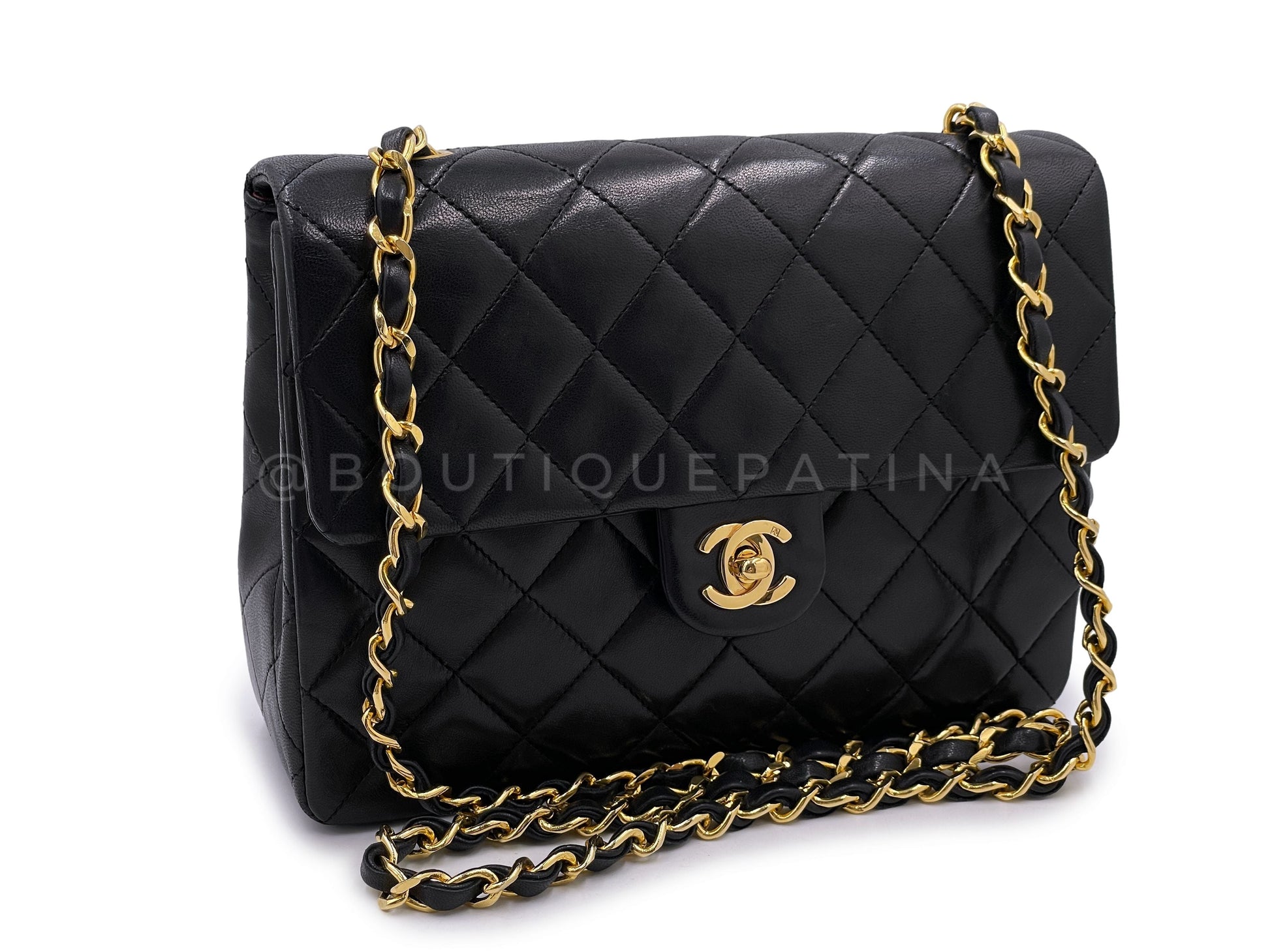Chanel Vintage 1990 Black 20cm Square Mini Flap Bag 24k GHW
