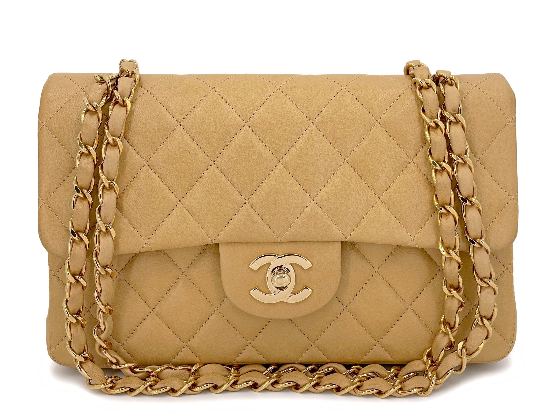 Chanel 2002 Vintage Milk Tea Beige Small Classic Double Flap Bag 24k GHW Lambskin