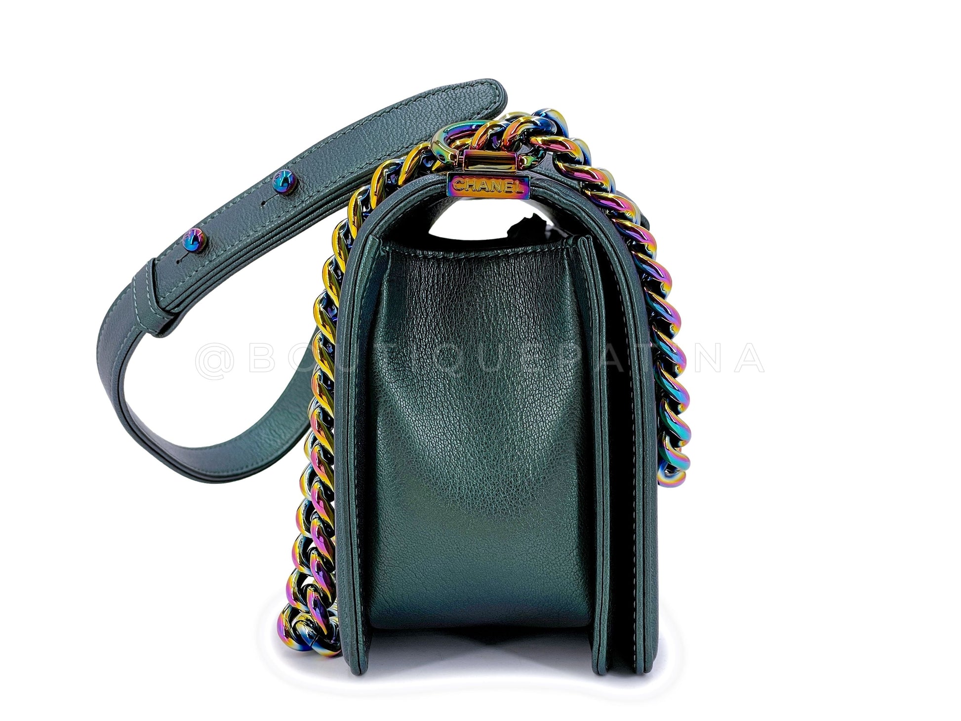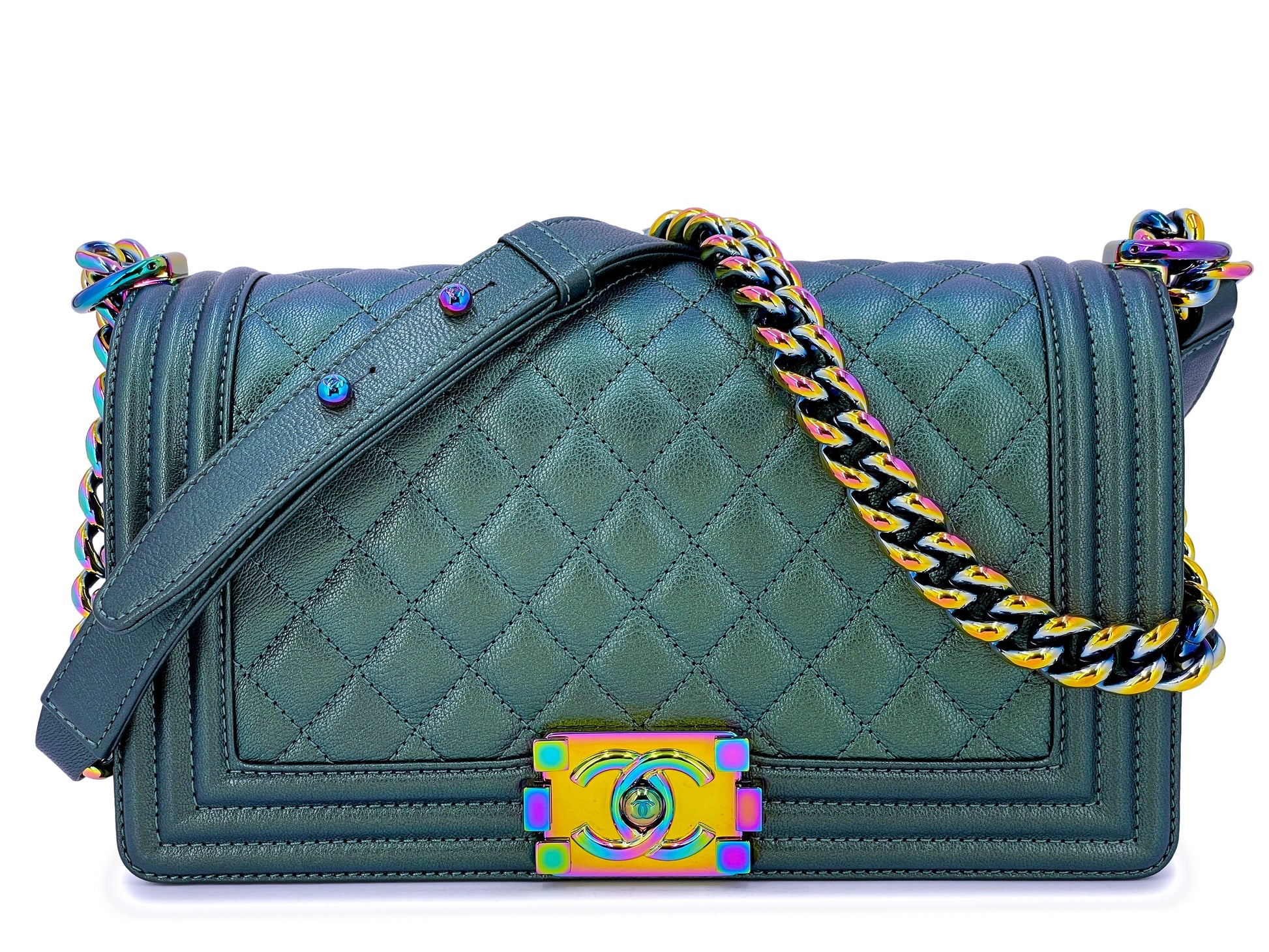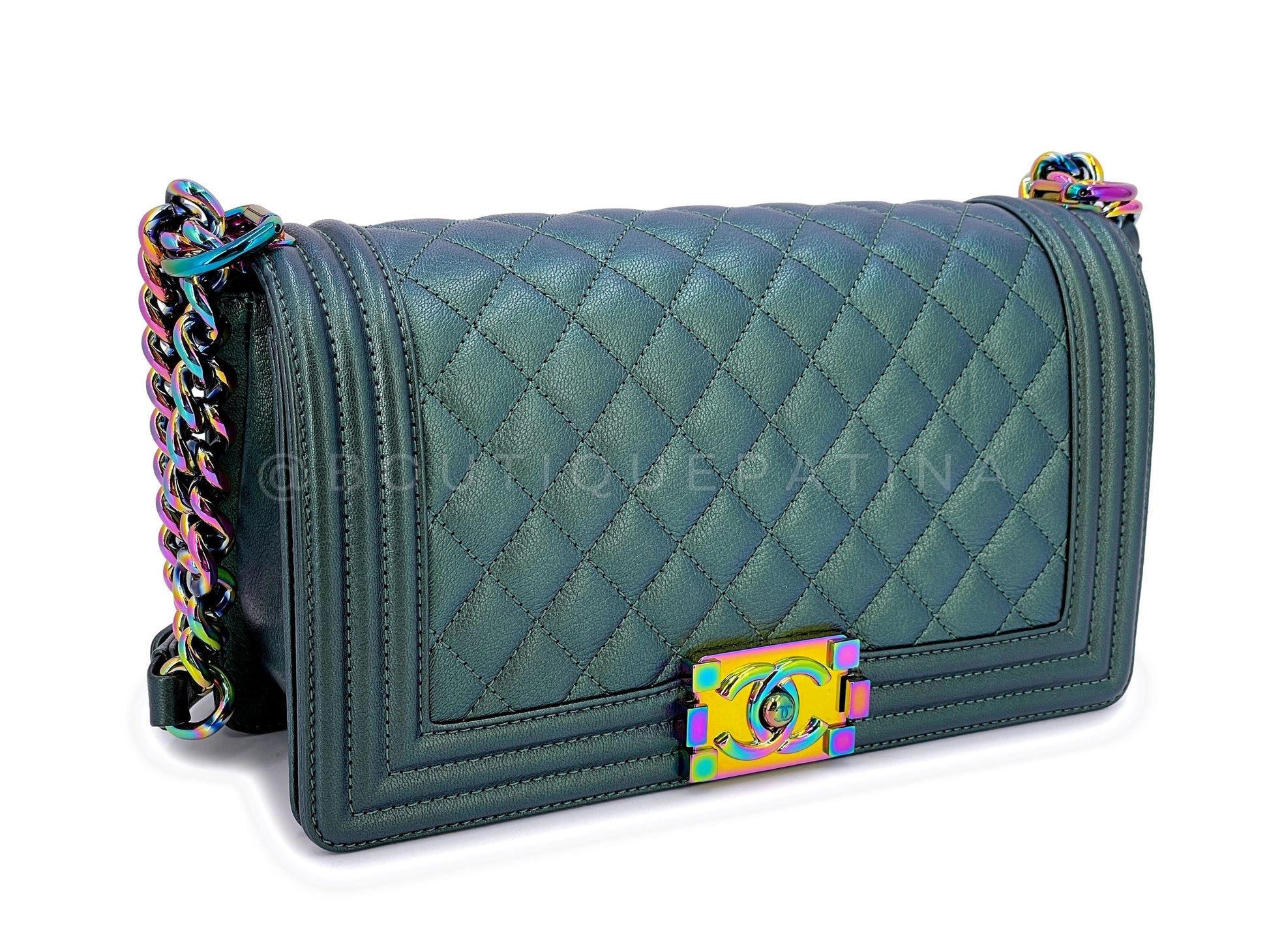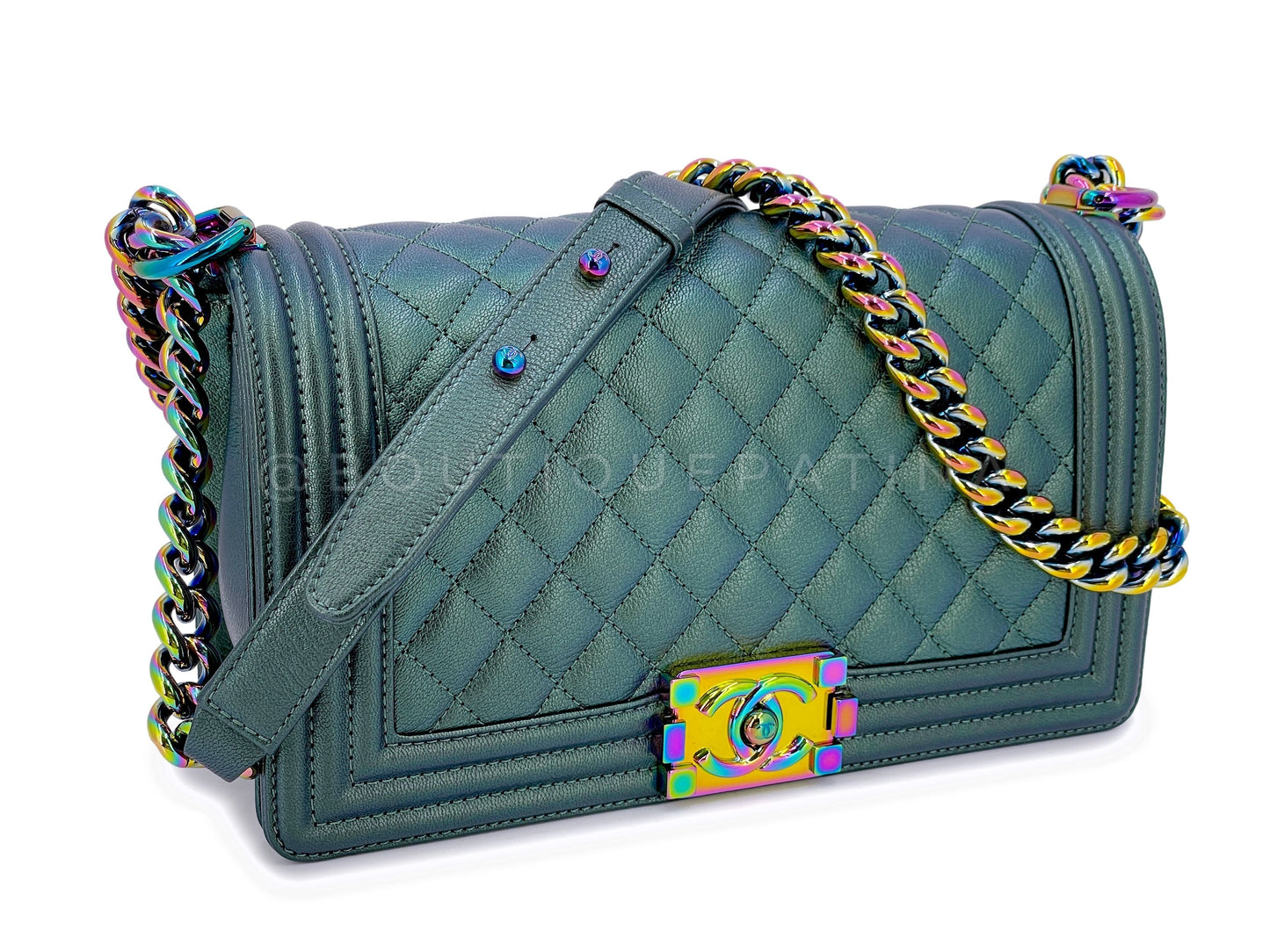 Chanel 16C Iridescent Mermaid Green Medium Boy Flap Bag Rainbow HW