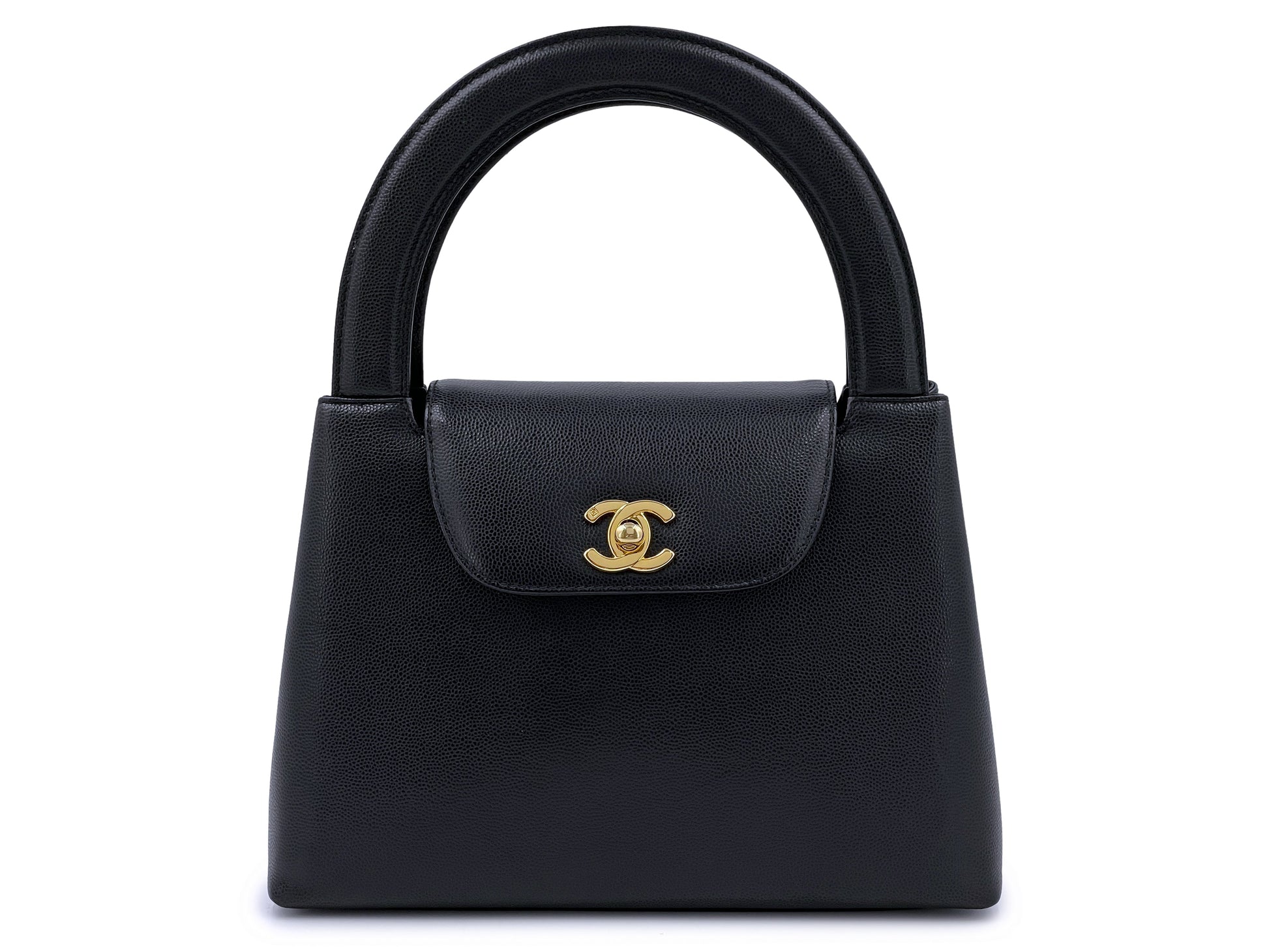 One of our favorite vintage treasures is this Rare Chanel 1997 Vintage Black Caviar Mini Kelly Evening Bag 24k GHW. A wearable rare collectible for a Chanel maven's closet.
