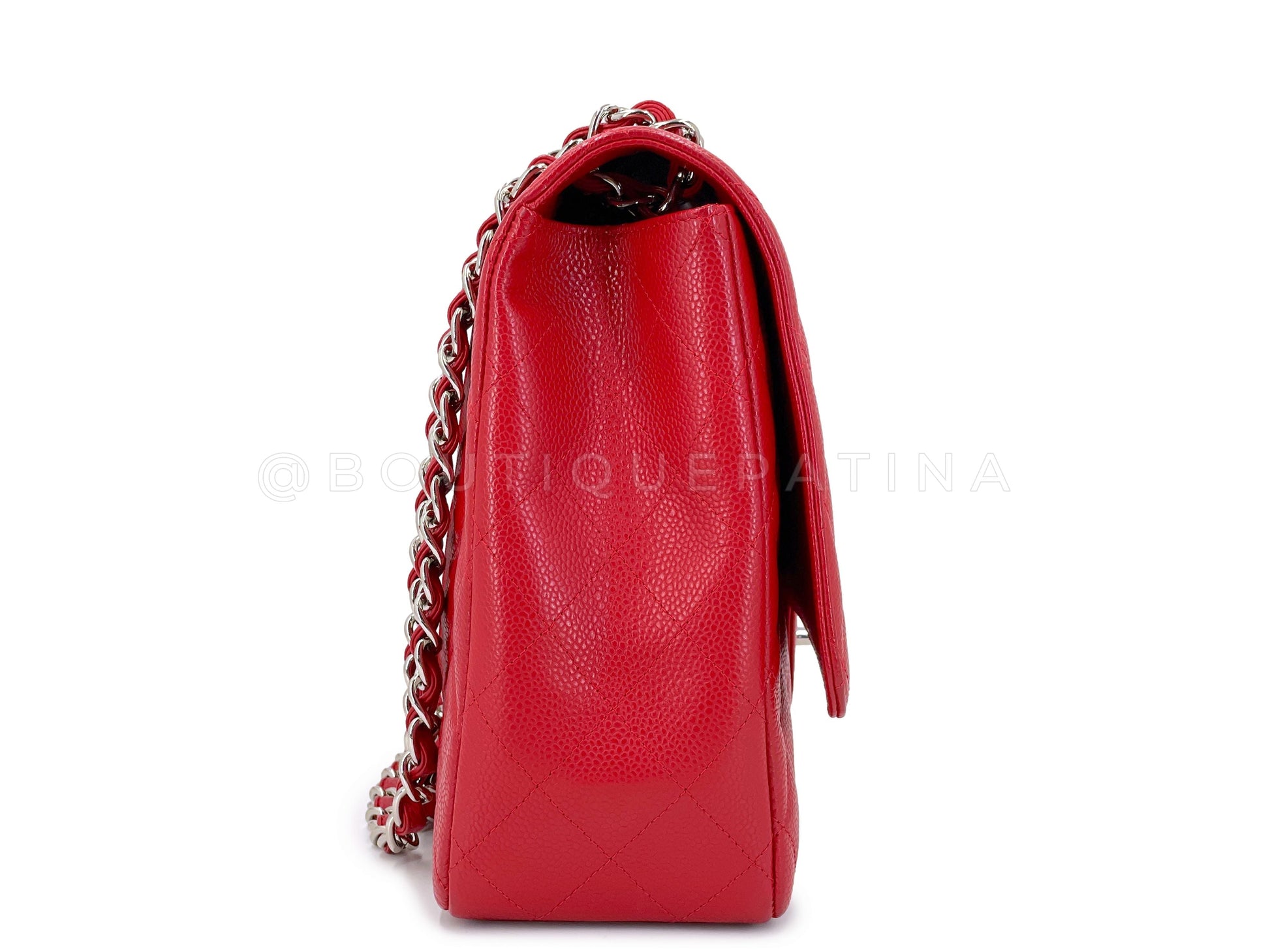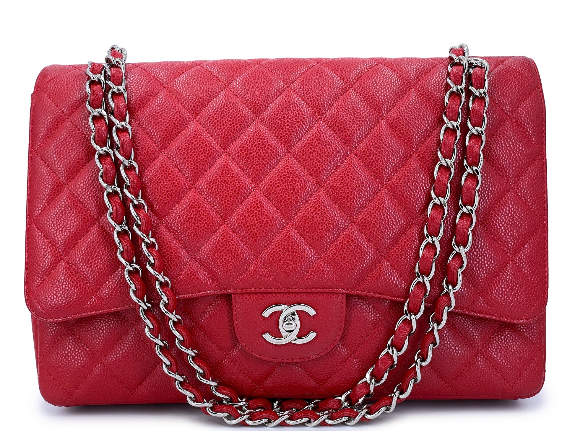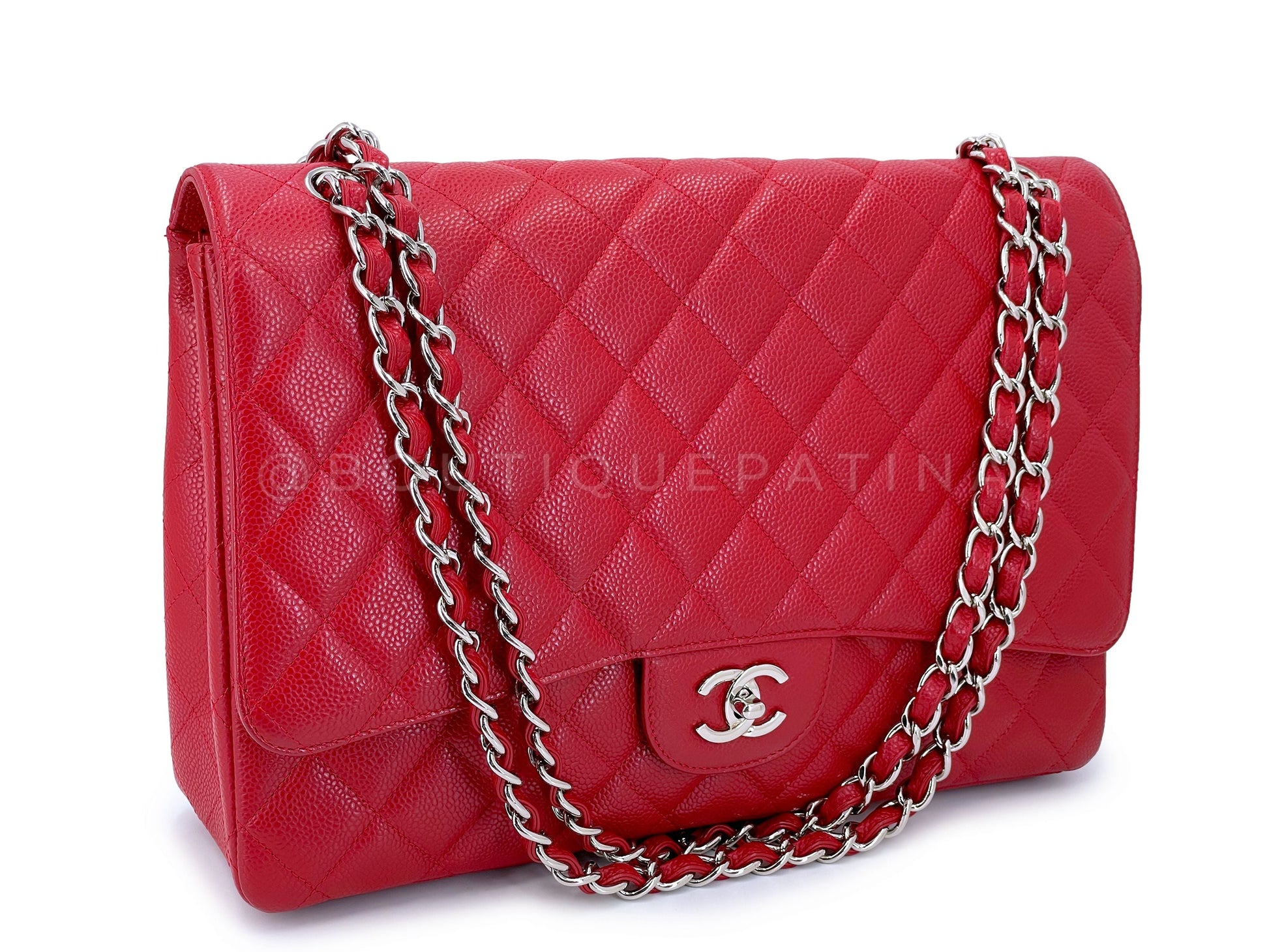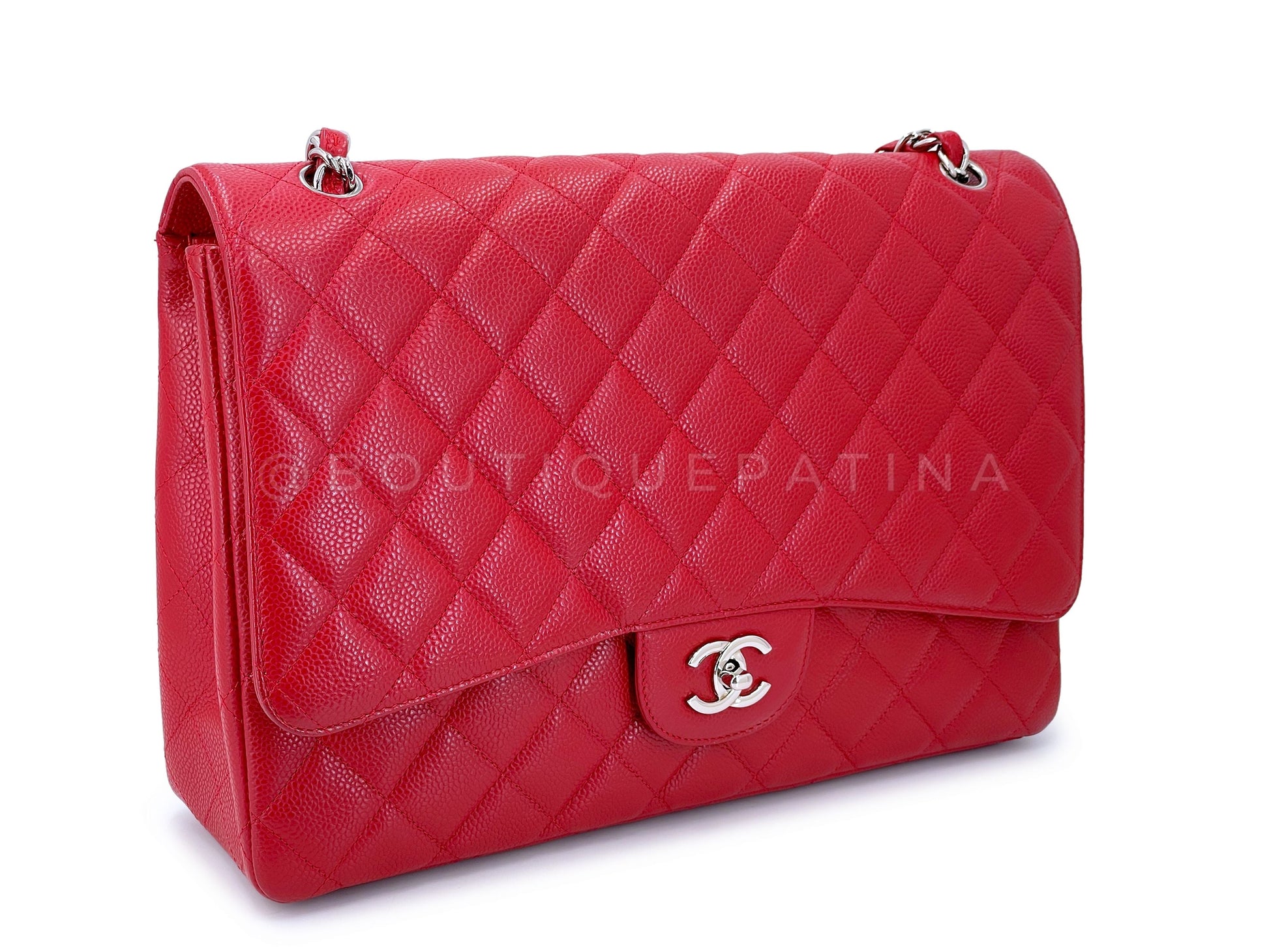 Chanel Red Caviar Maxi Classic Single Flap Bag SHW