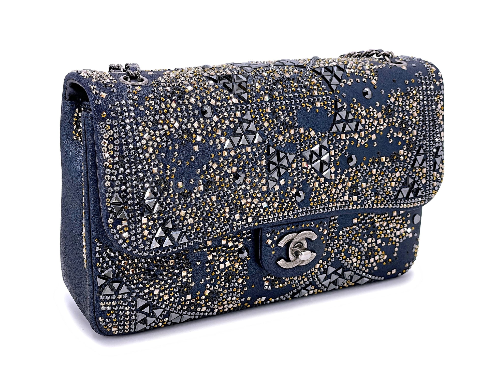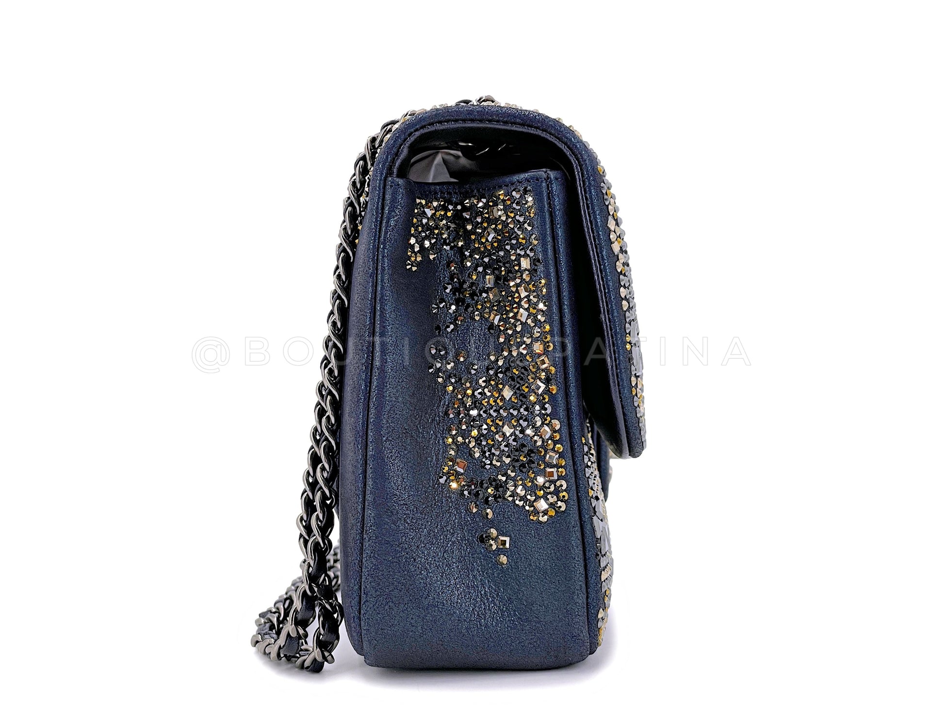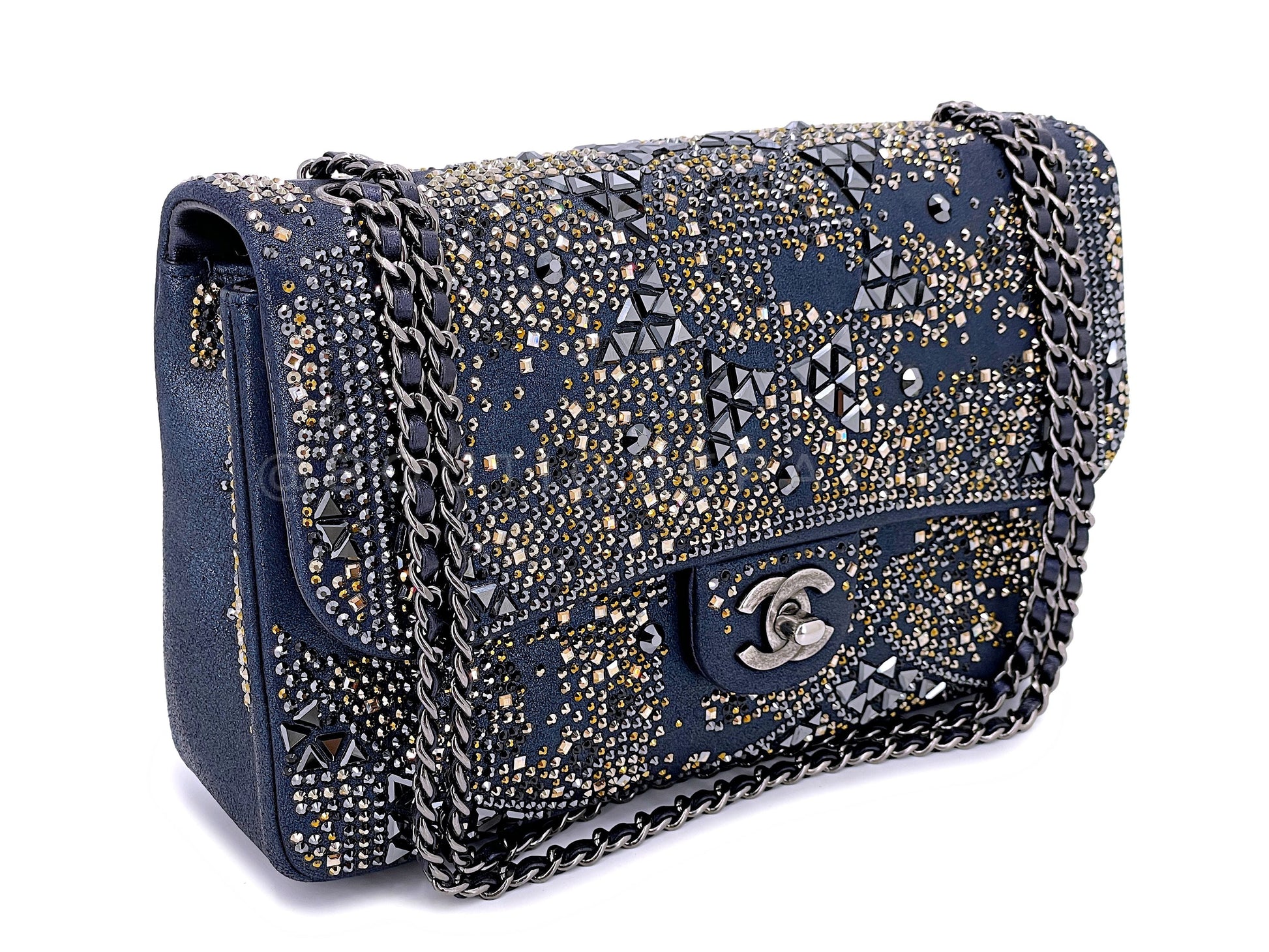 Chanel 16A Strass Crystal Buonasera Goatskin Medium Classic Flap Bag RHW Blue