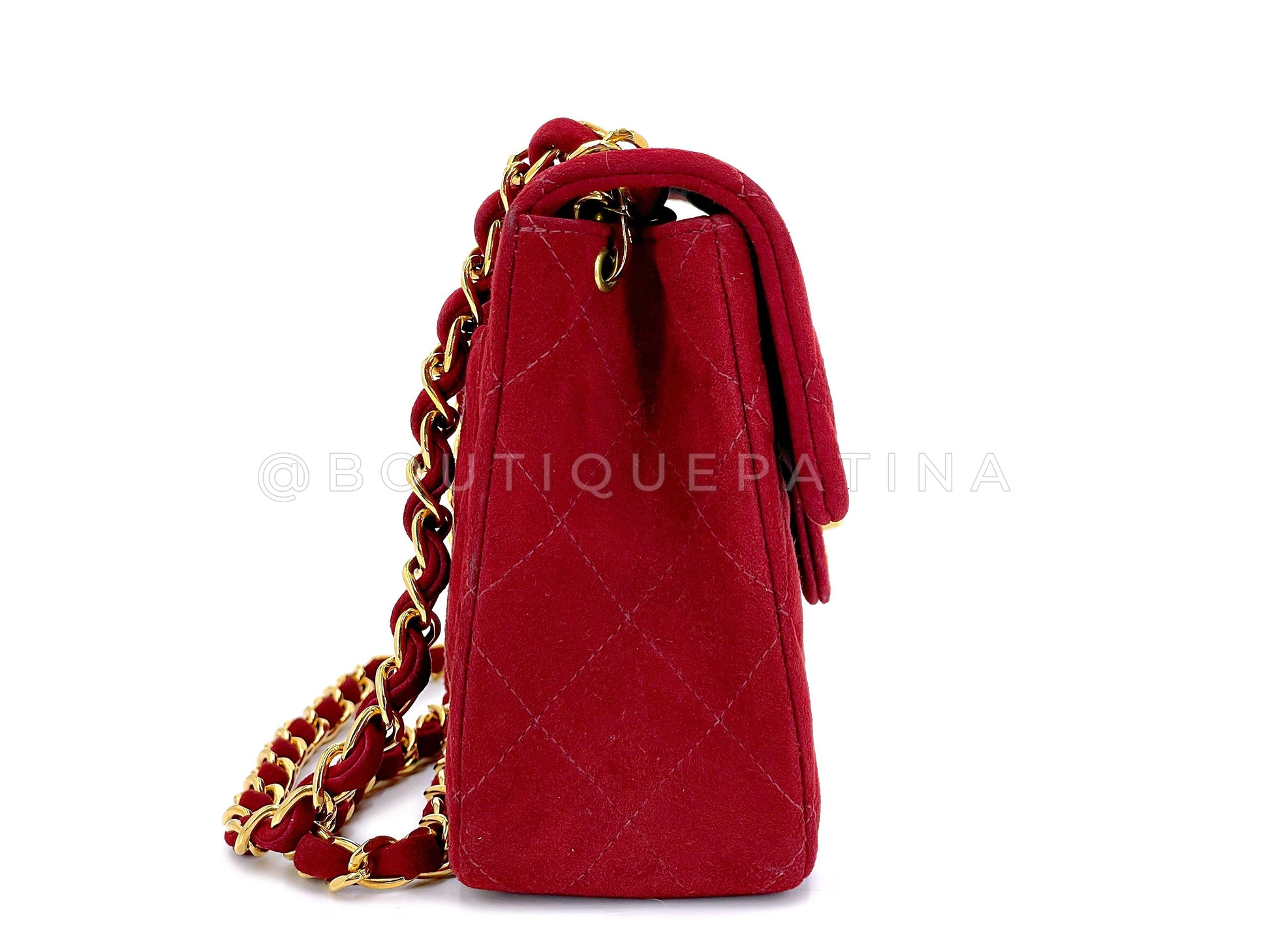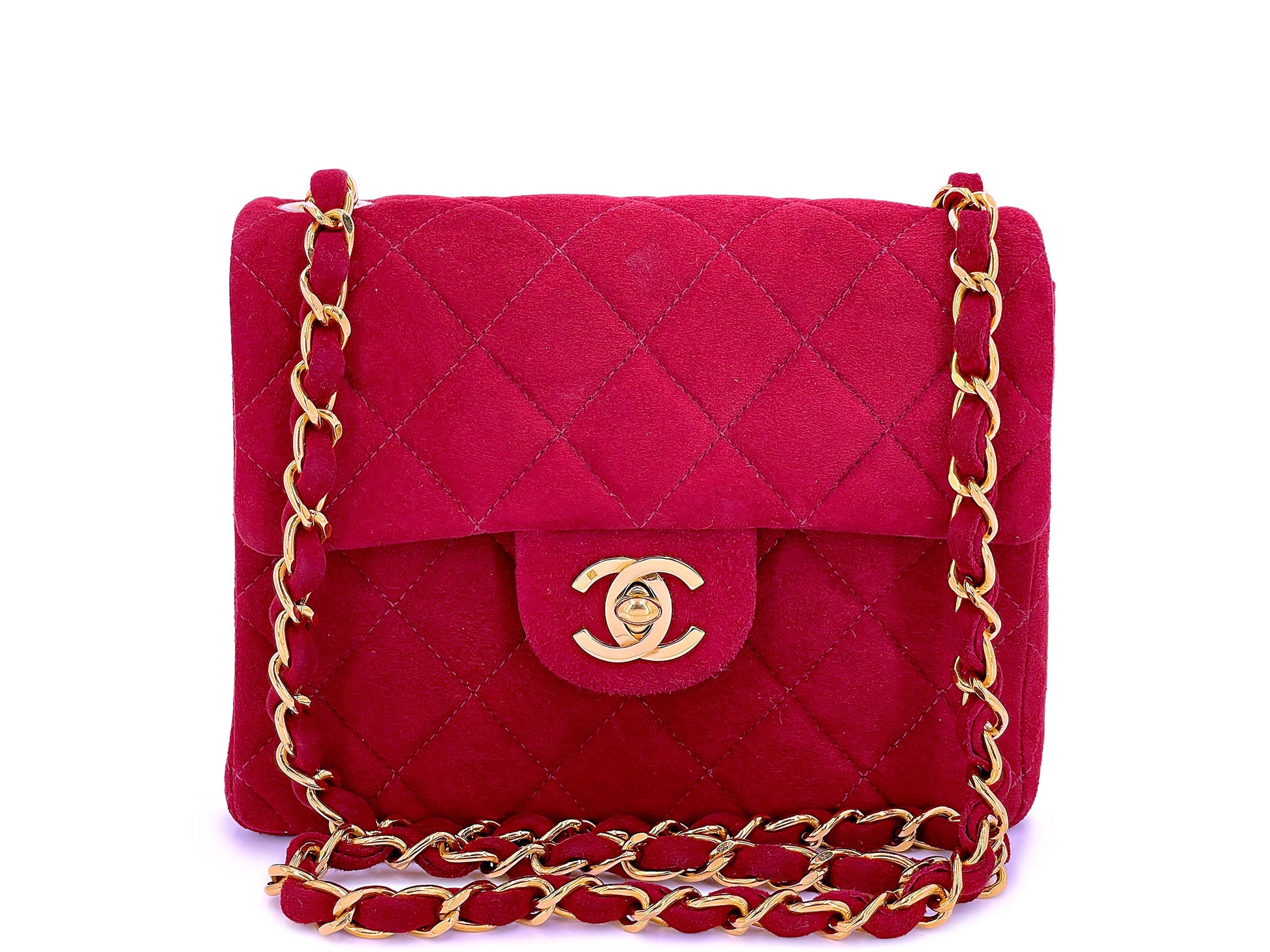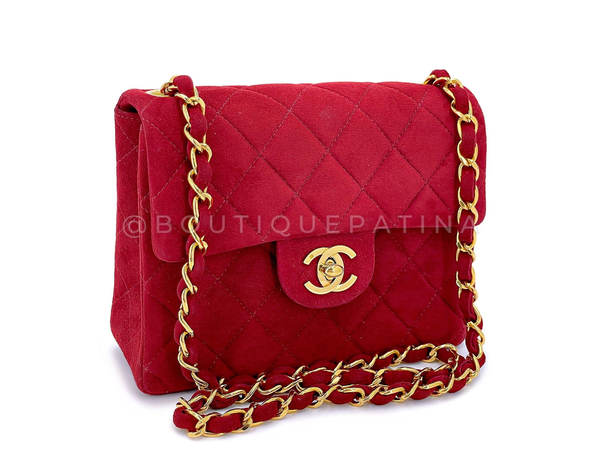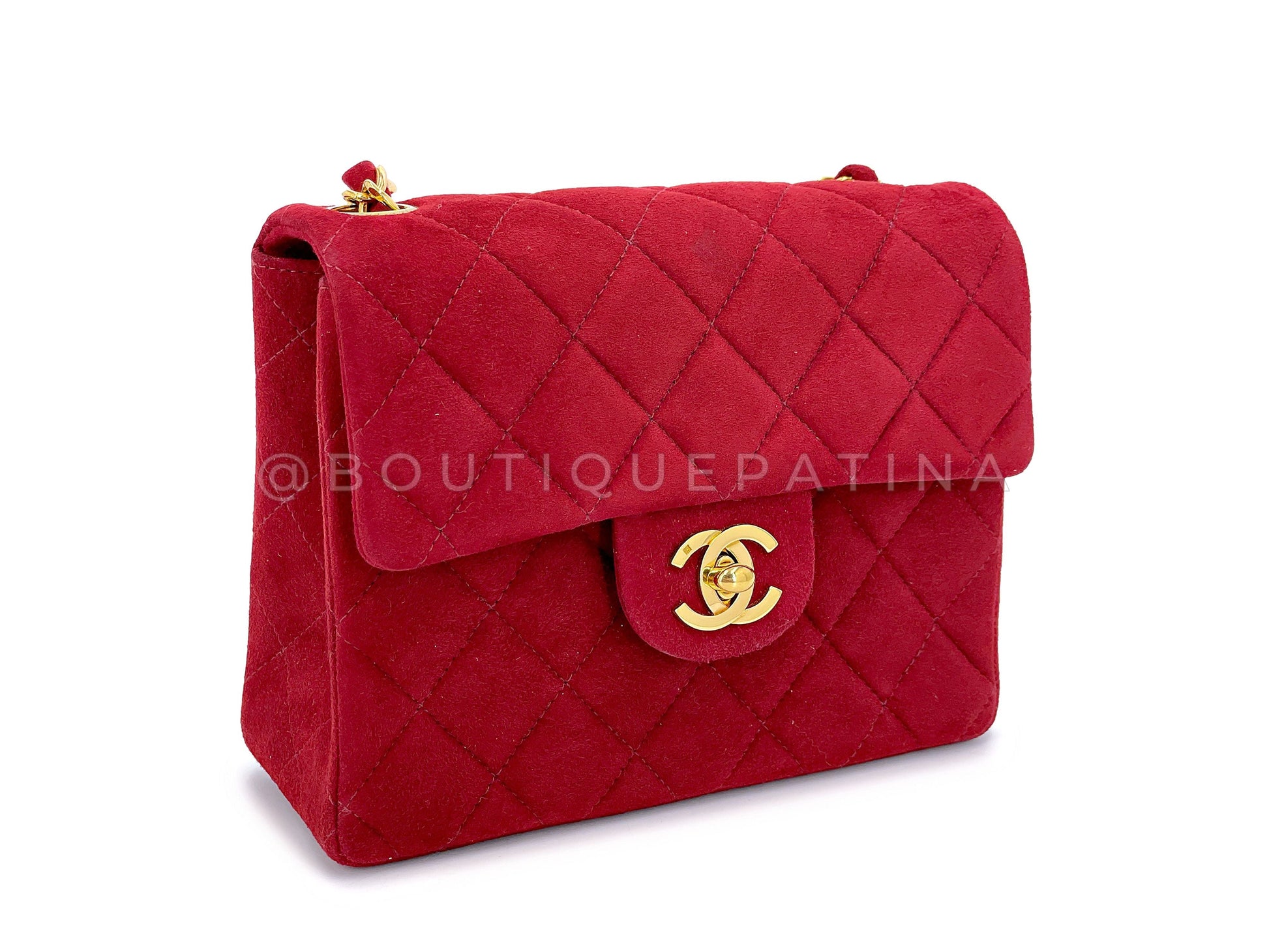 Chanel 1998 Vintage Red Suede Square Mini Flap Bag 24k GHW