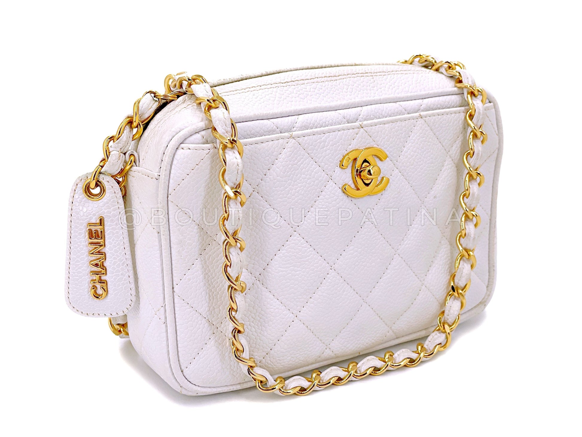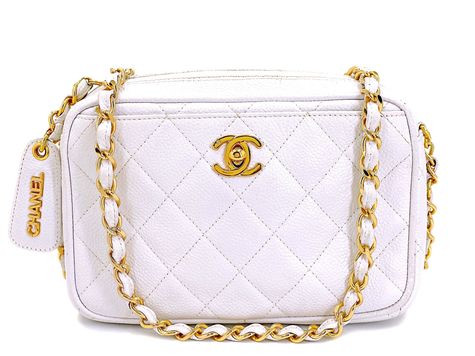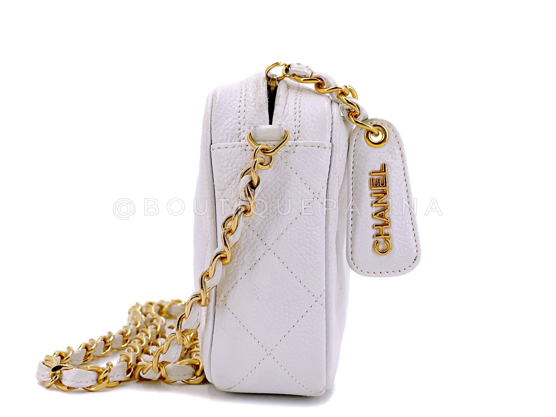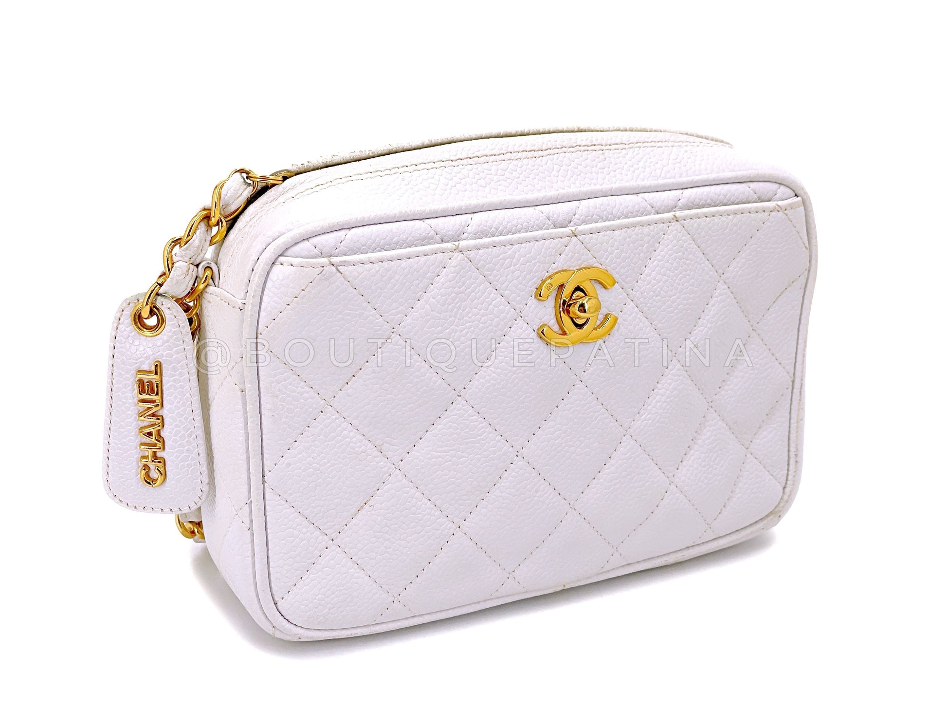 Rare Chanel Vintage White Caviar Mini Classic Clasp Camera Case Bag 24k GHW