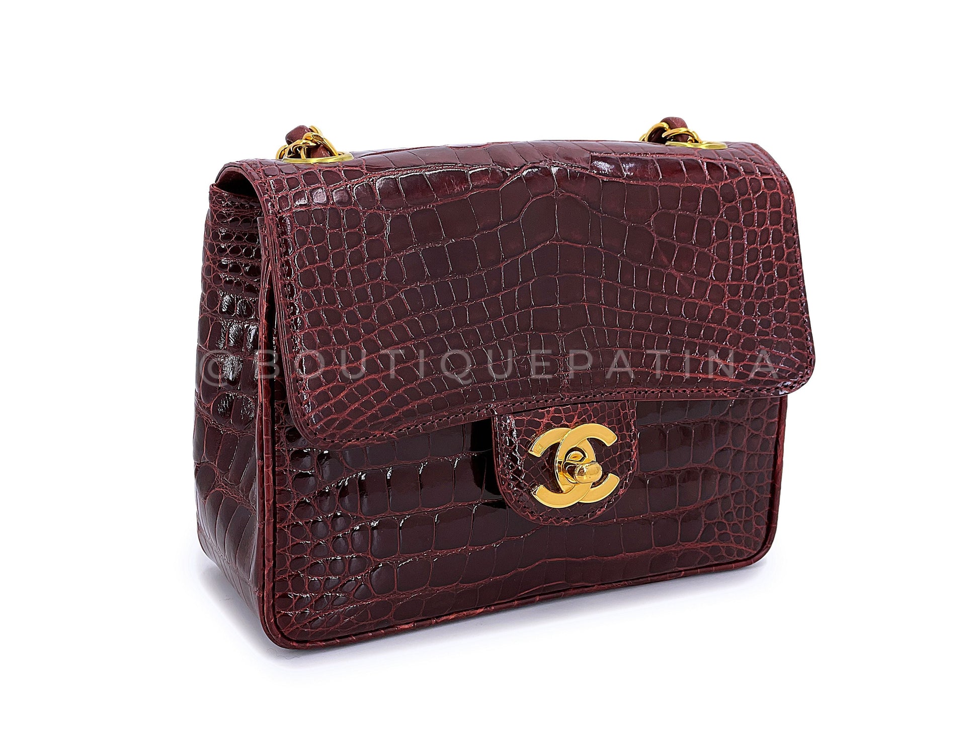 Chanel 1996 Vintage Burgundy Alligator Crocodile Square Mini Flap Bag 24k GHW 4RU