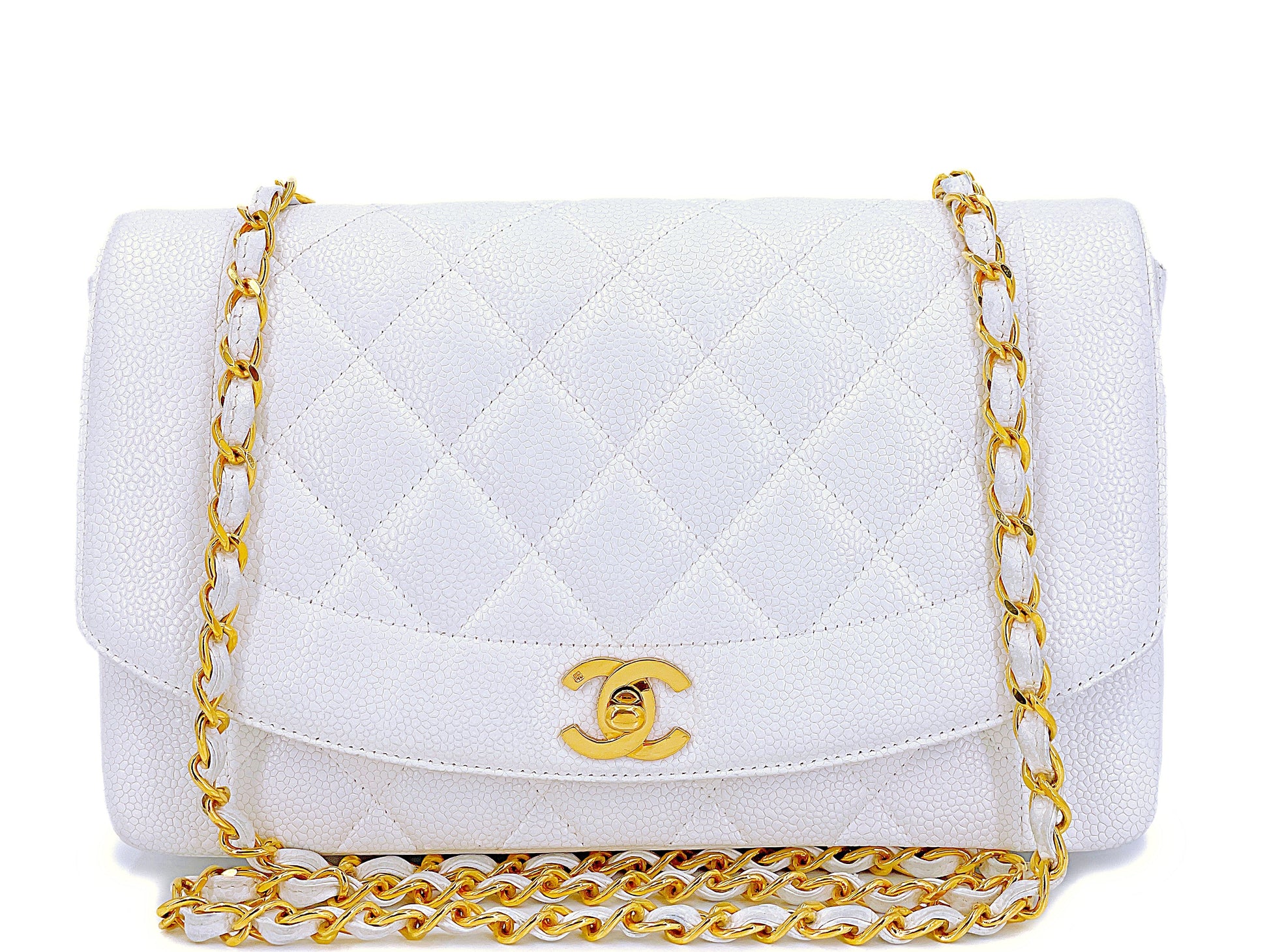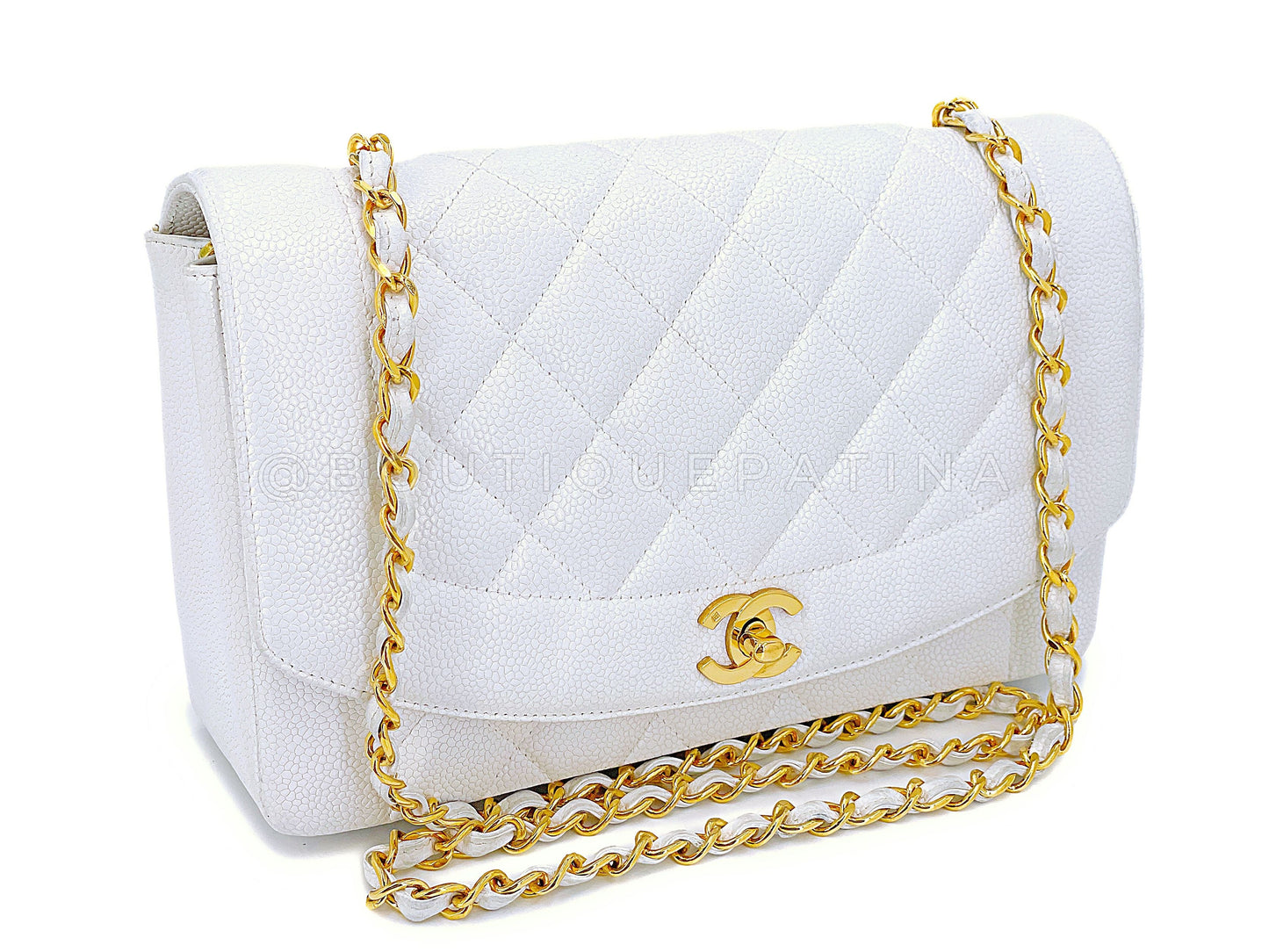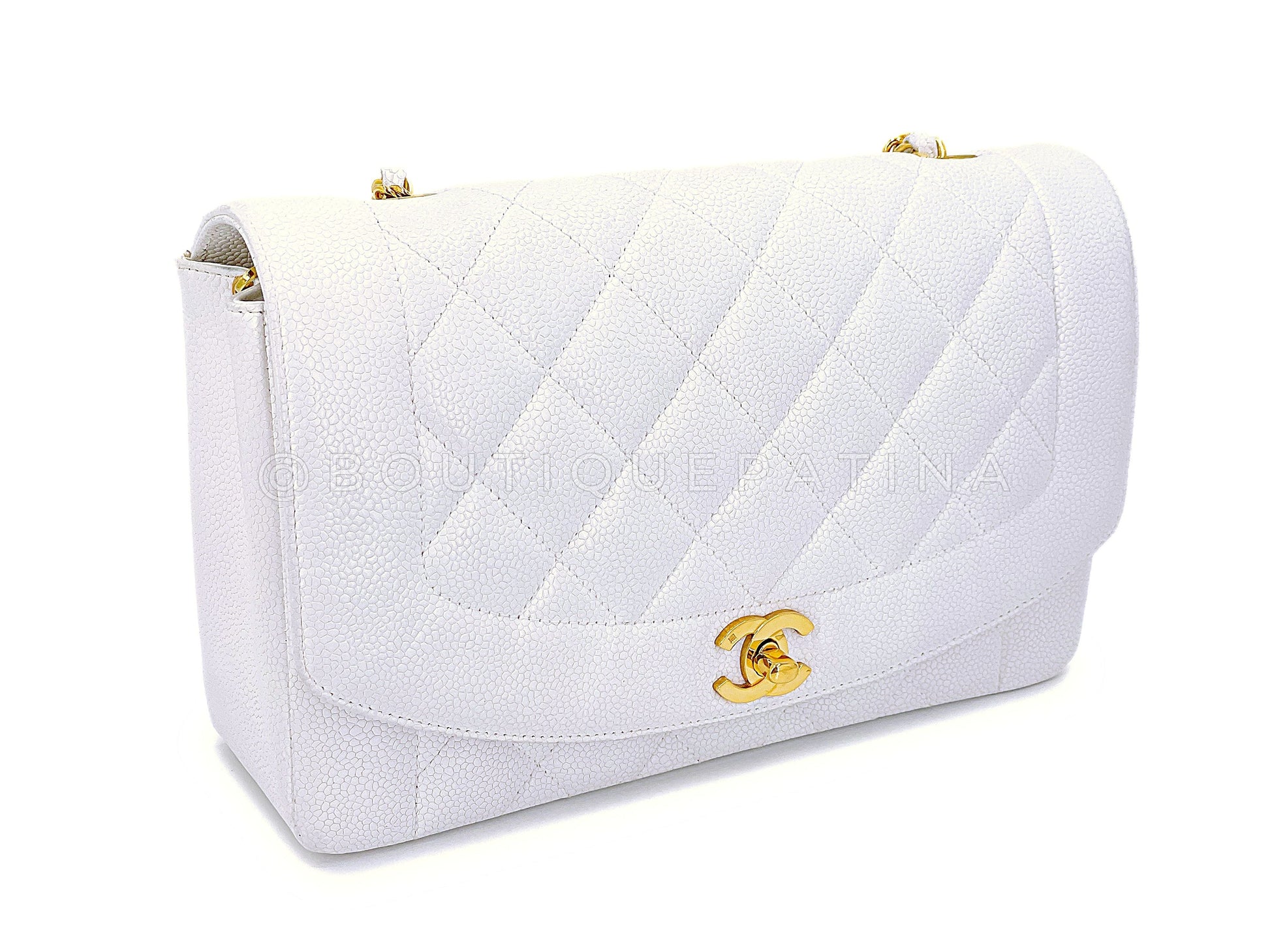 Chanel Vintage 1992 White Caviar Medium Diana Flap Bag 24k GHW