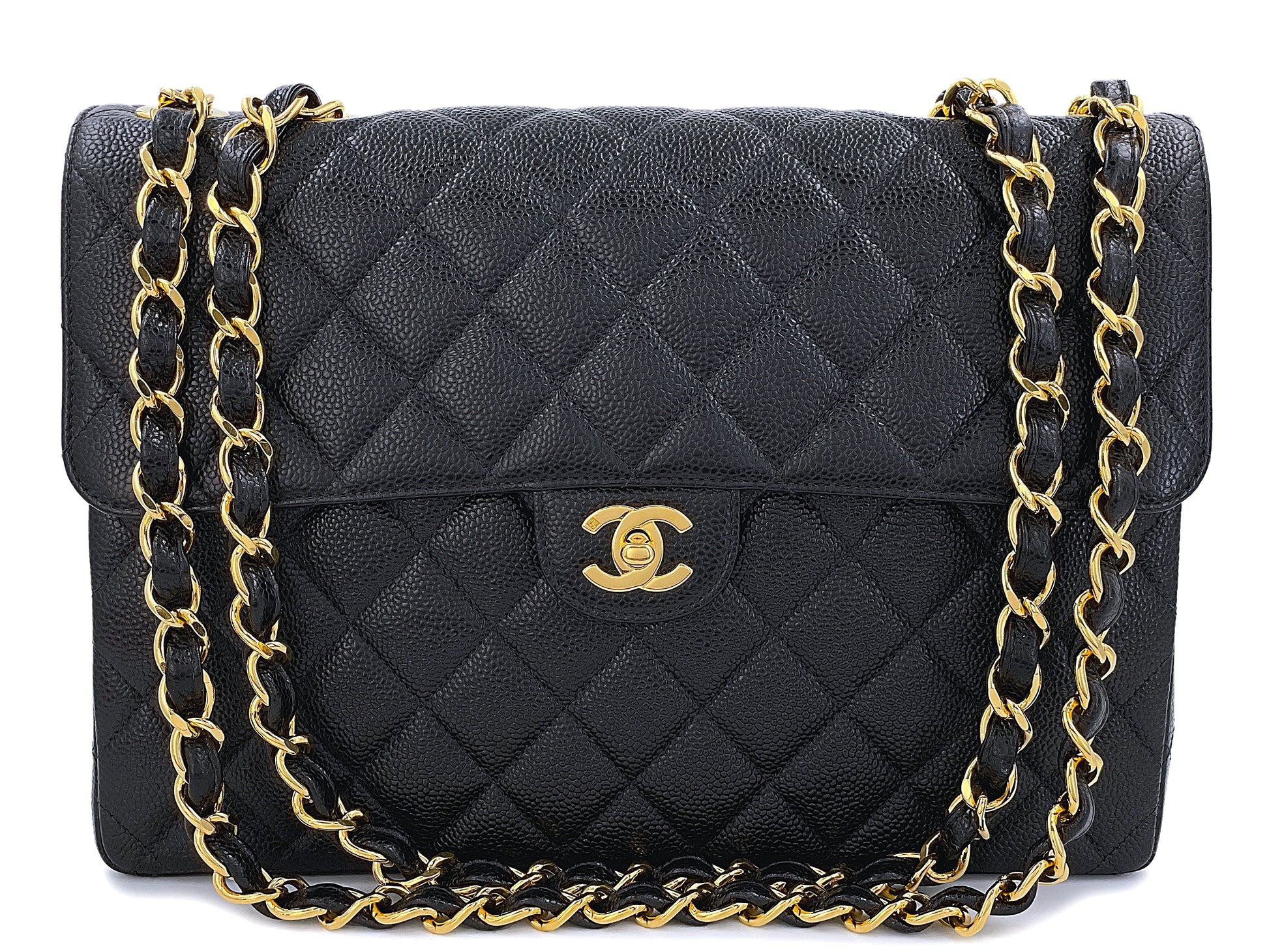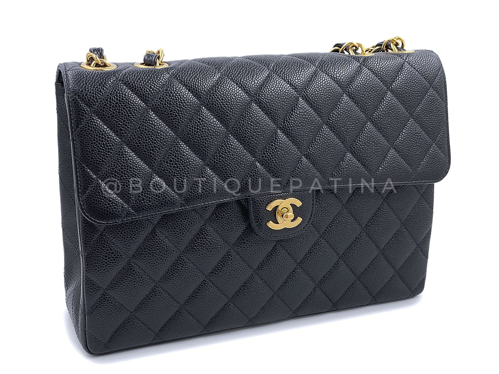 Chanel Black Caviar Jumbo Flap Bag 2002 Pristine Vintage Classic 24k GHW