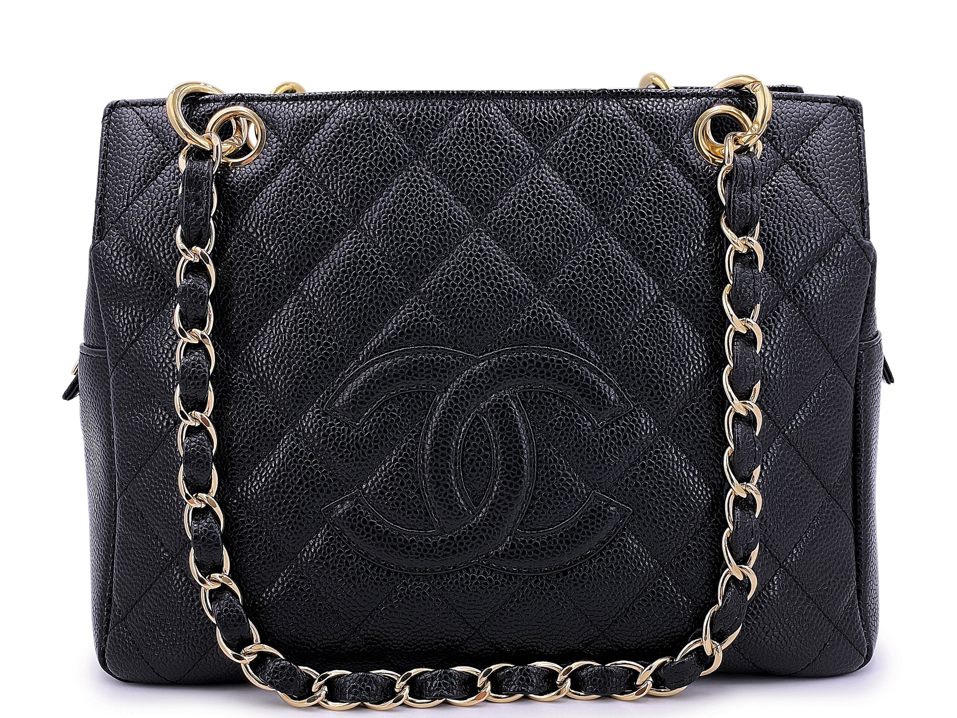 Chanel PTT Black Caviar Bag 2003 Vintage Petite Timeless Tote 24k GHW