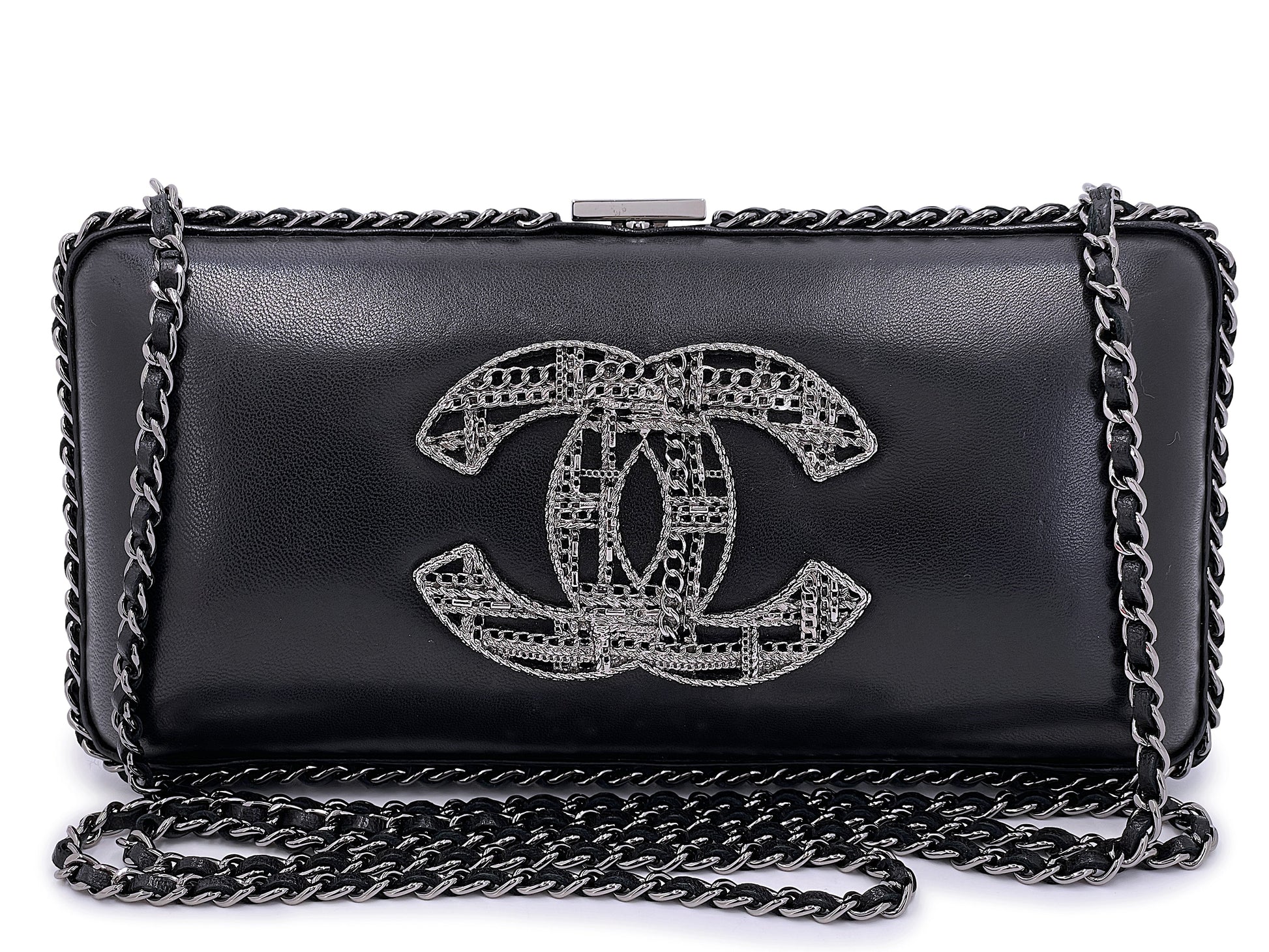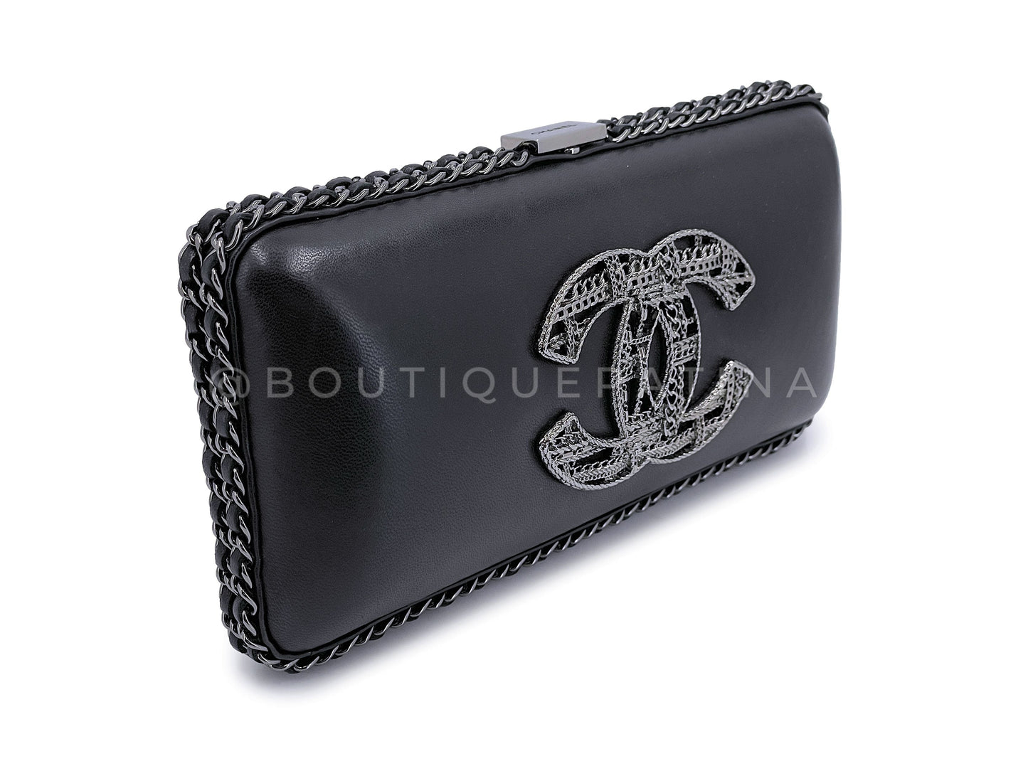 Chanel 2013 Tweed Motif CC Chain Around Evening Clutch Bag RHW Black