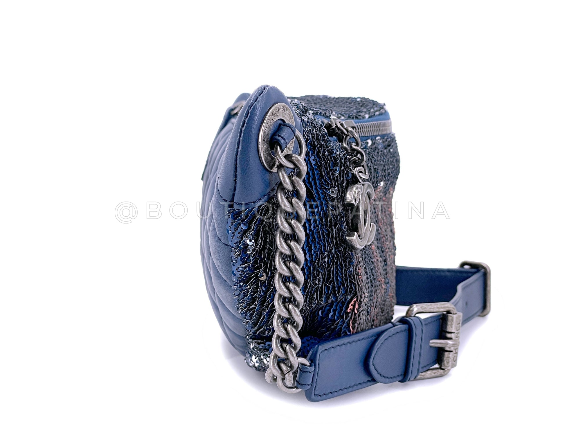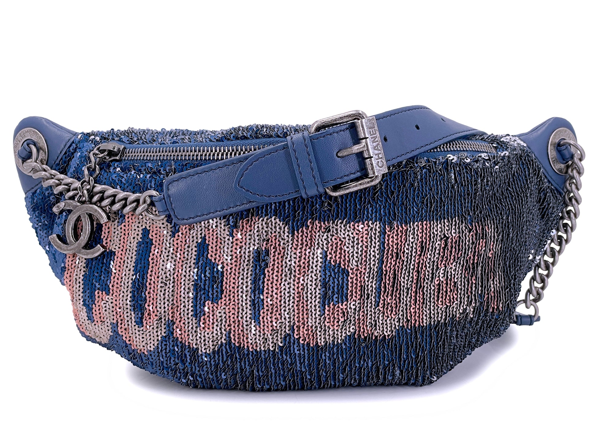 Chanel 17C Blue Pink Sequin Coco Cuba Fanny Pack Belt Bum Bag