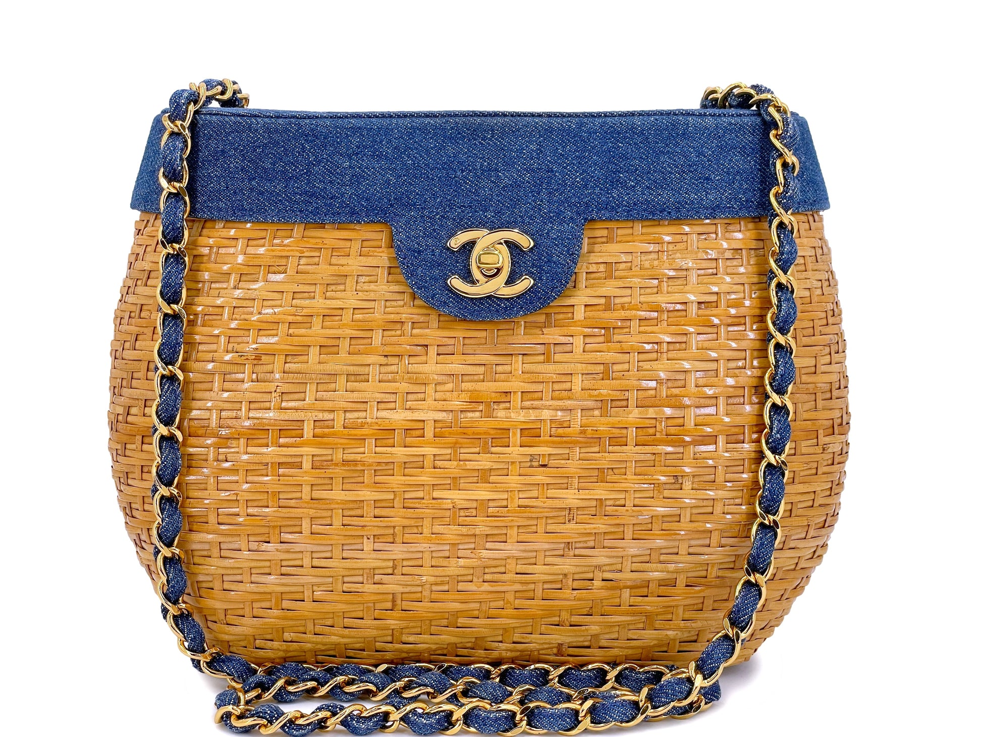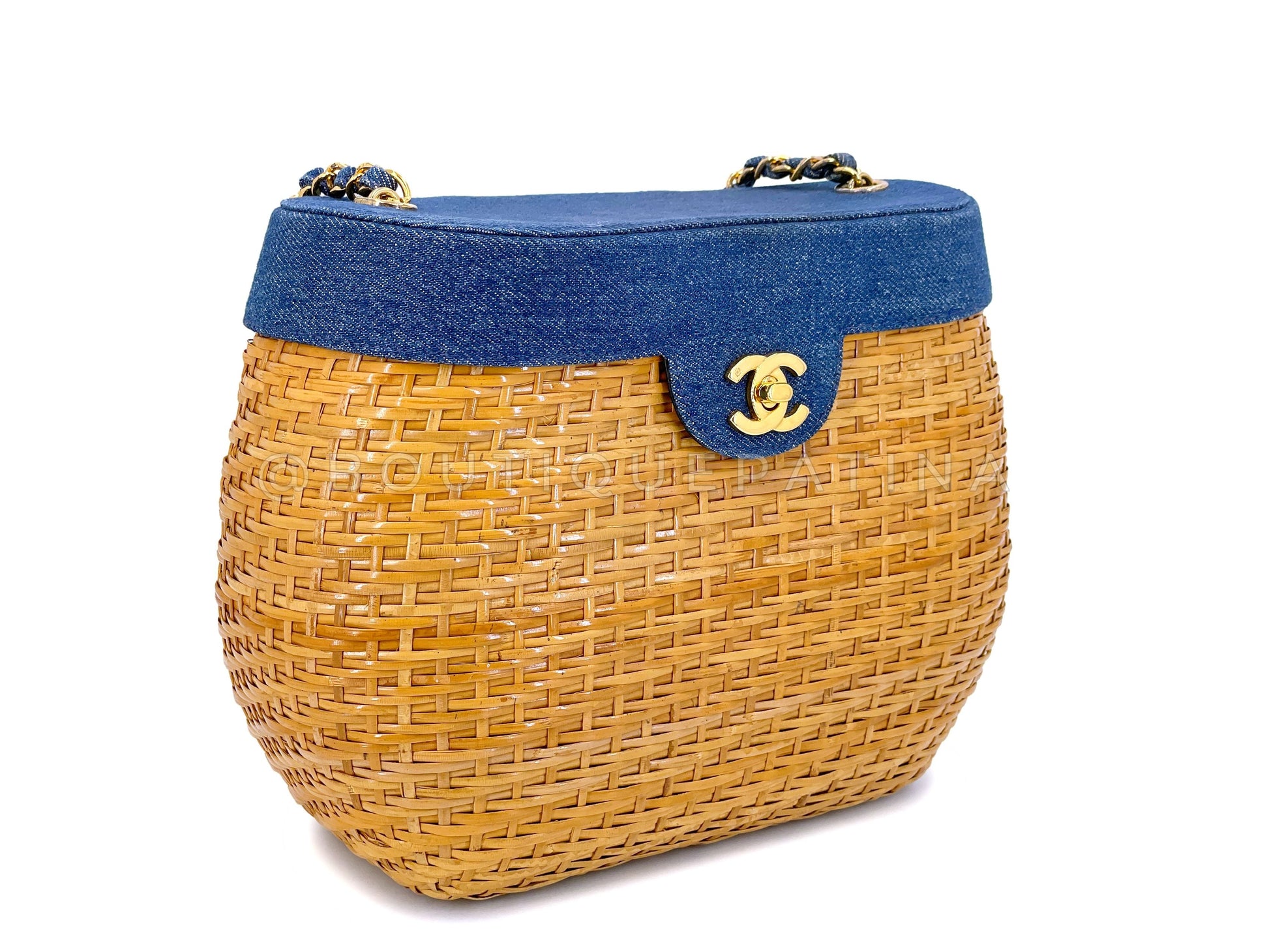 Chanel Vintage Denim and Wicker Round Basket Bag 24k GHW