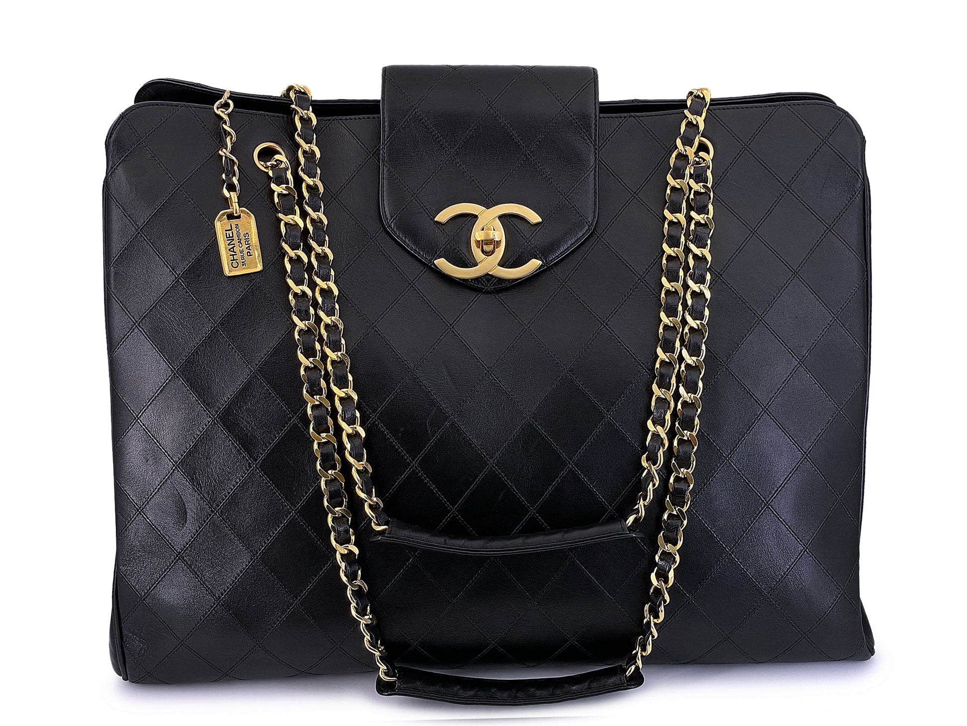 Chanel Vintage Black Quilted Supermodel XL Weekender Tote Bag 24k GHW