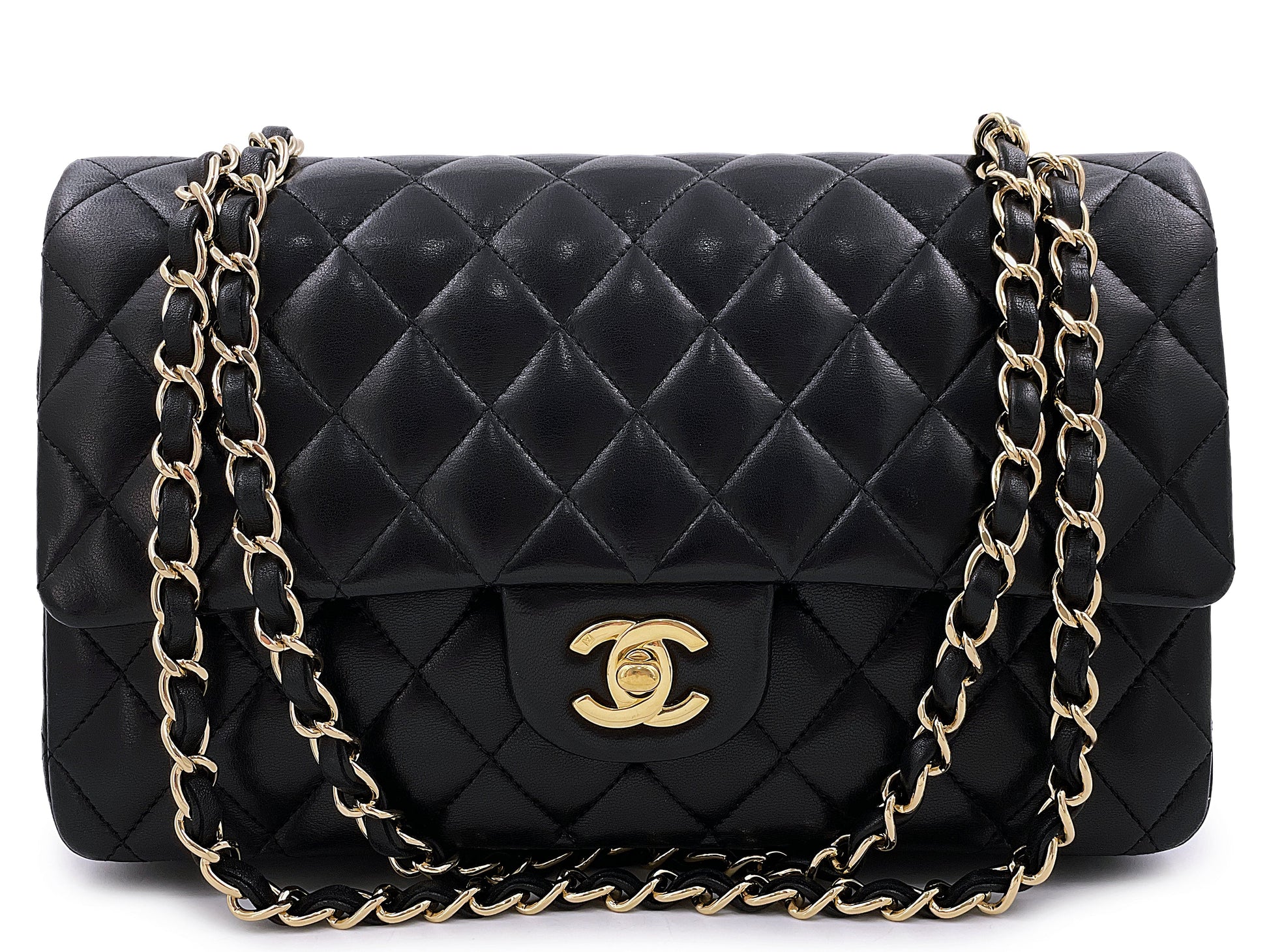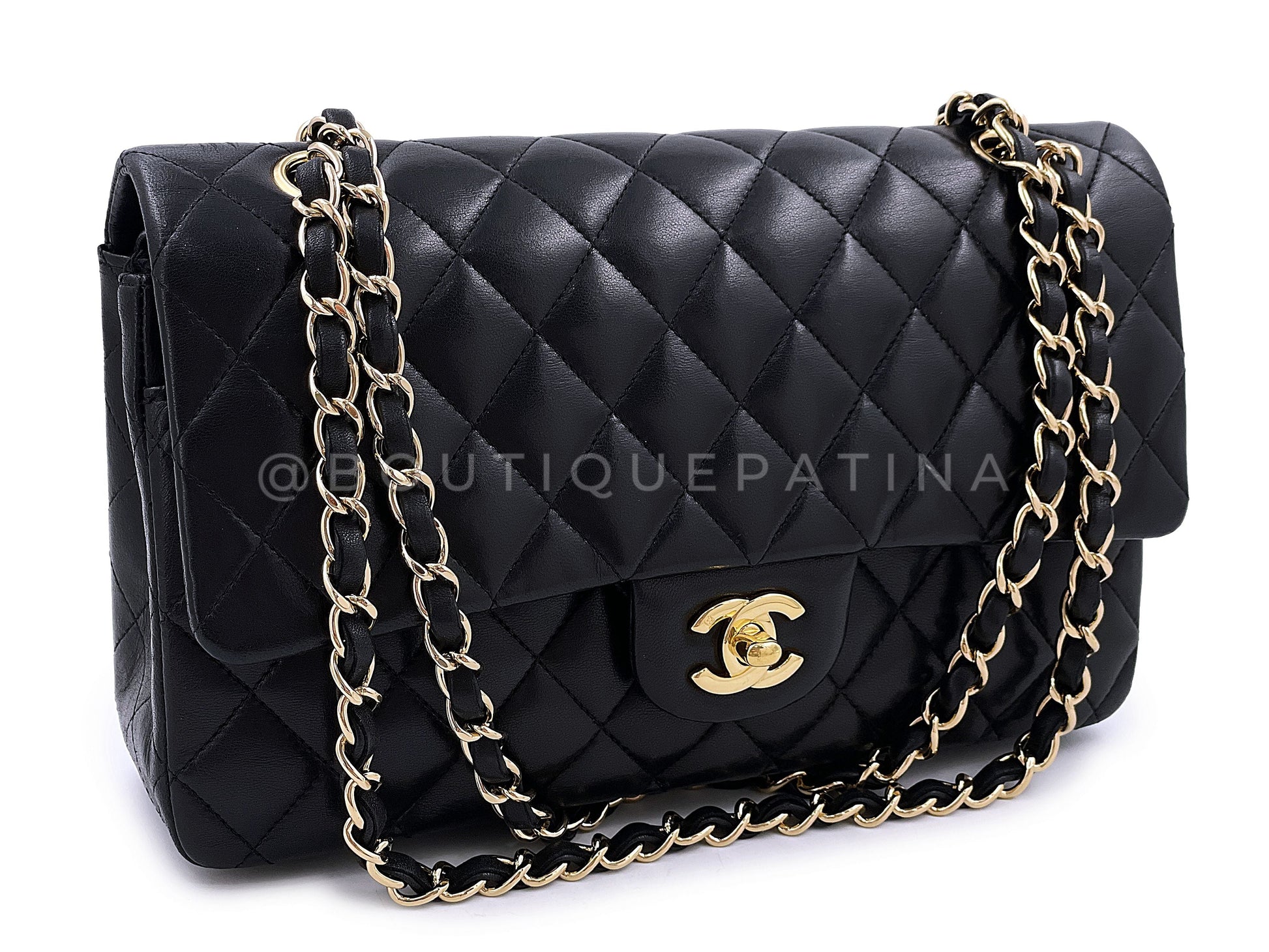 In Black lambskin leather and 24k gold plated hardware. In lambskin leather, the original classic flap in all its glory with its petal soft quilts, true luxury.