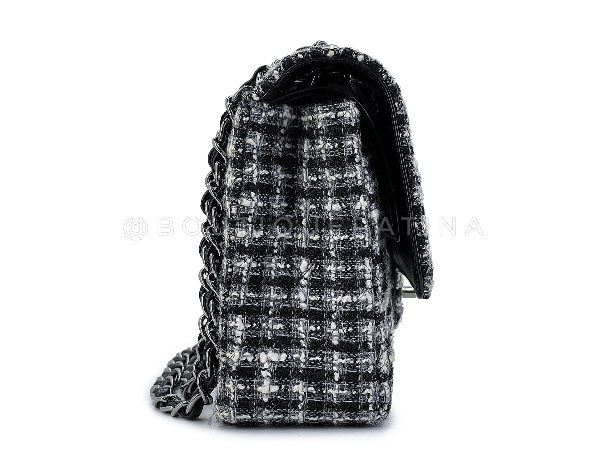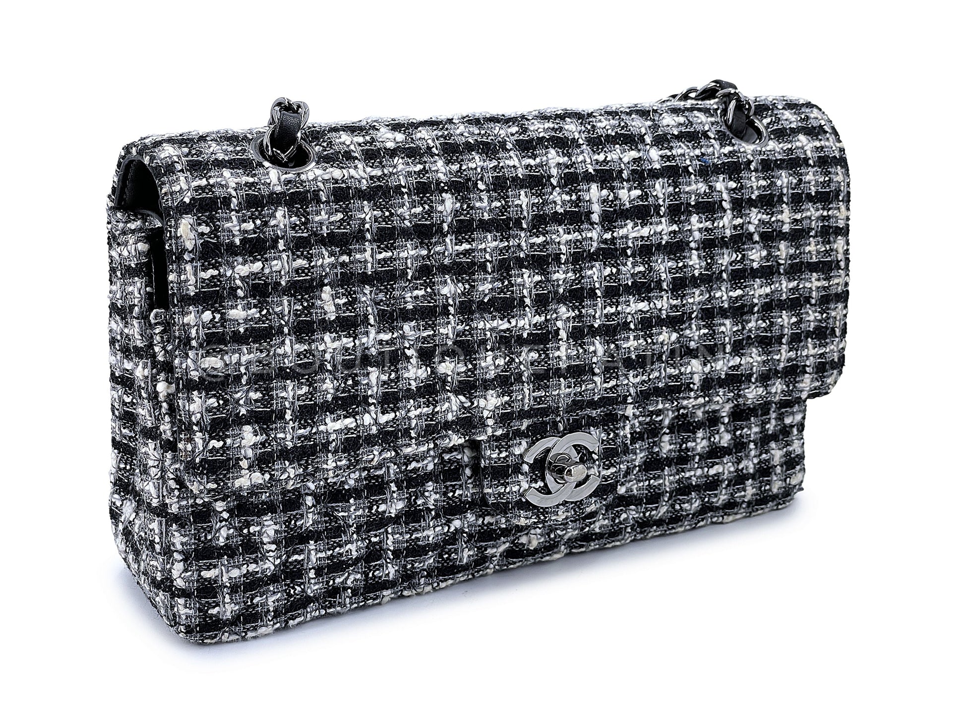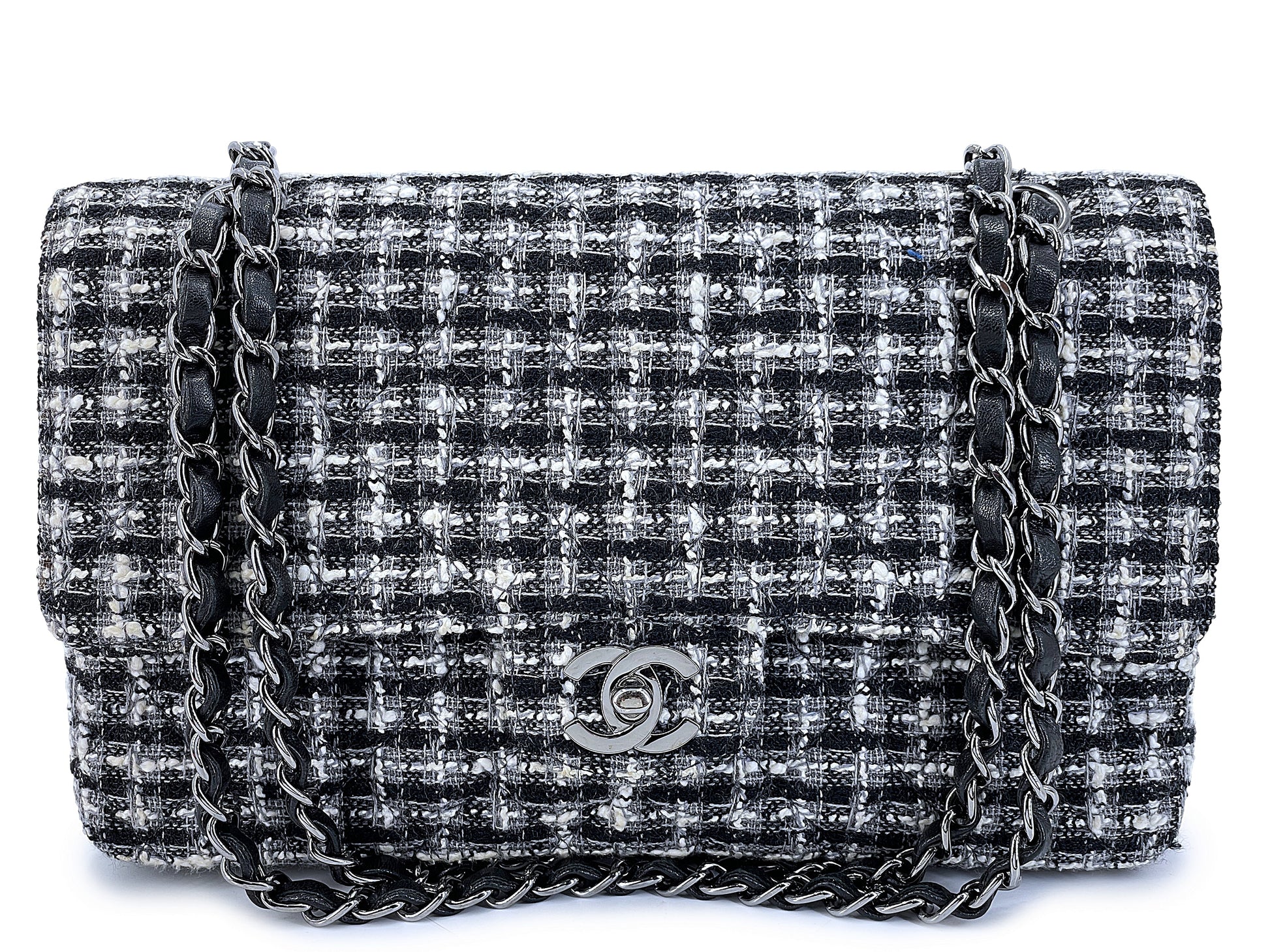 Chanel Vintage 2004 Black White Tweed Medium Classic Double Flap Bag SHW