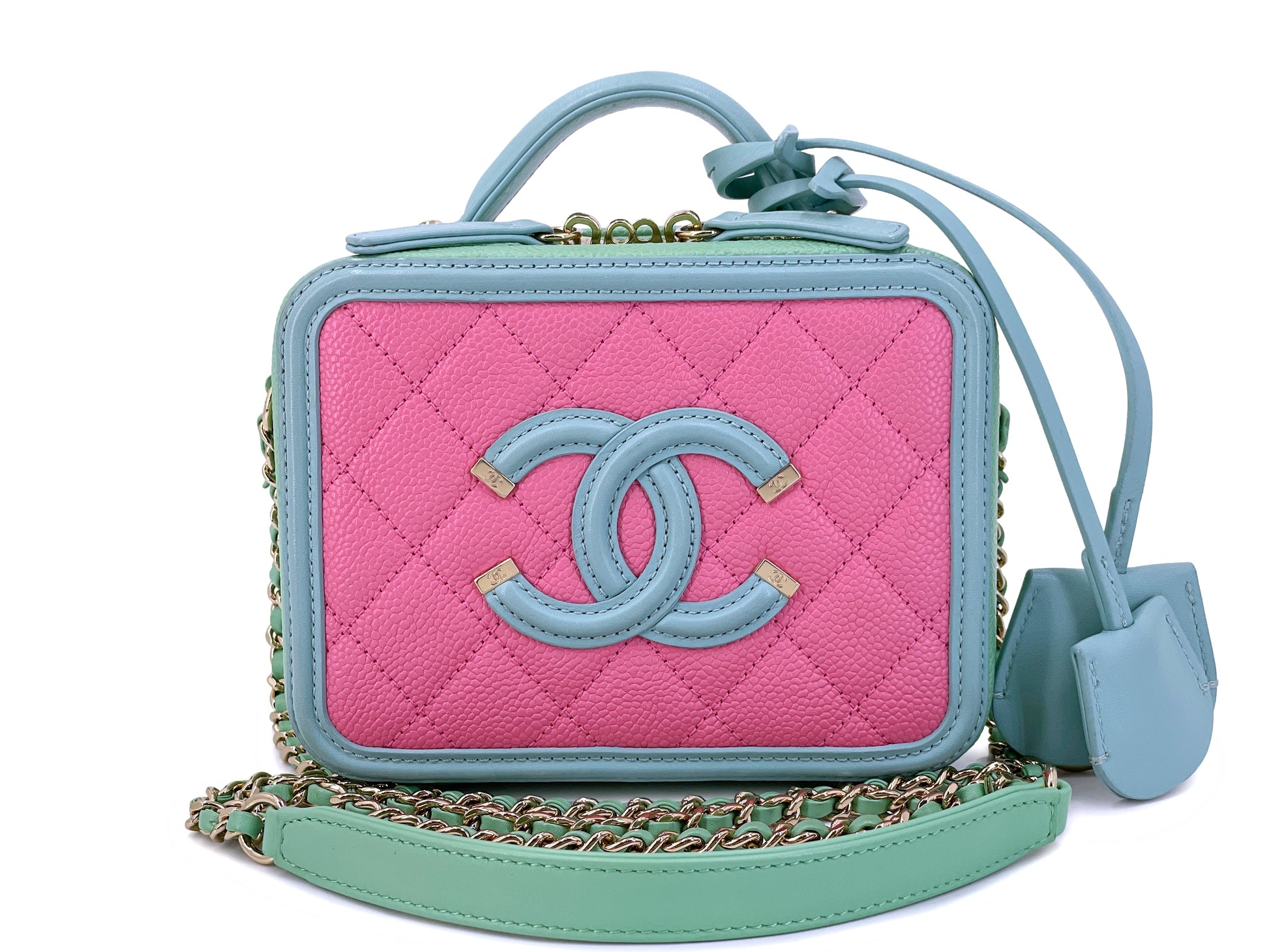 Chanel 2019 Pink/Green/Blue Caviar Filigree Vanity Case Bag
