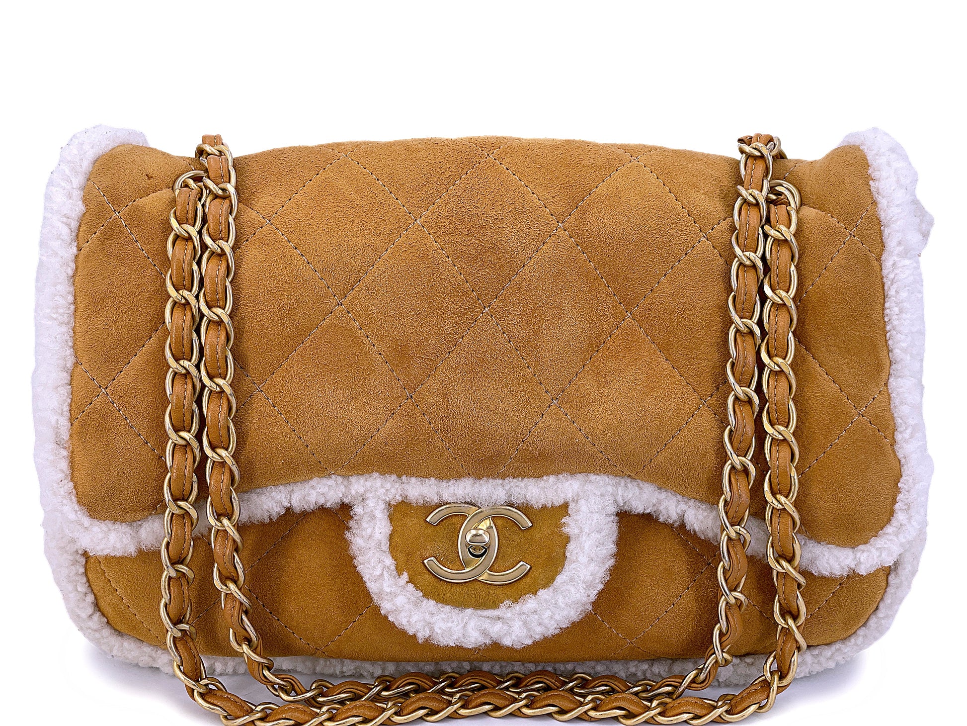 Chanel 2018 Coco Neige Jumbo Camel Caramel Suede Shearling Flap Bag A54