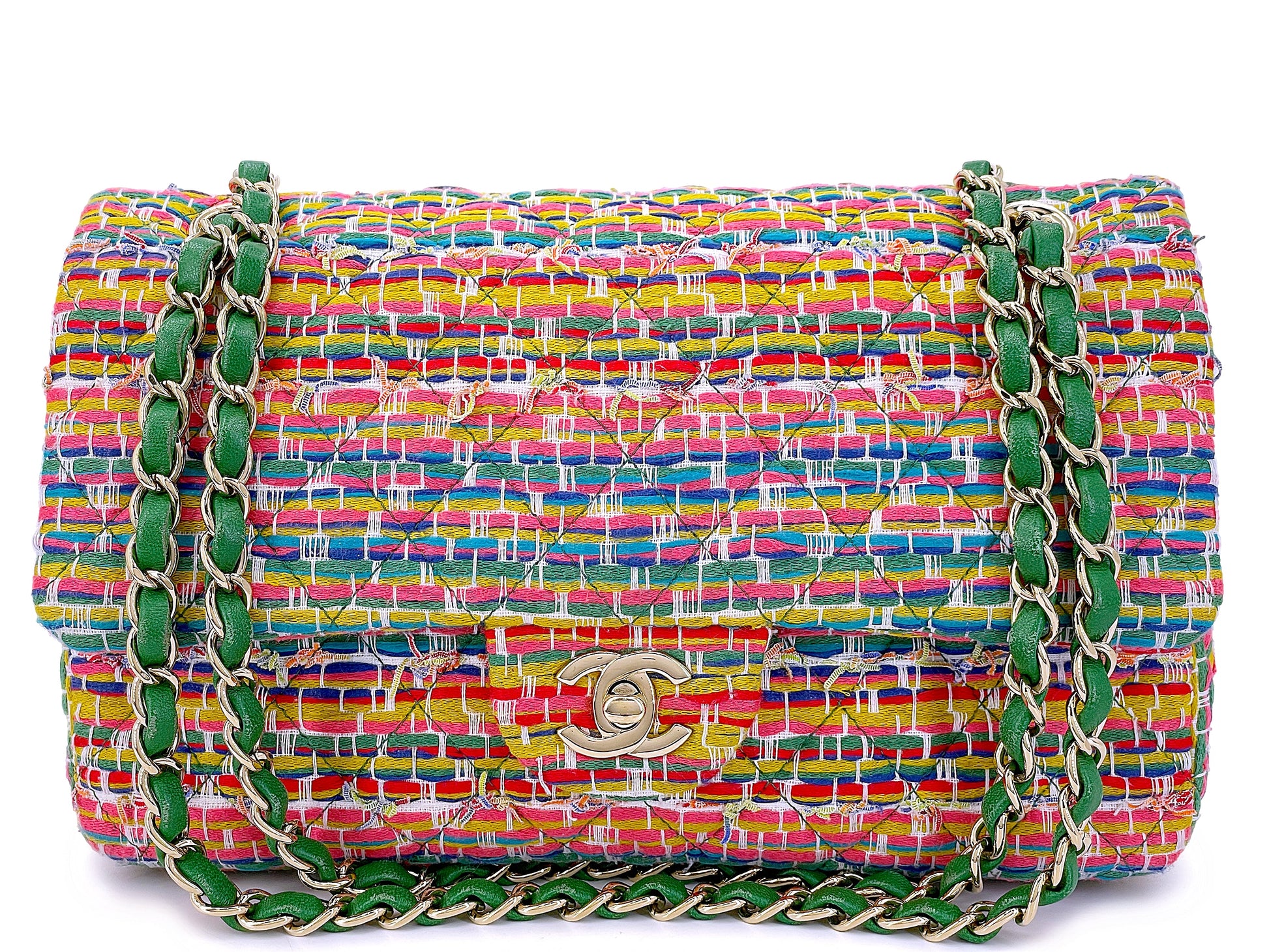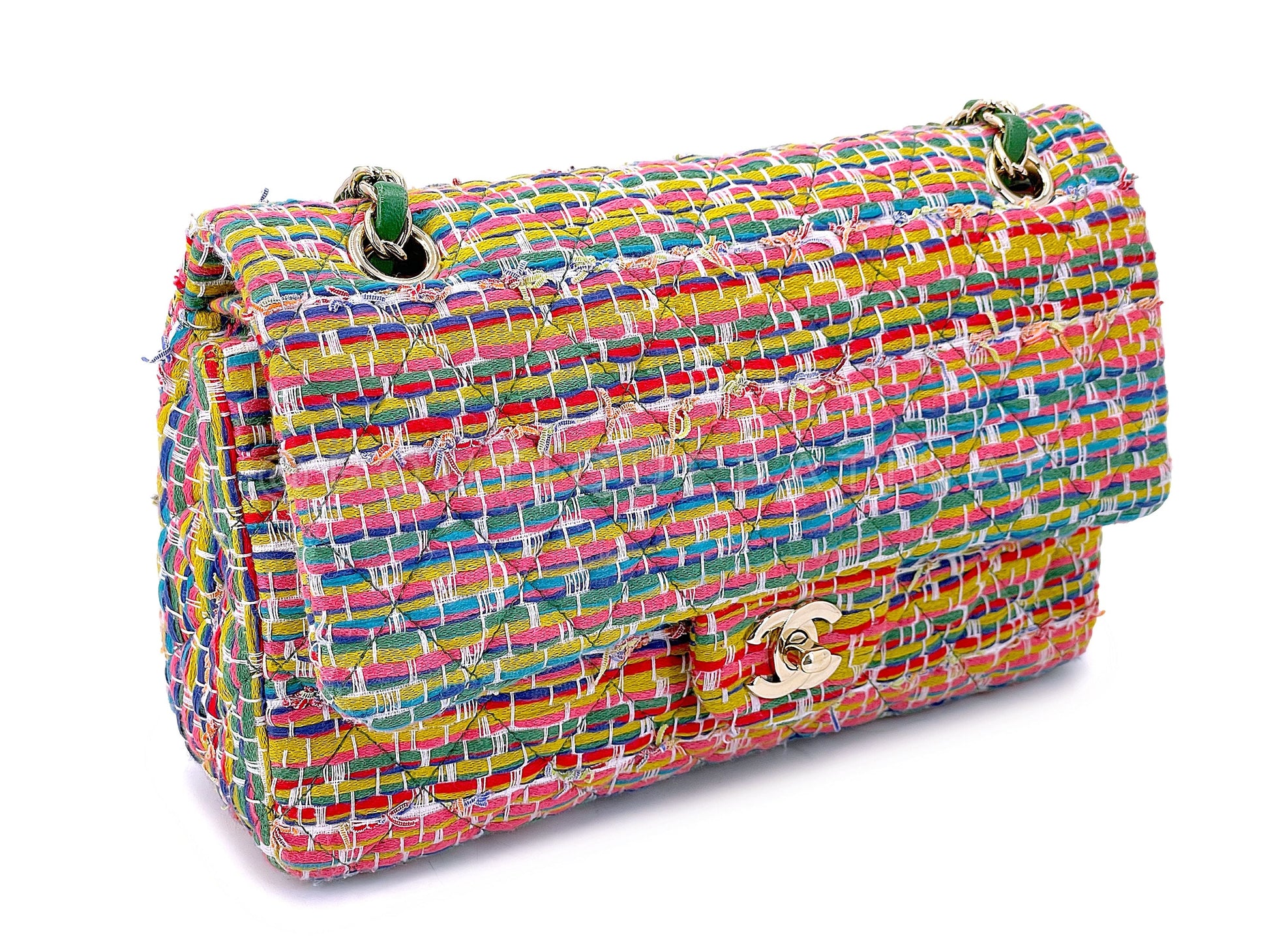 Chanel Rainbow Boucle Tweed Medium Classic Double Flap Bag GHW
