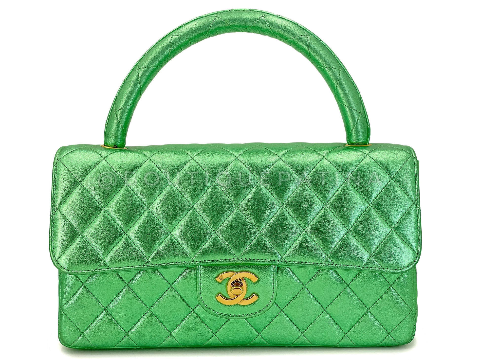 Chanel 1994 Vintage Parent Child Bag Kelly Flap Set Metallic Green 24k GHW RRJ