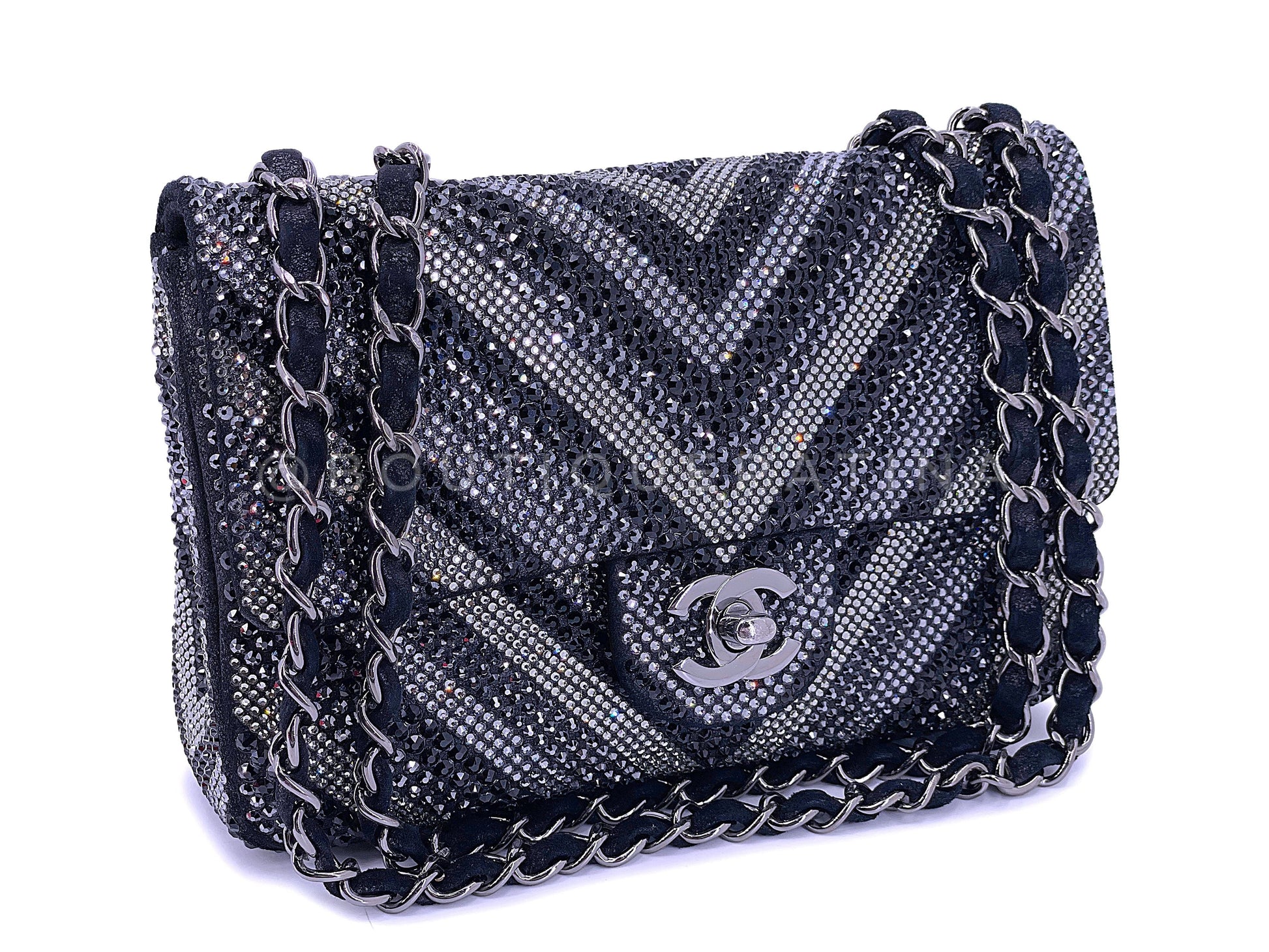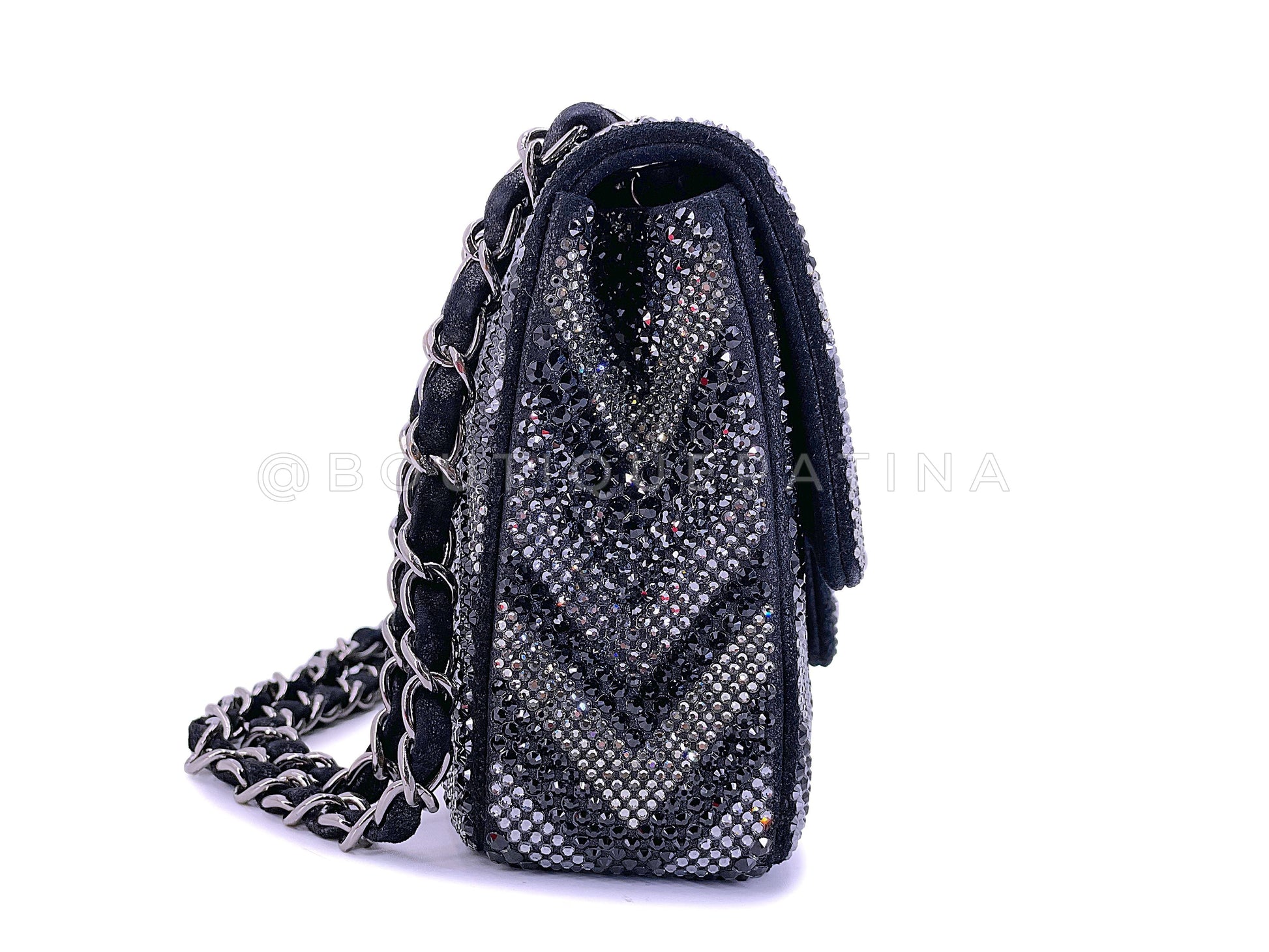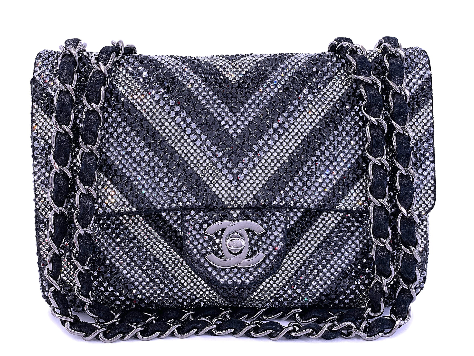 Rare Limited Chanel 2015 Black Chevron Swarovski Crystal Rectangular Mini Flap Bag
