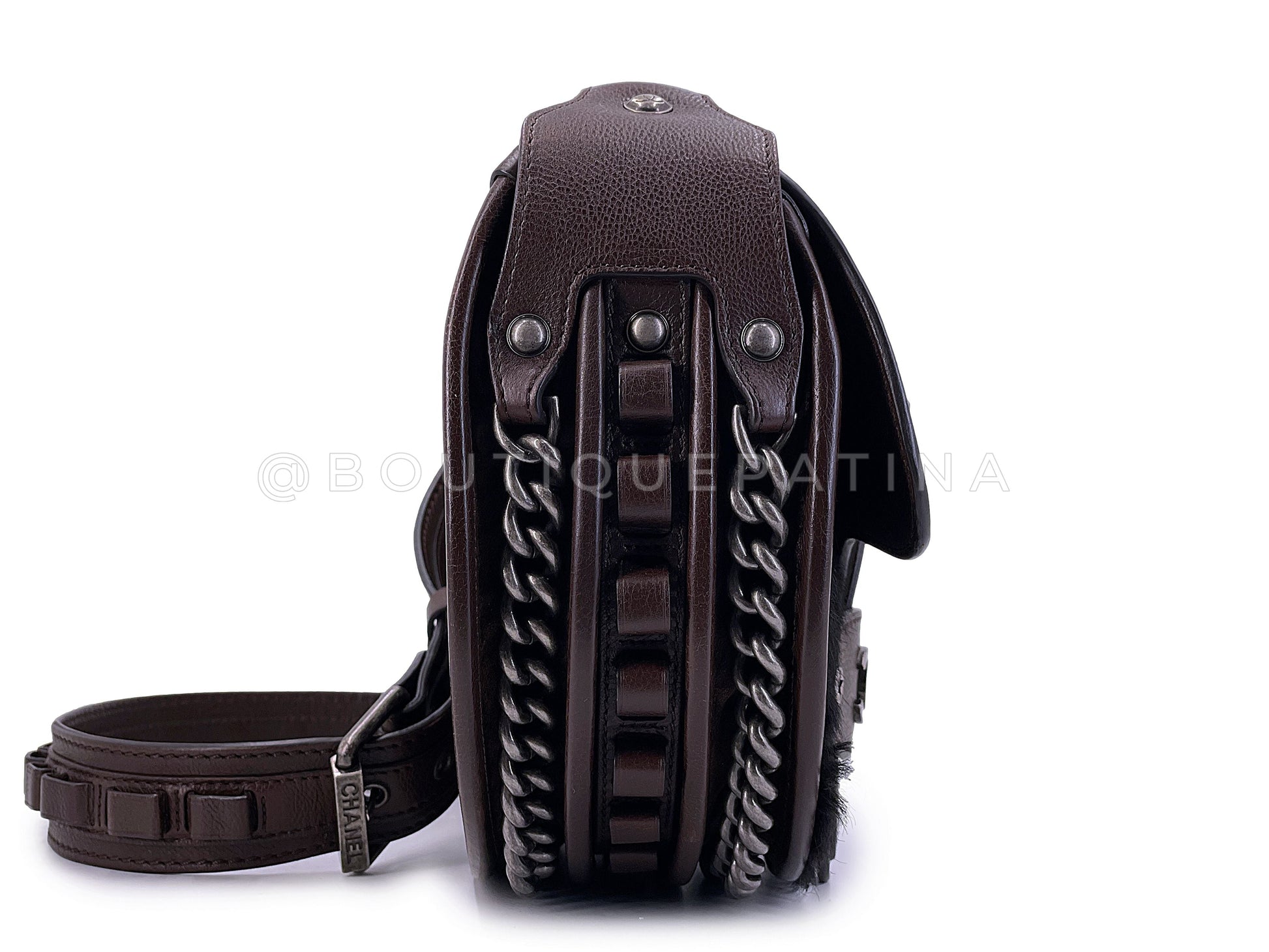 Chanel 2014 Paris Dallas Métiers d'Art Brown Pony Hair Crossbody Bullet Strap Bag RHW DSB