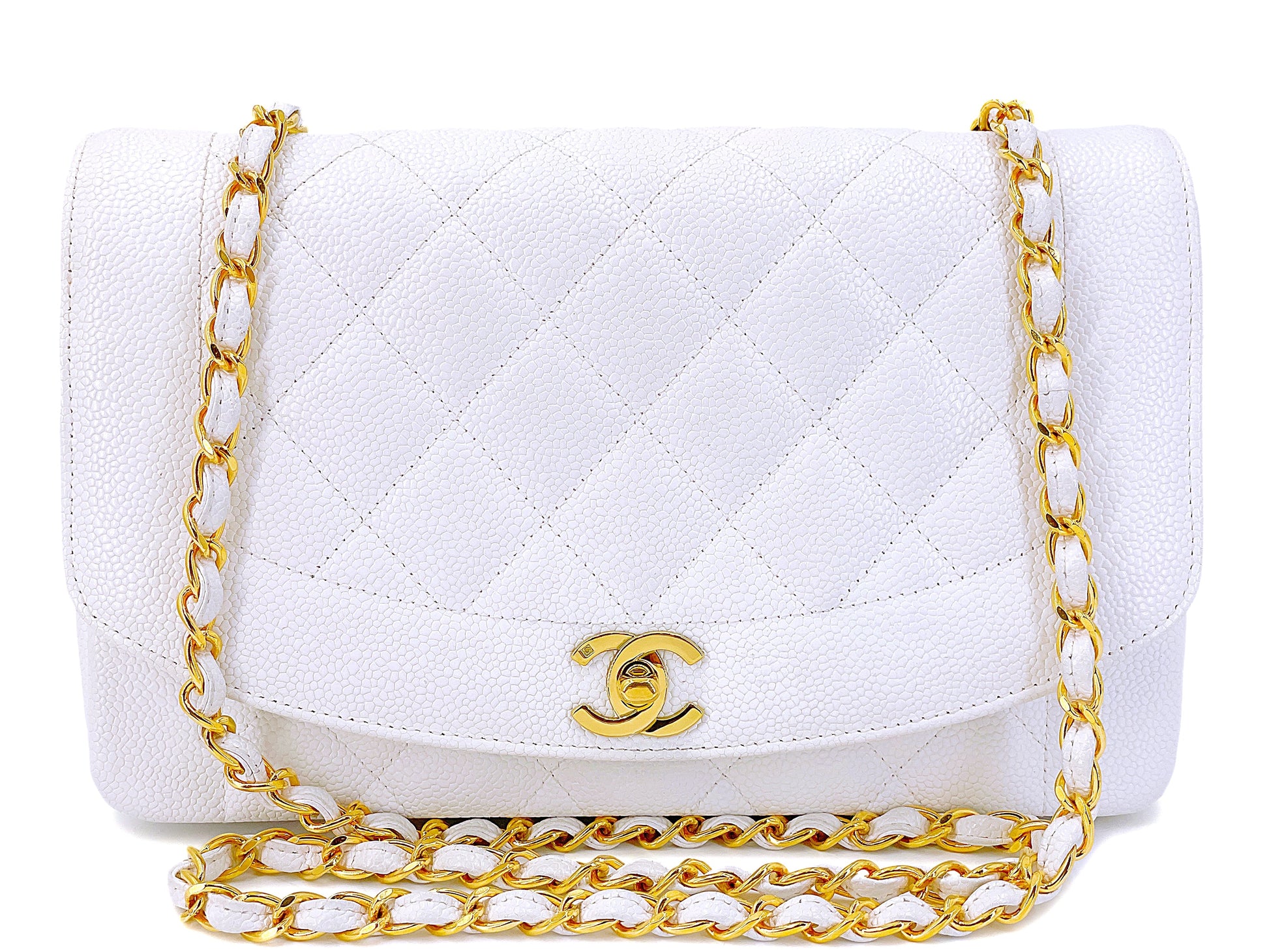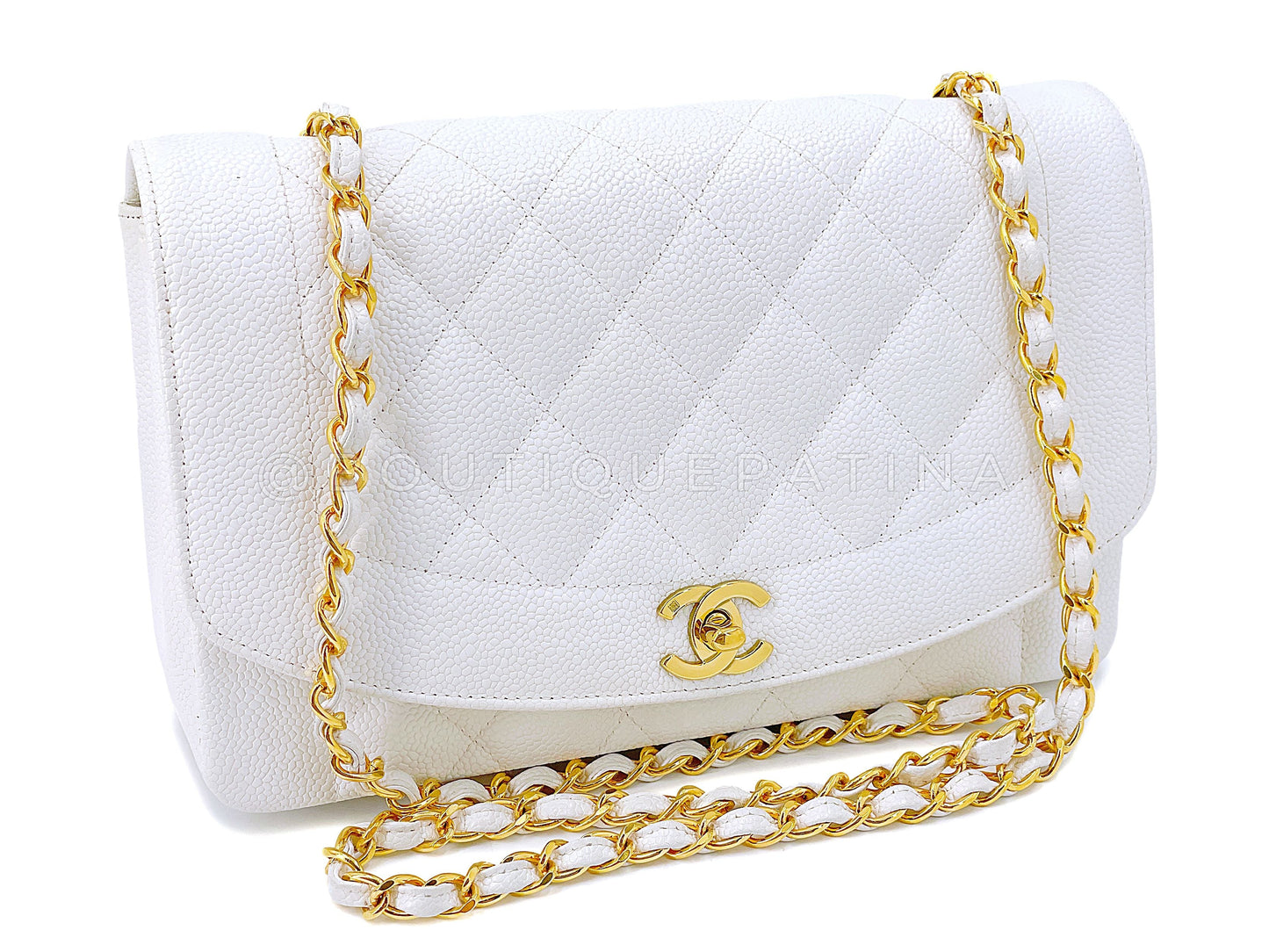 Chanel Vintage 1994 White Caviar Medium Diana Flap Bag 24k GHW