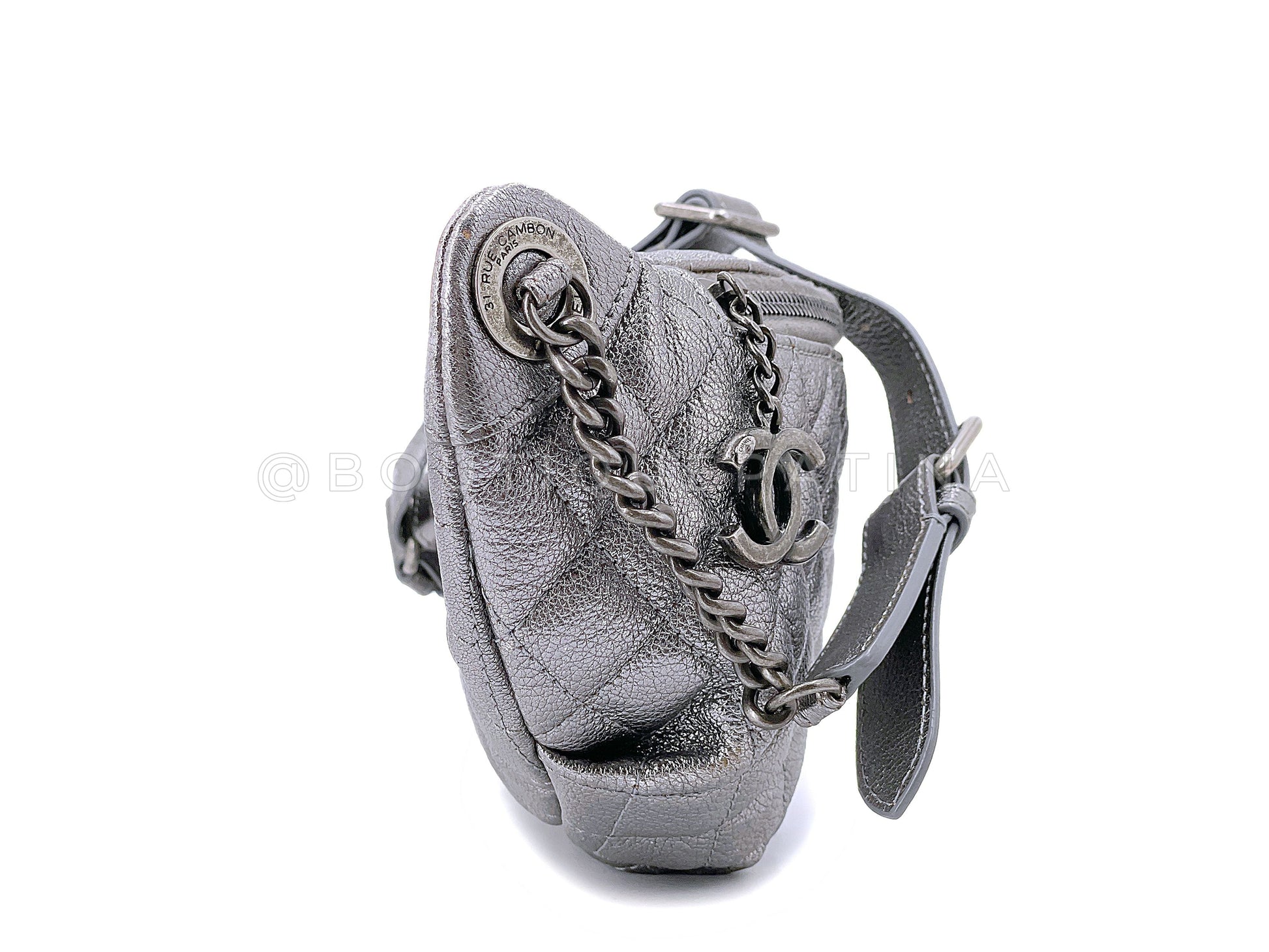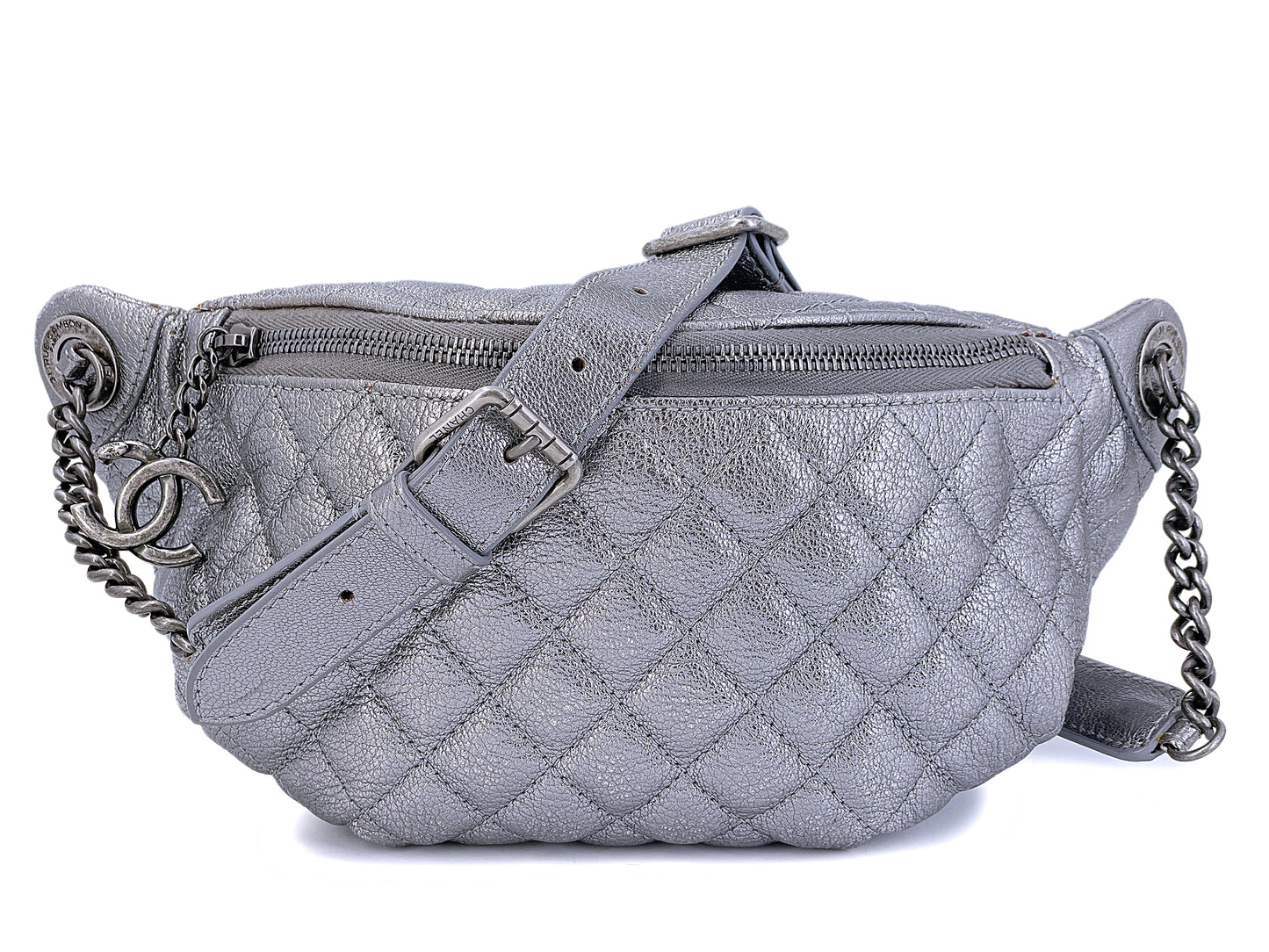 Chanel Silver Metallic Grained Calfskin Banane Fanny Pack Bag RHW