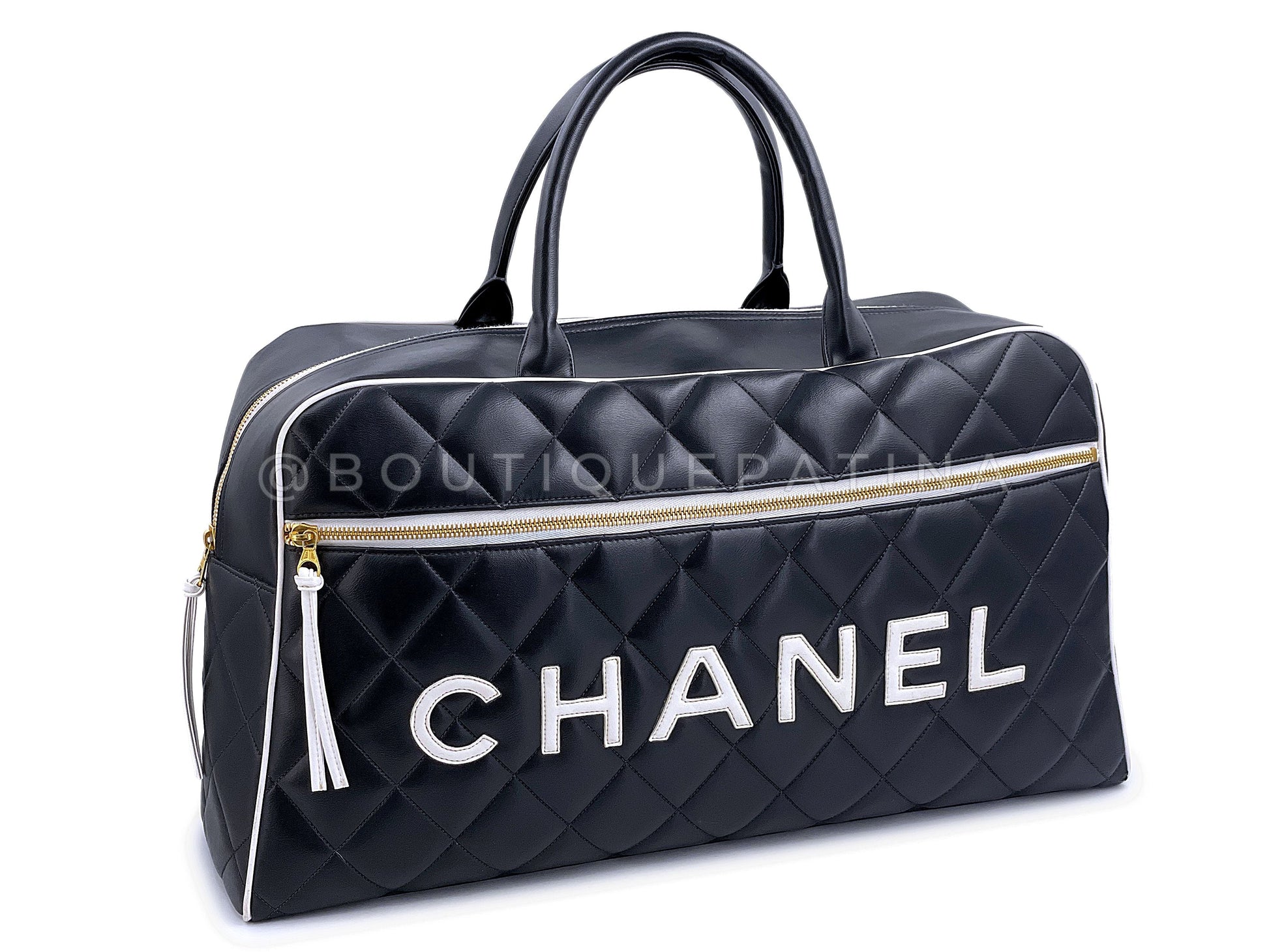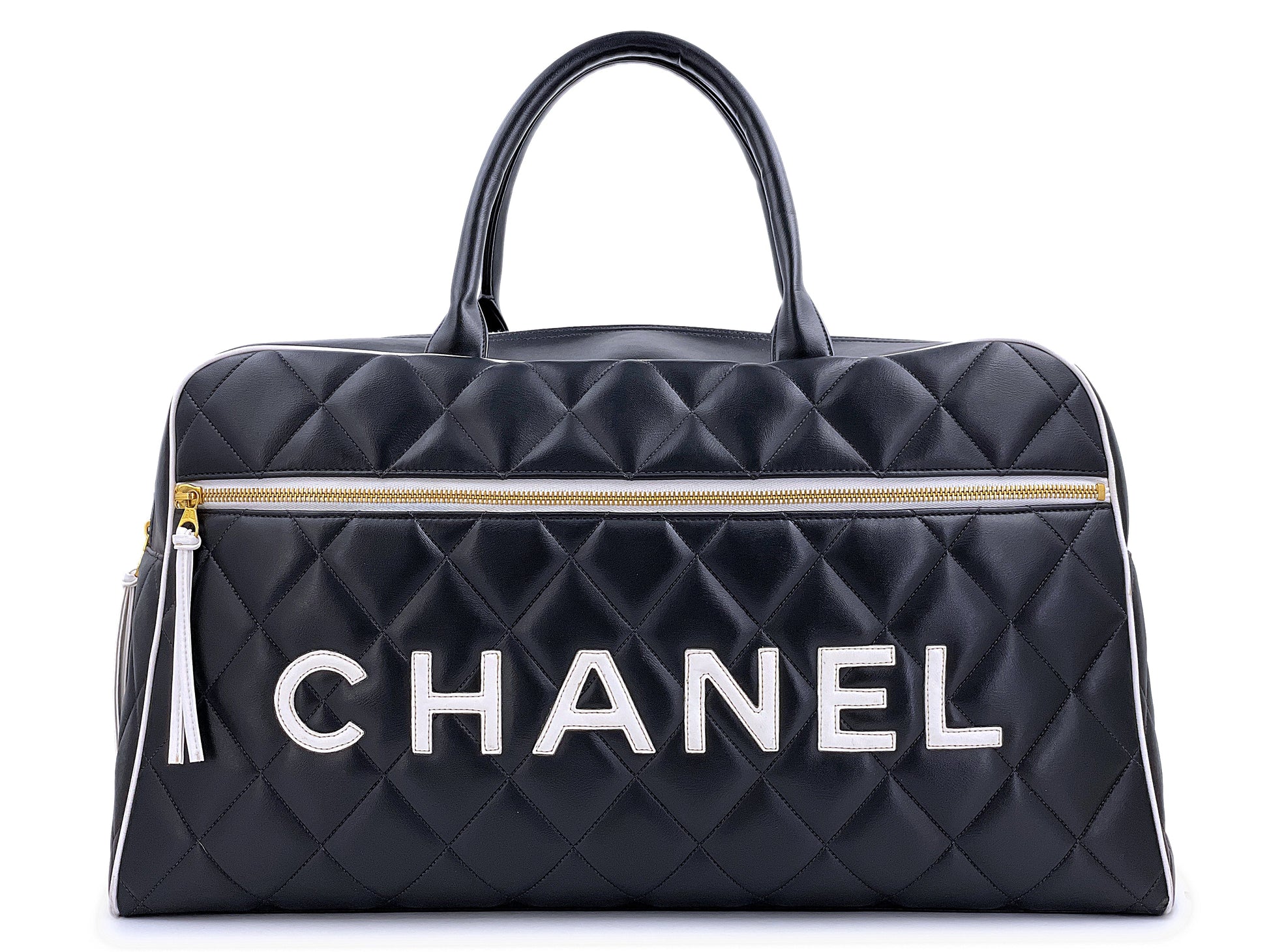 Chanel 1995 Vintage Black Letter Large Bowler Duffle Bag U3N