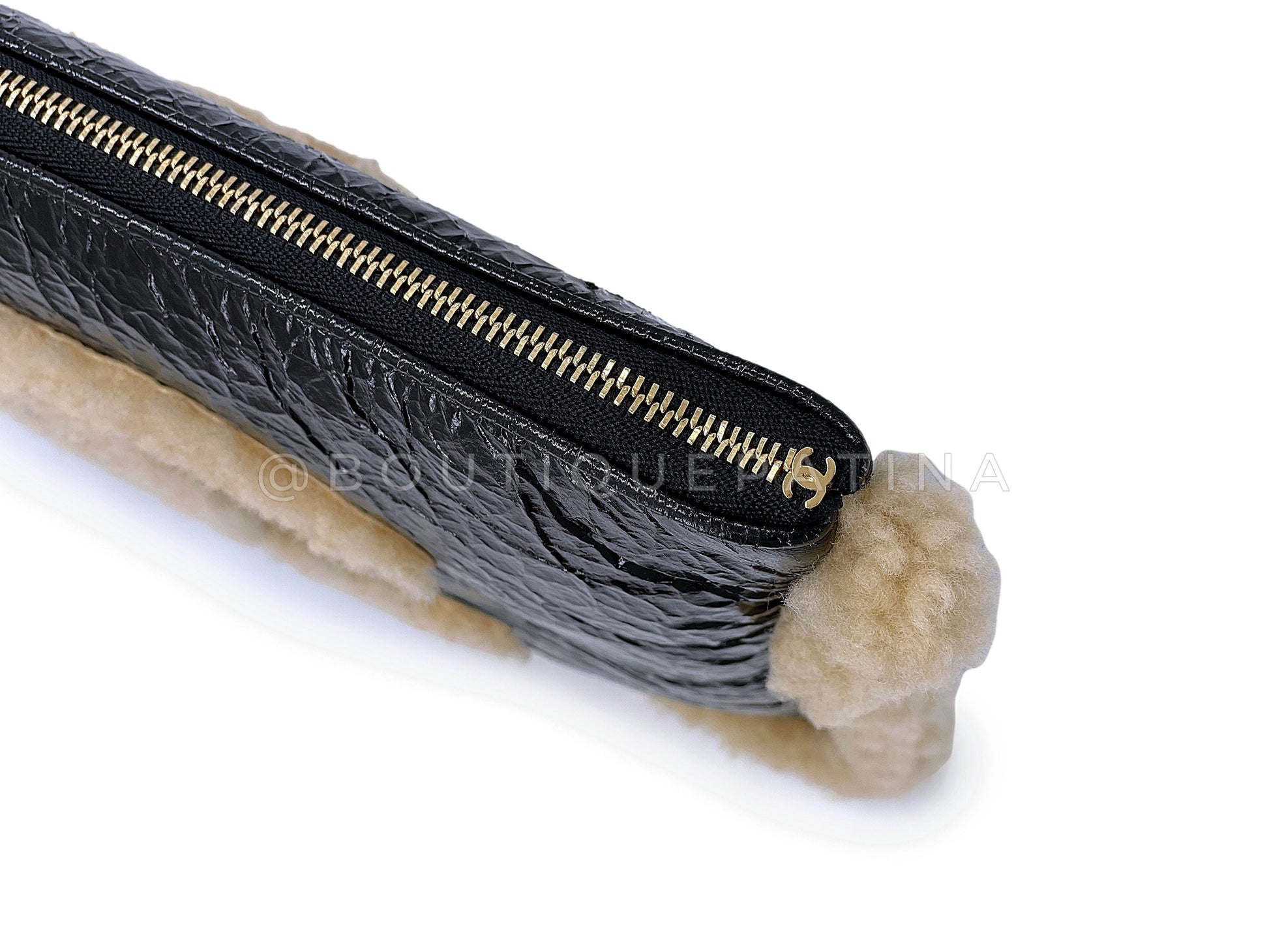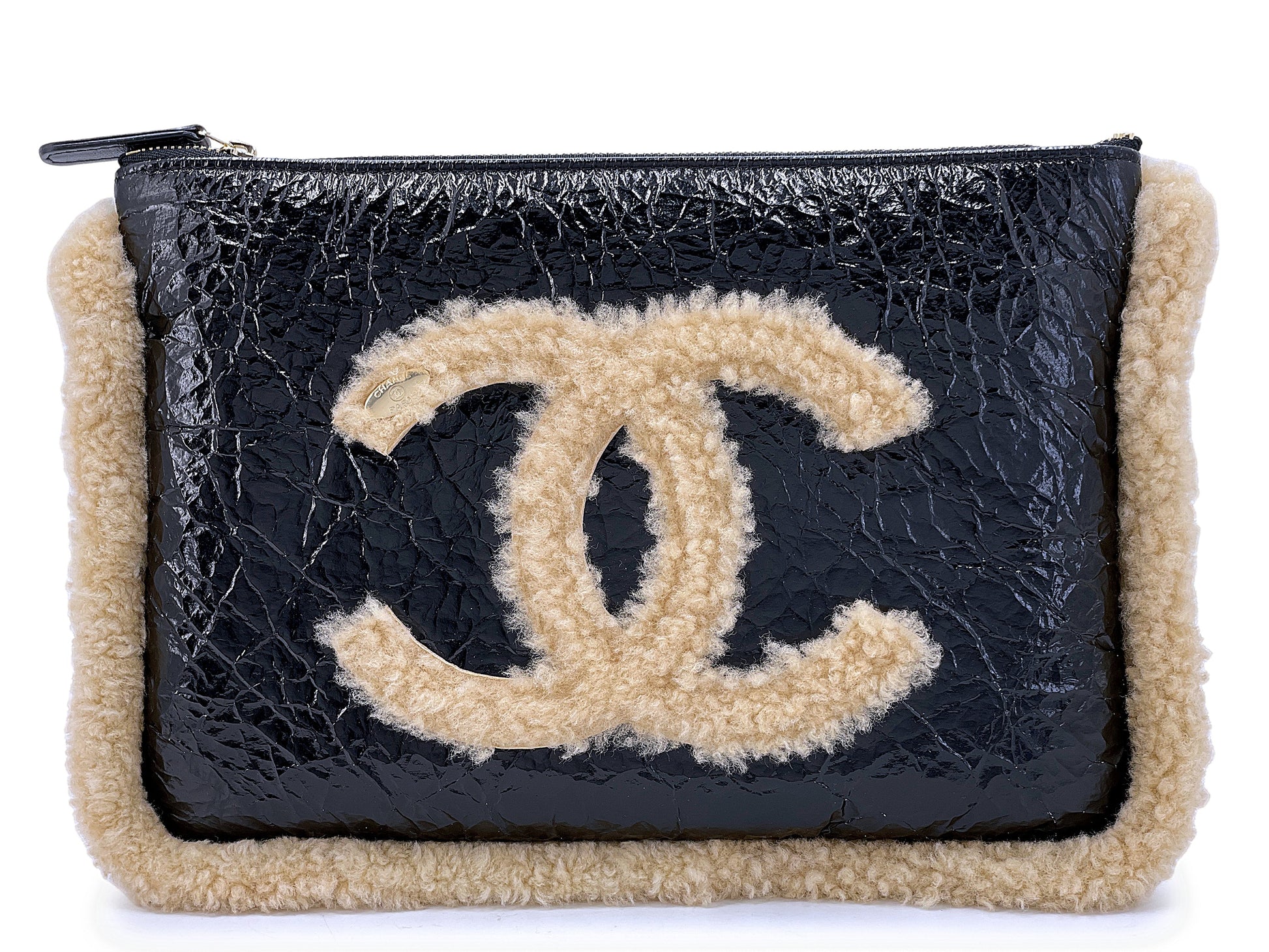 Rare Chanel 2019 Shearling Mania Crumpled Calfskin O Case Clutch Bag