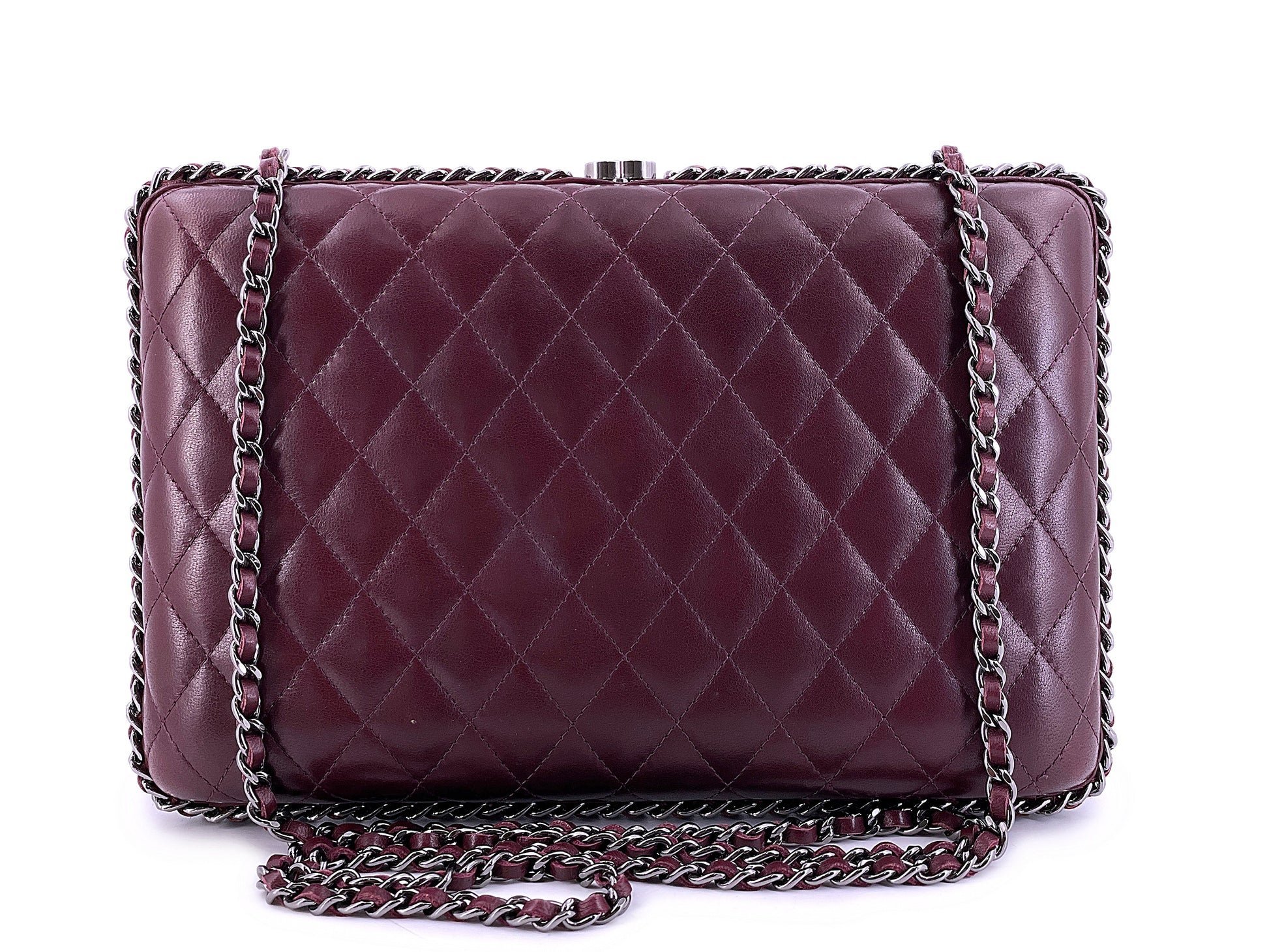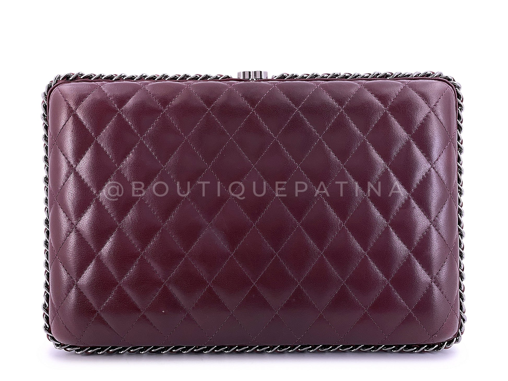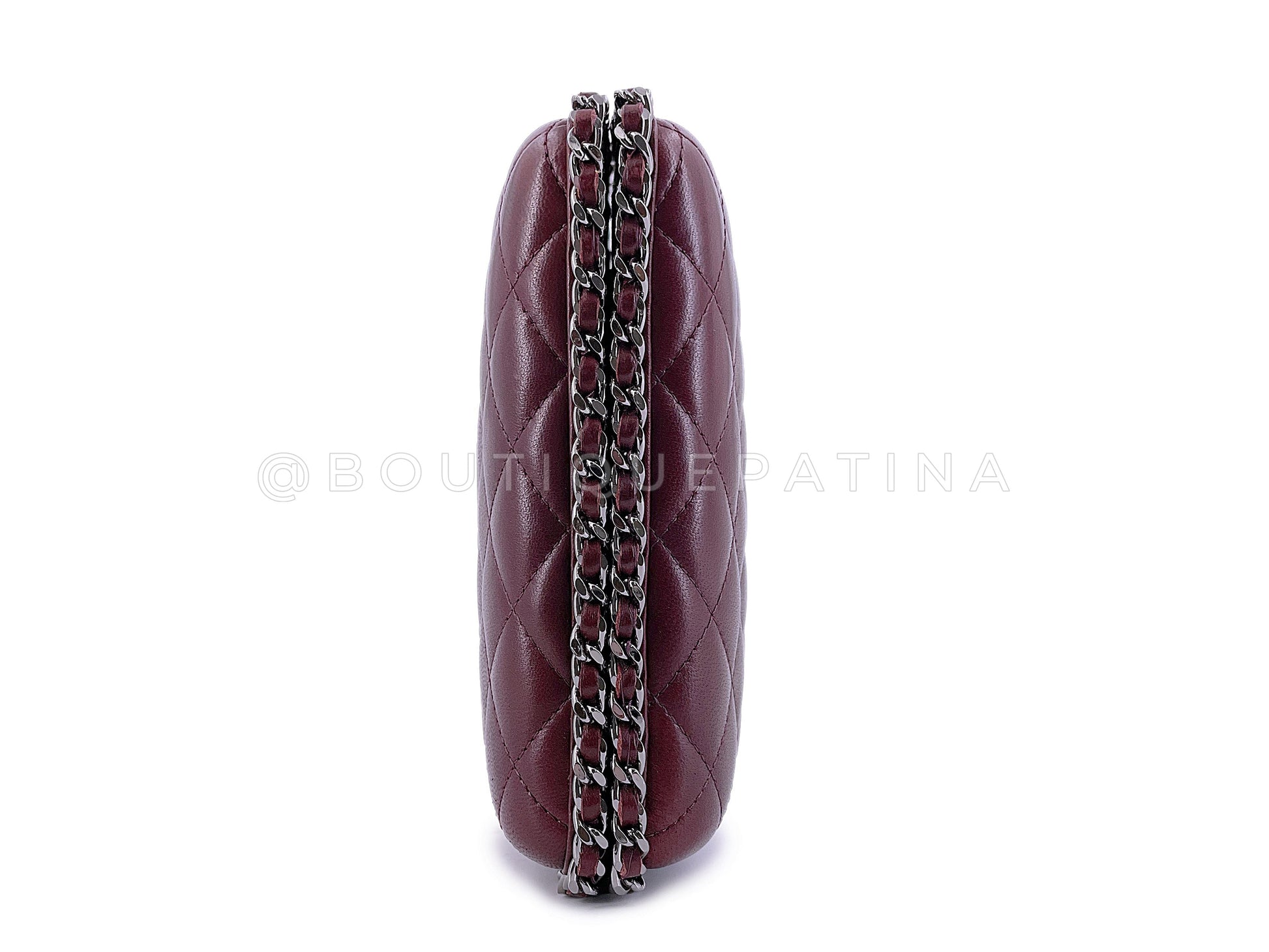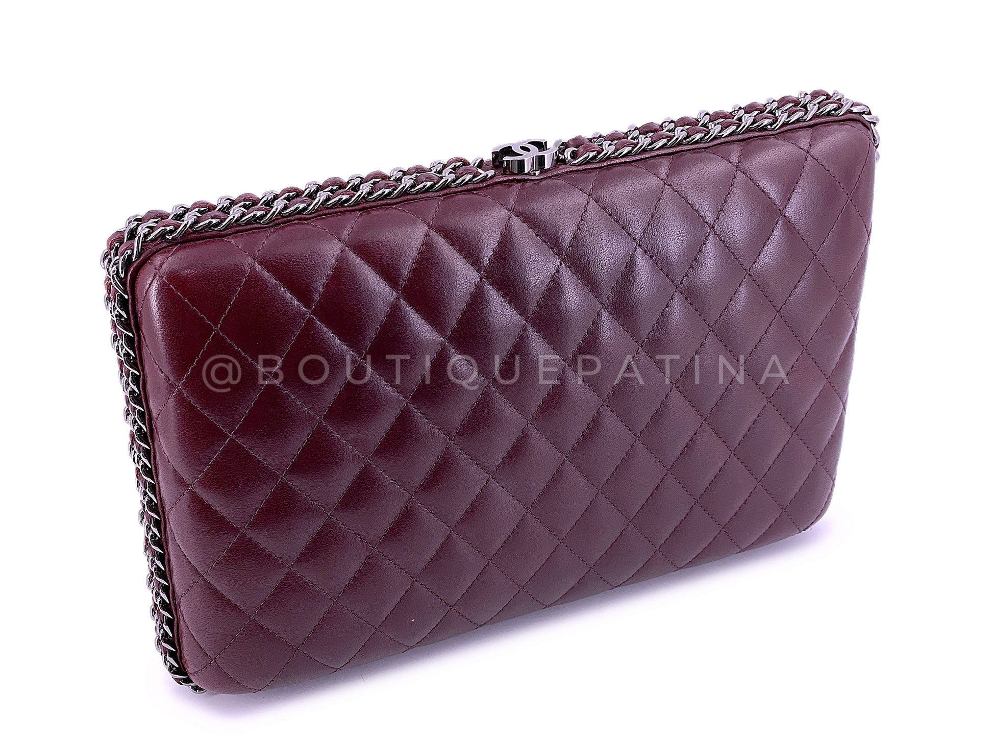 Chanel 2012 Bordeaux Burgundy Oversizsed Hard Quilted Chain Around Clutch Bag RHW