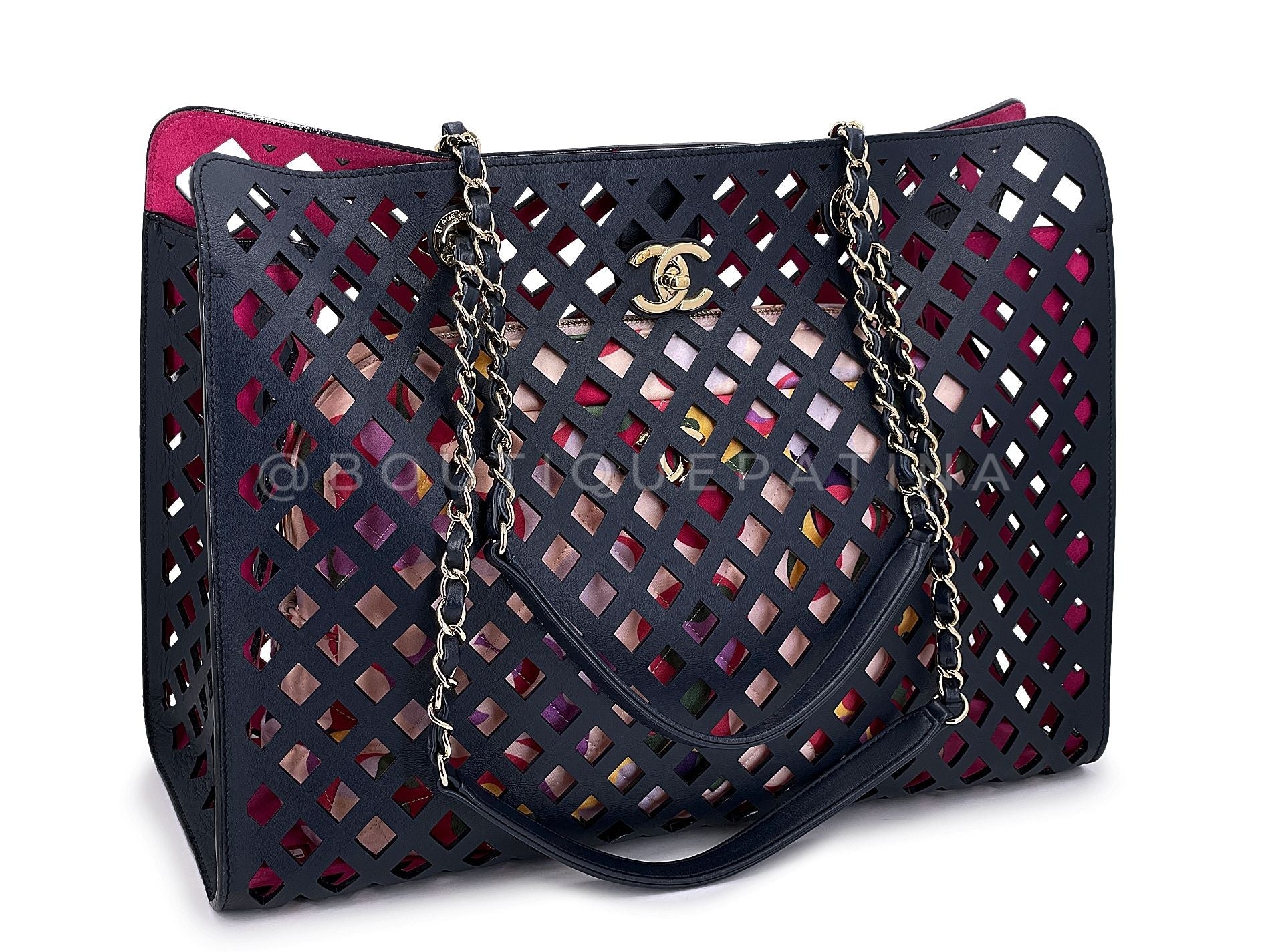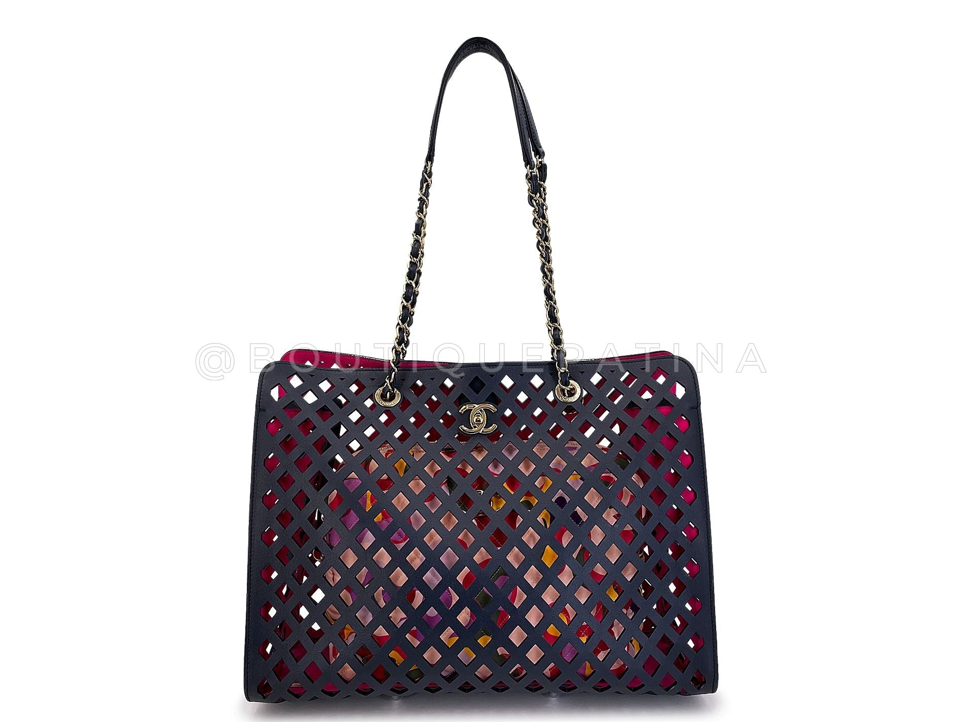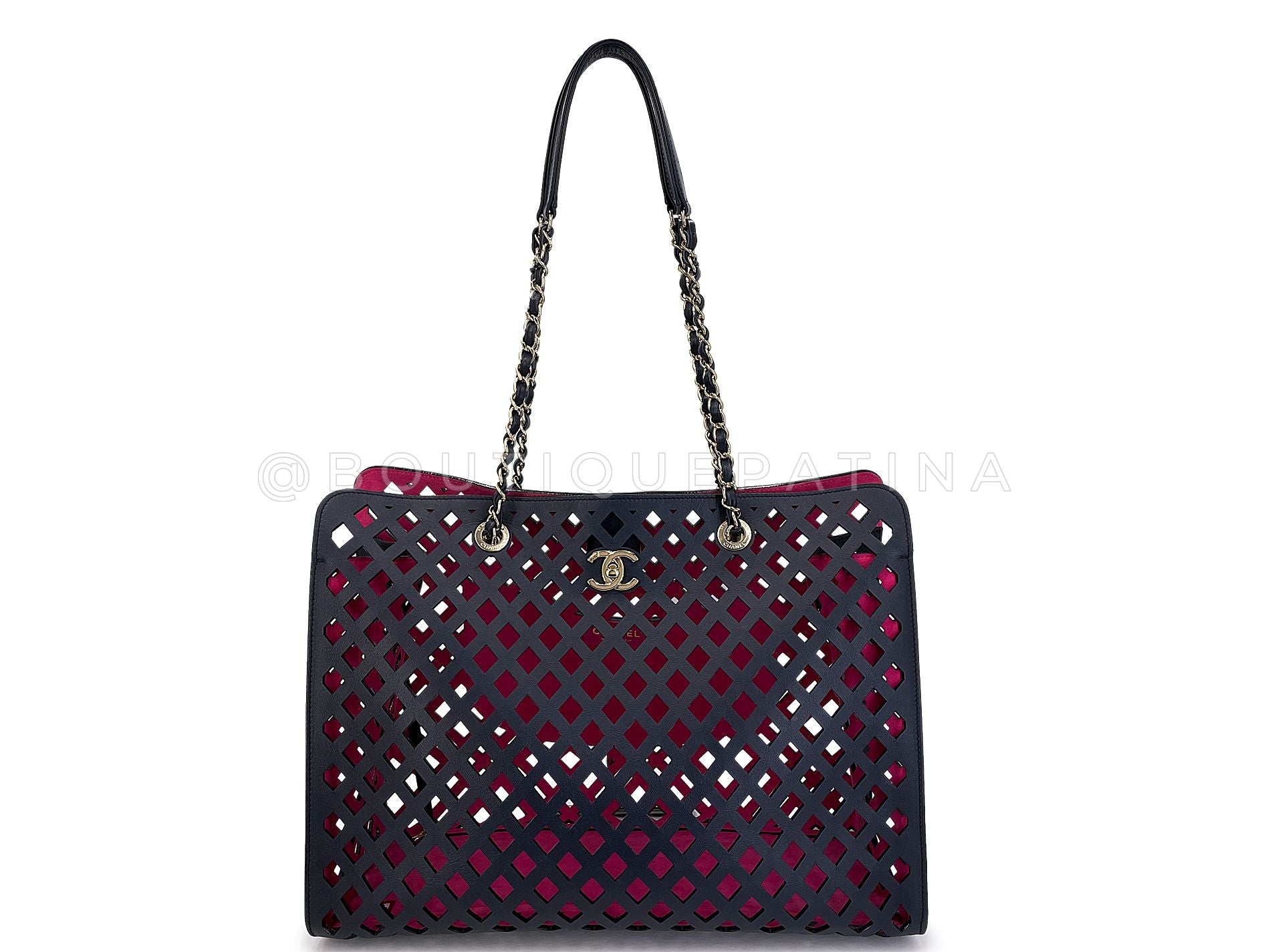 Chanel Black Fuchsia Pink Diamond Cutout Shopper Tote Bag 4FE