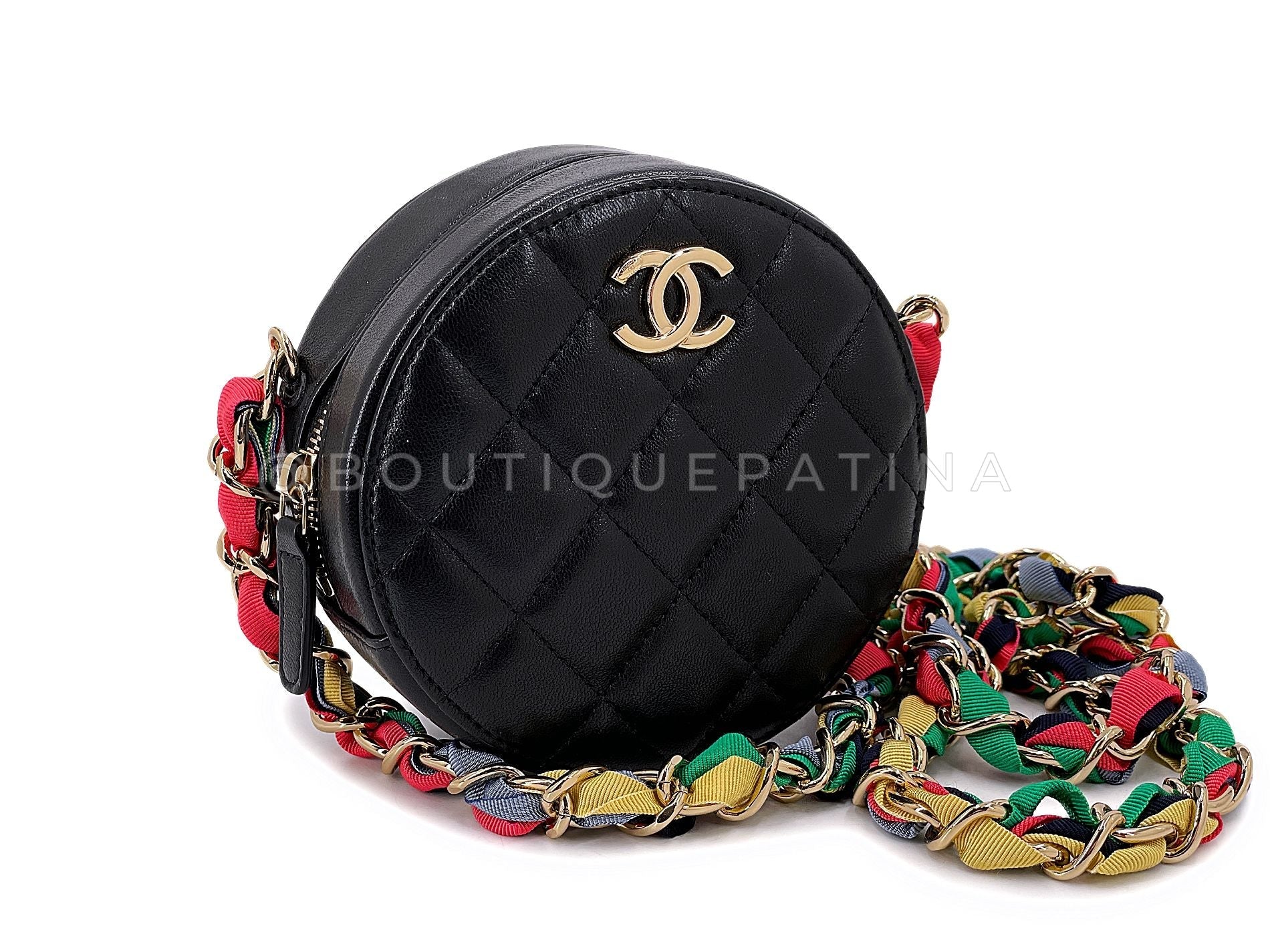 Chanel Black Ribbon Chain Infinity Round Crossbody Bag